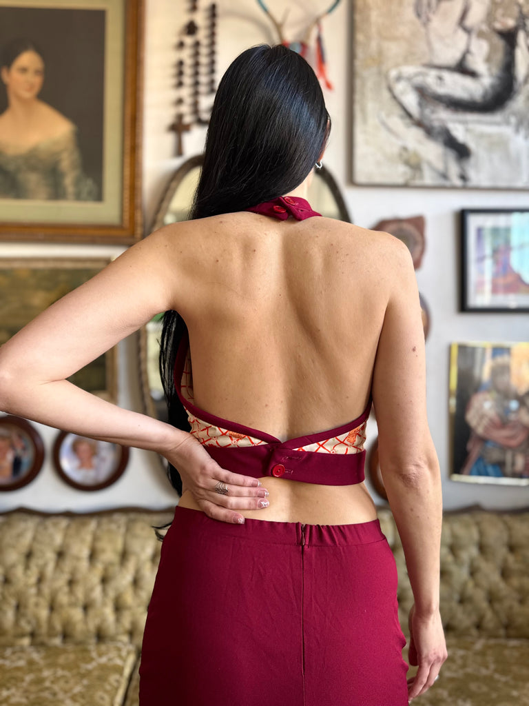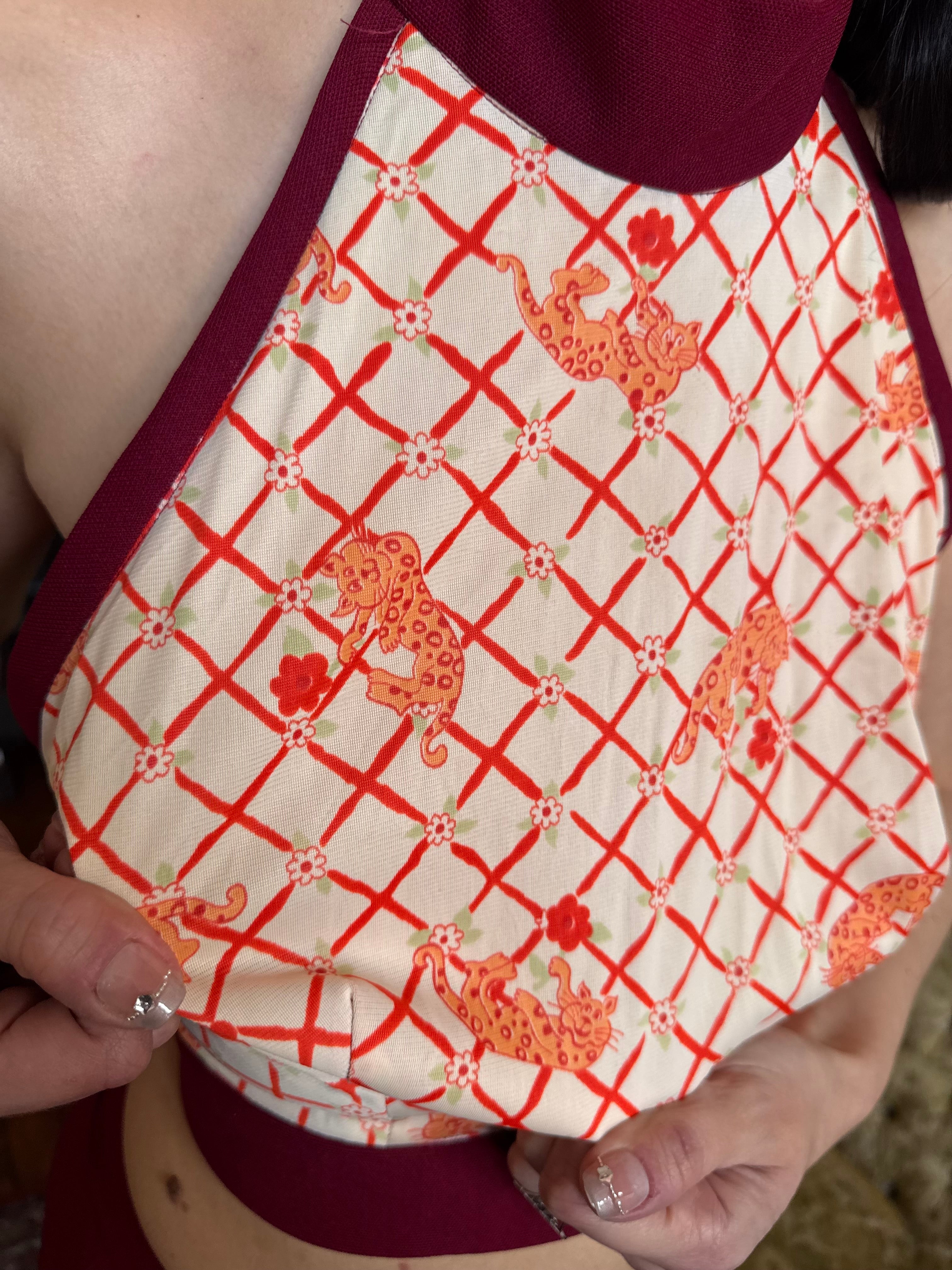 70s Vintage Handmade Tiger Print High Collar Halter Top Size Medium ASIS
