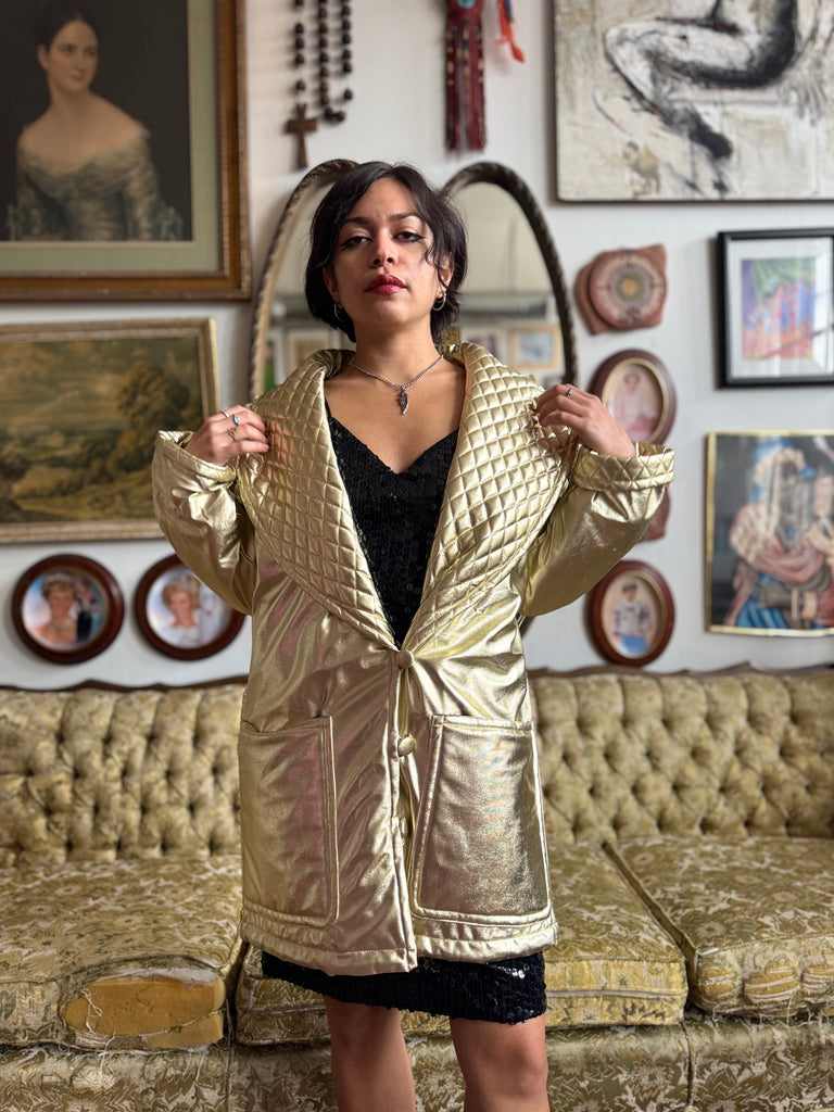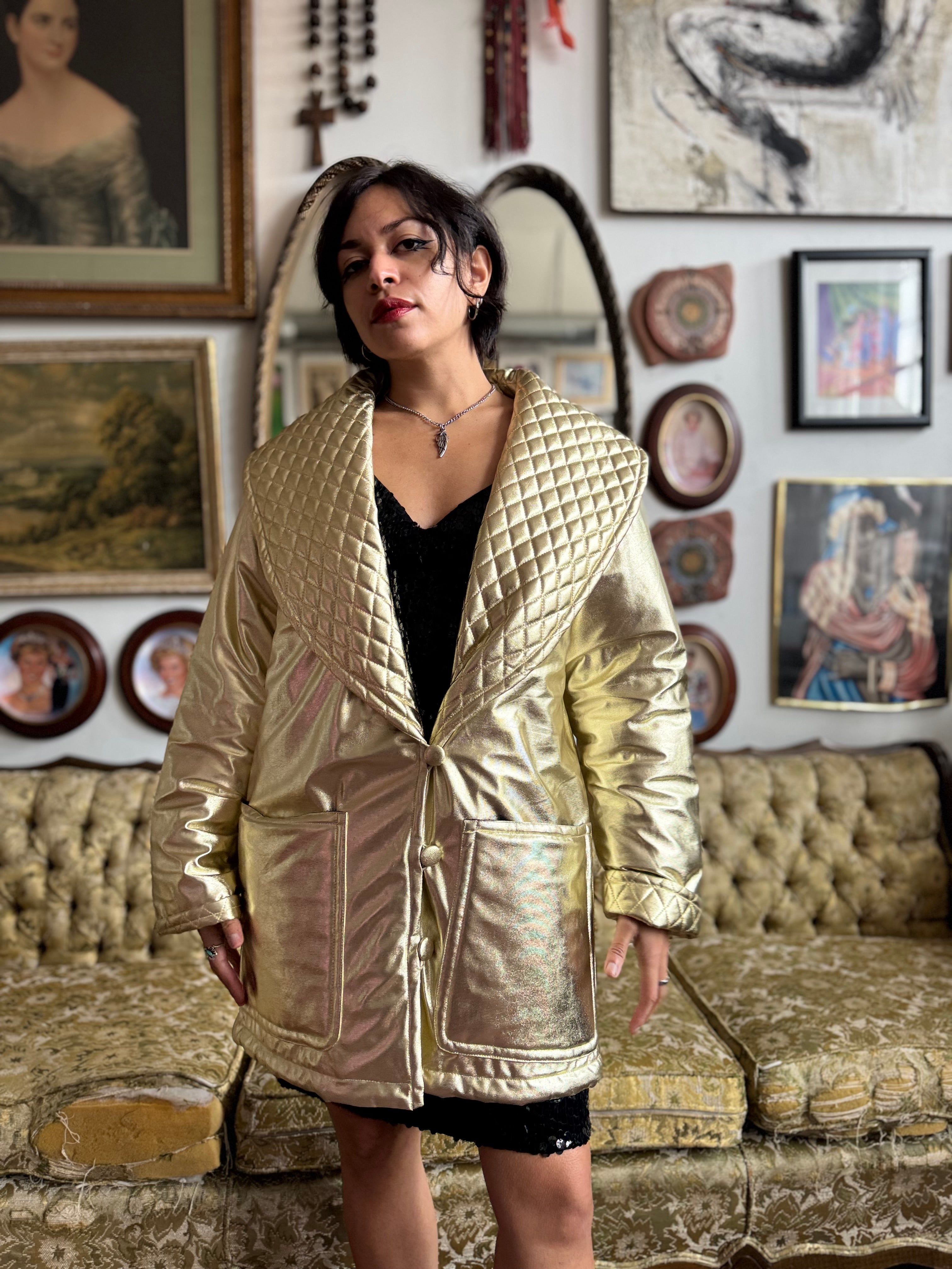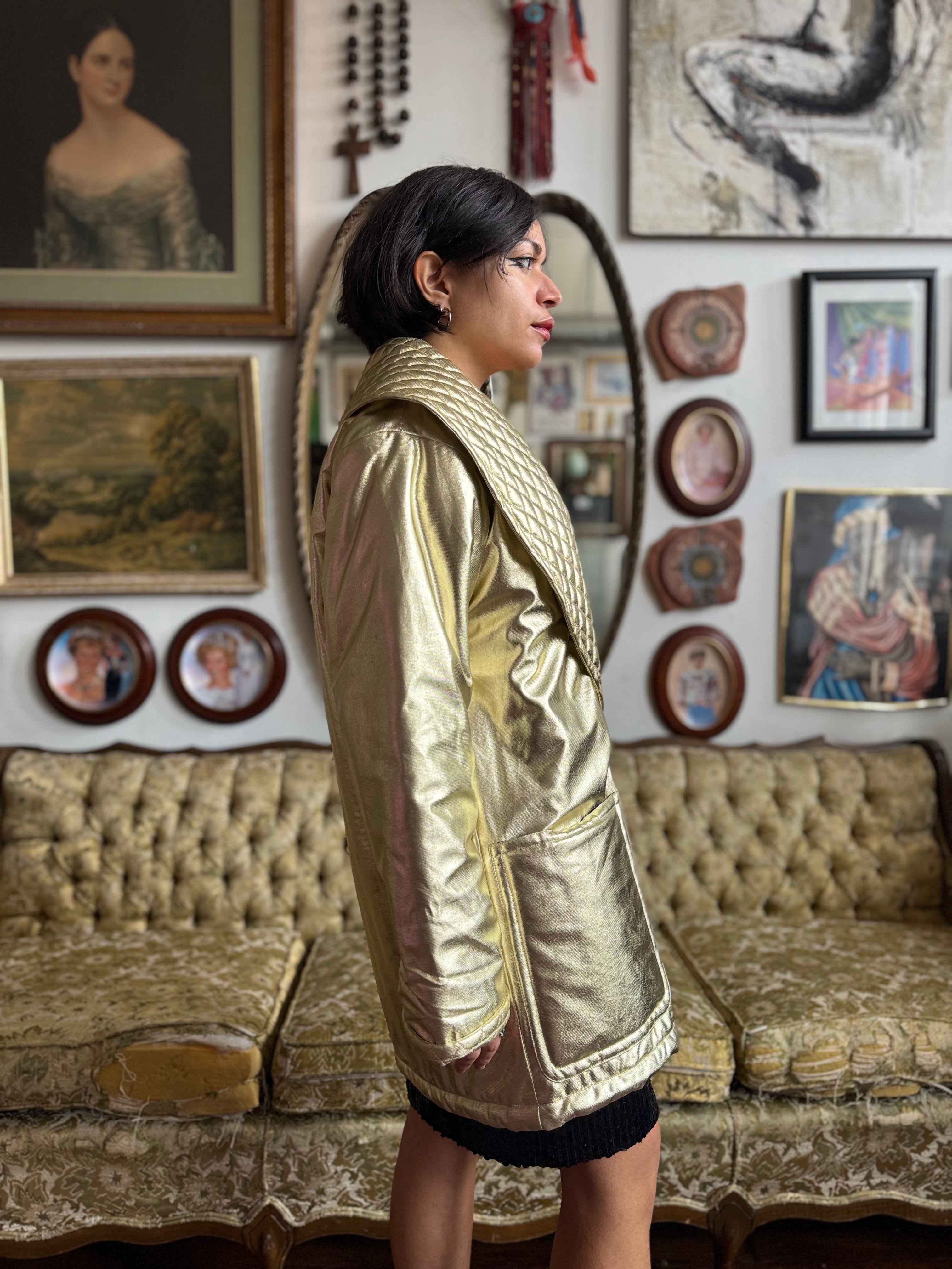 80s Vintage Maurada Champagne Gold Quilted Collar Jacket Size S