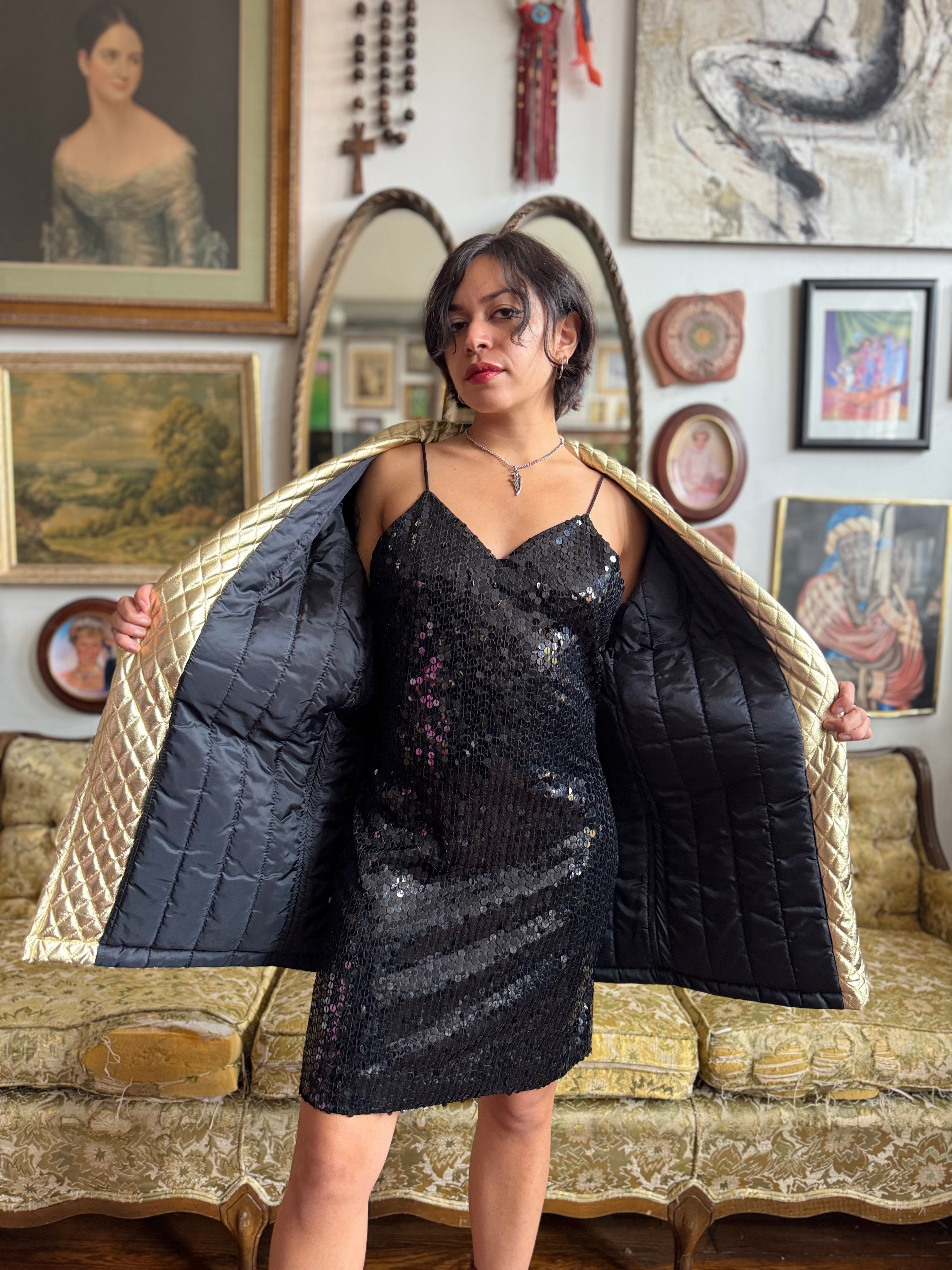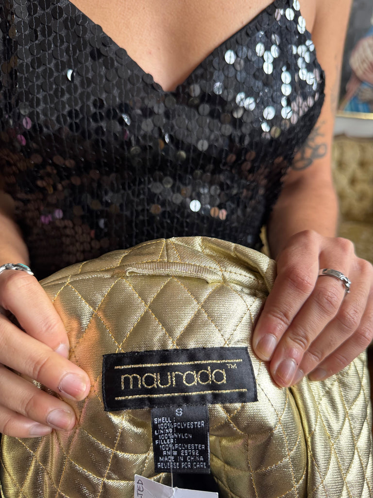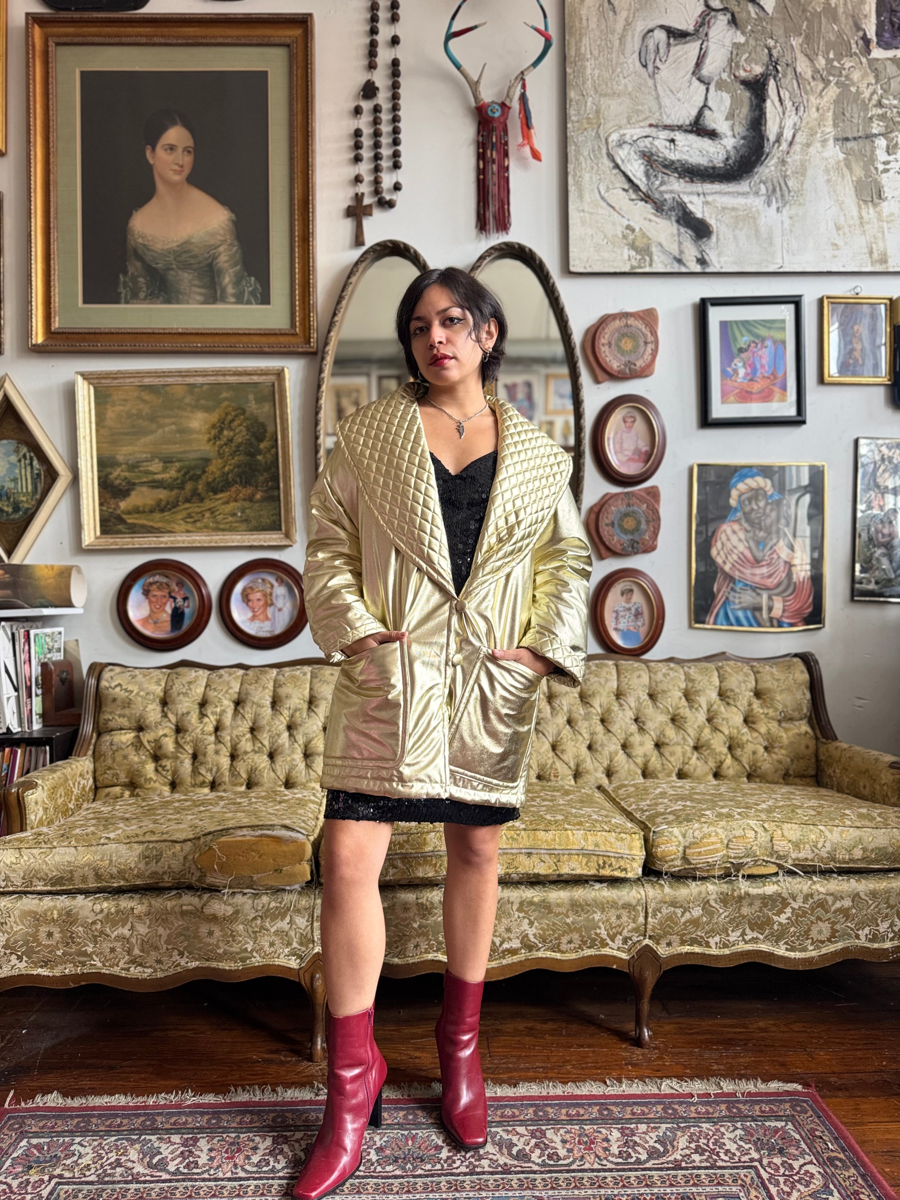 80s Vintage Maurada Champagne Gold Quilted Collar Jacket Size S