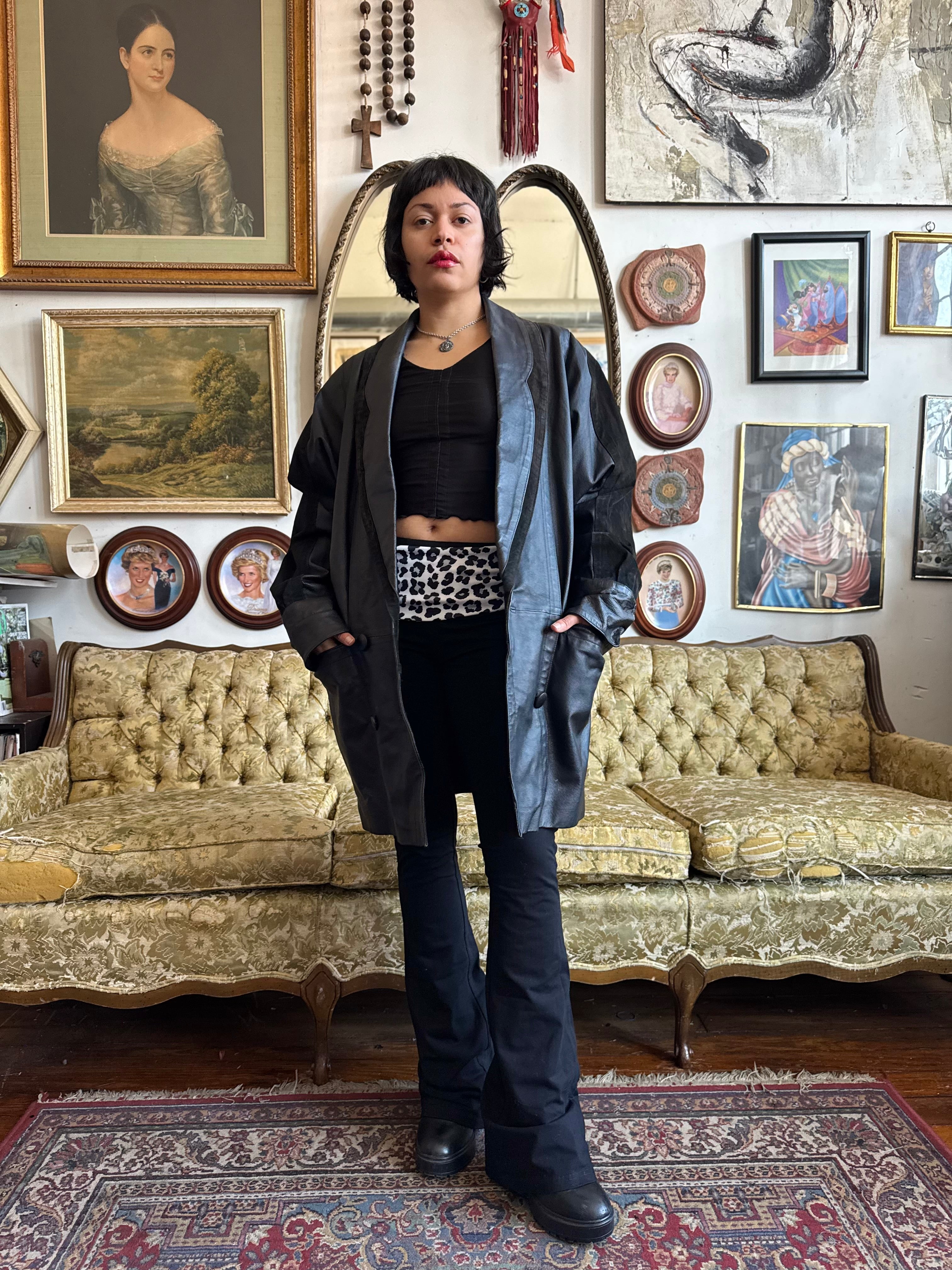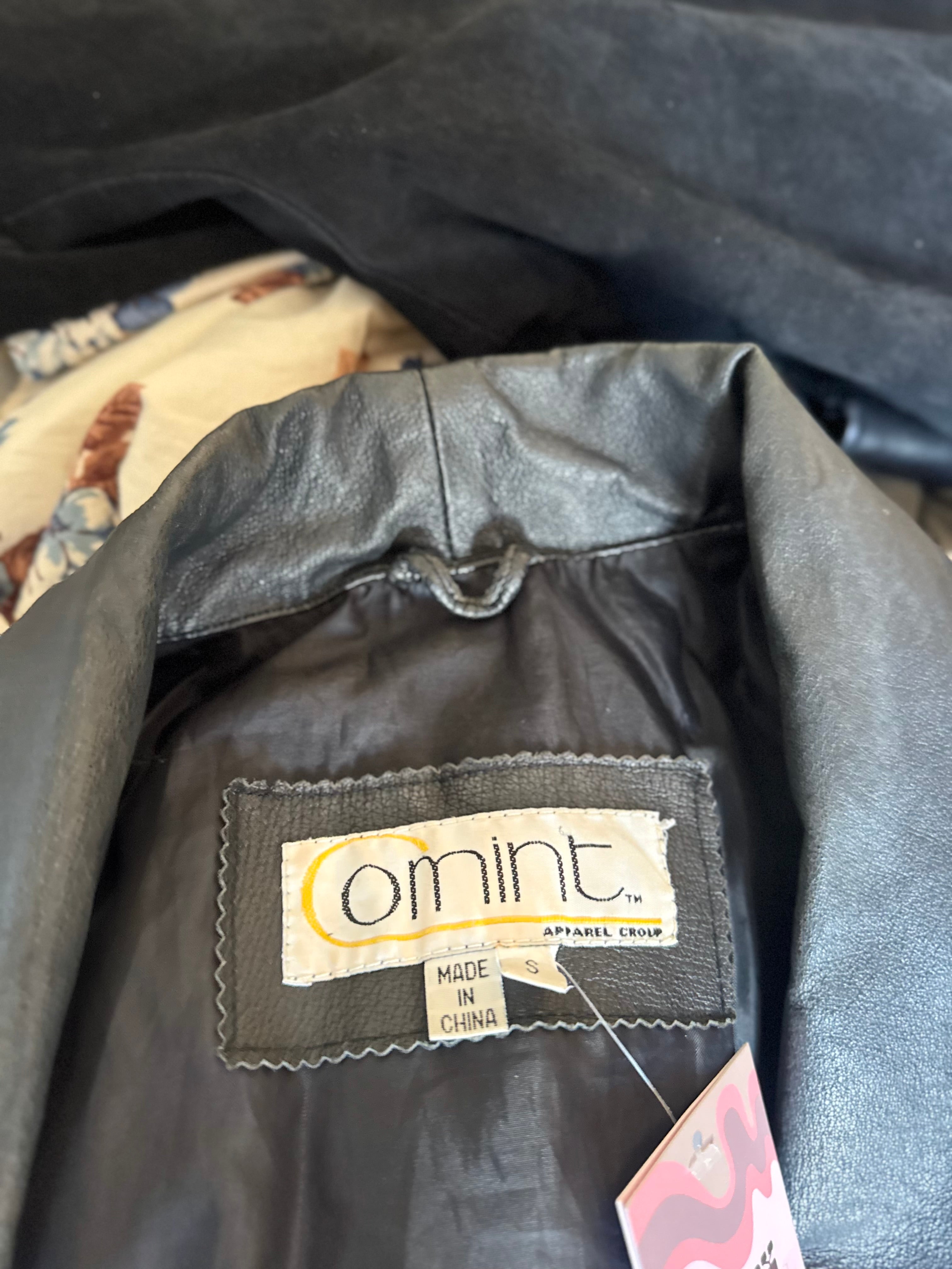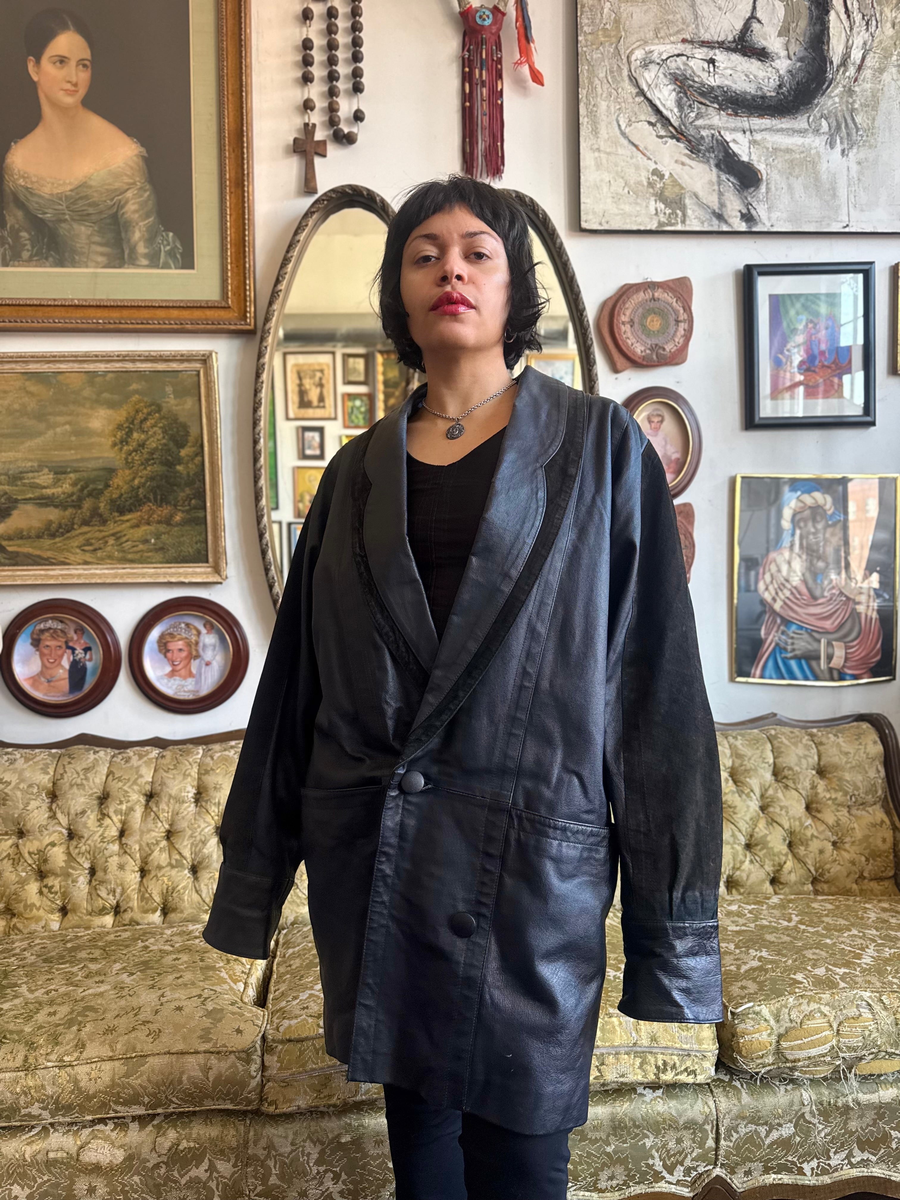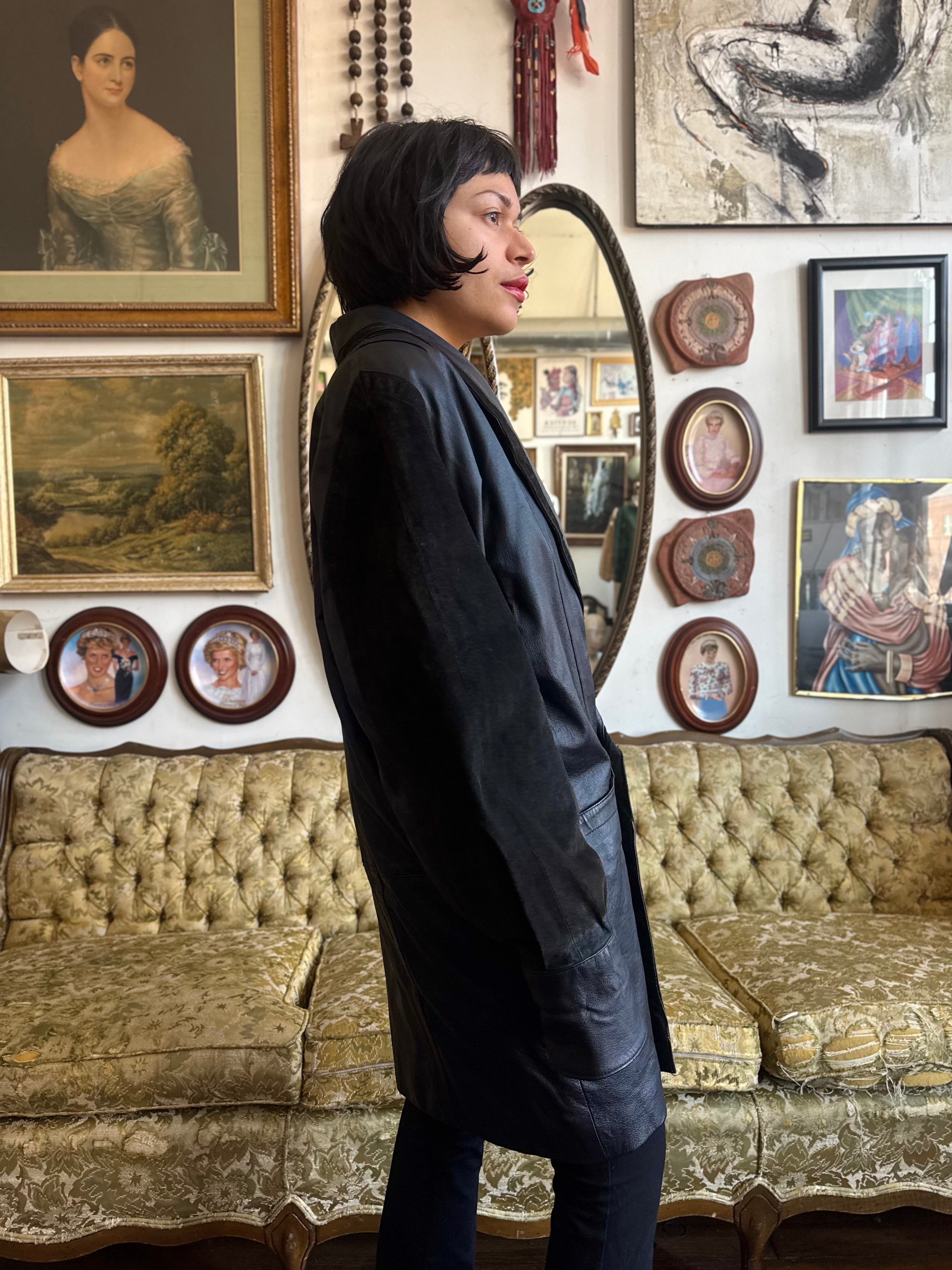 Vintage 1980s Black Leather Oversized Blazer Coat w Lining Size Small
