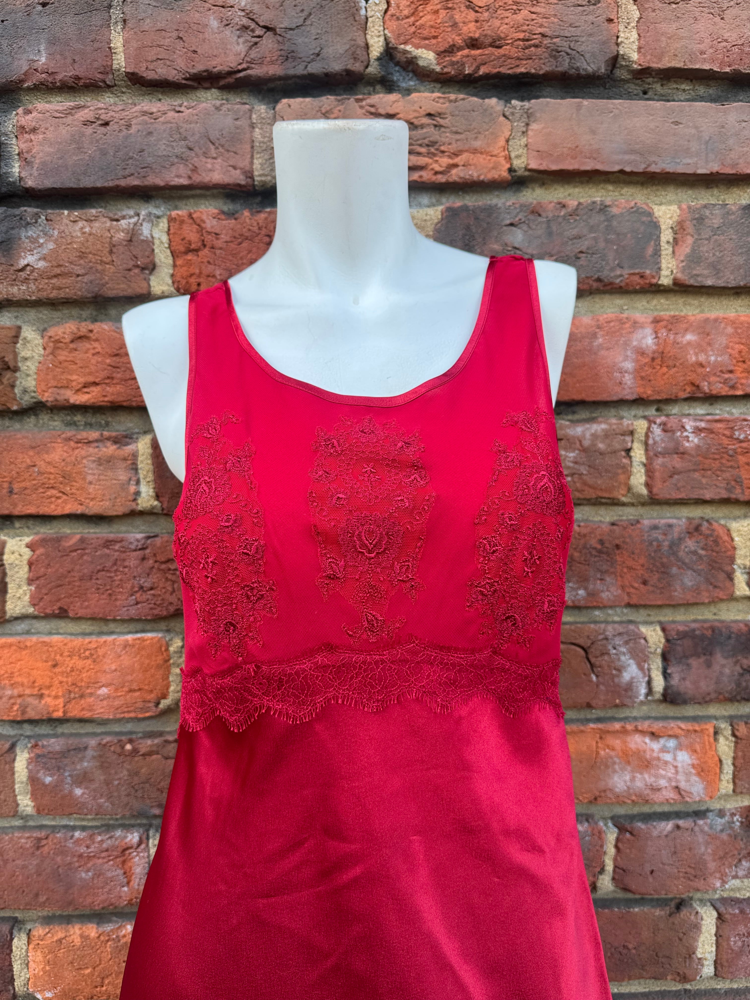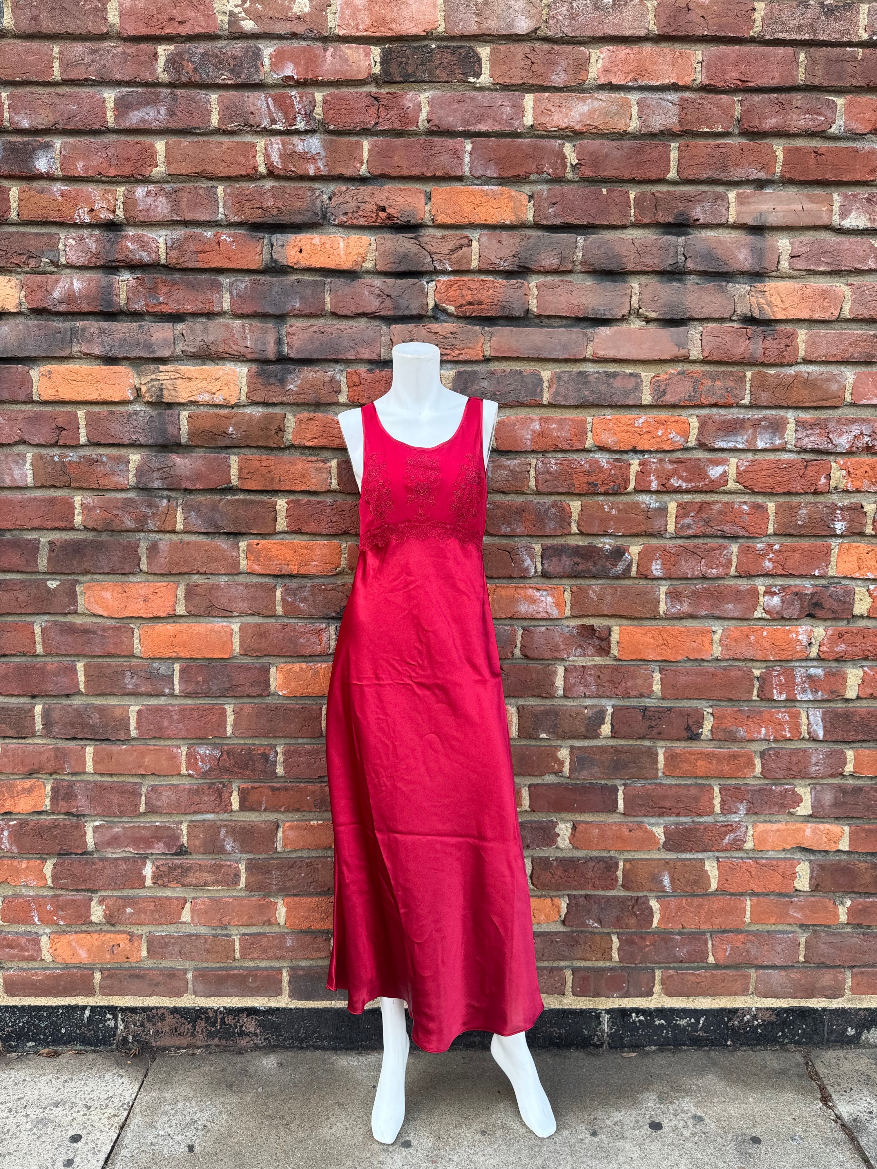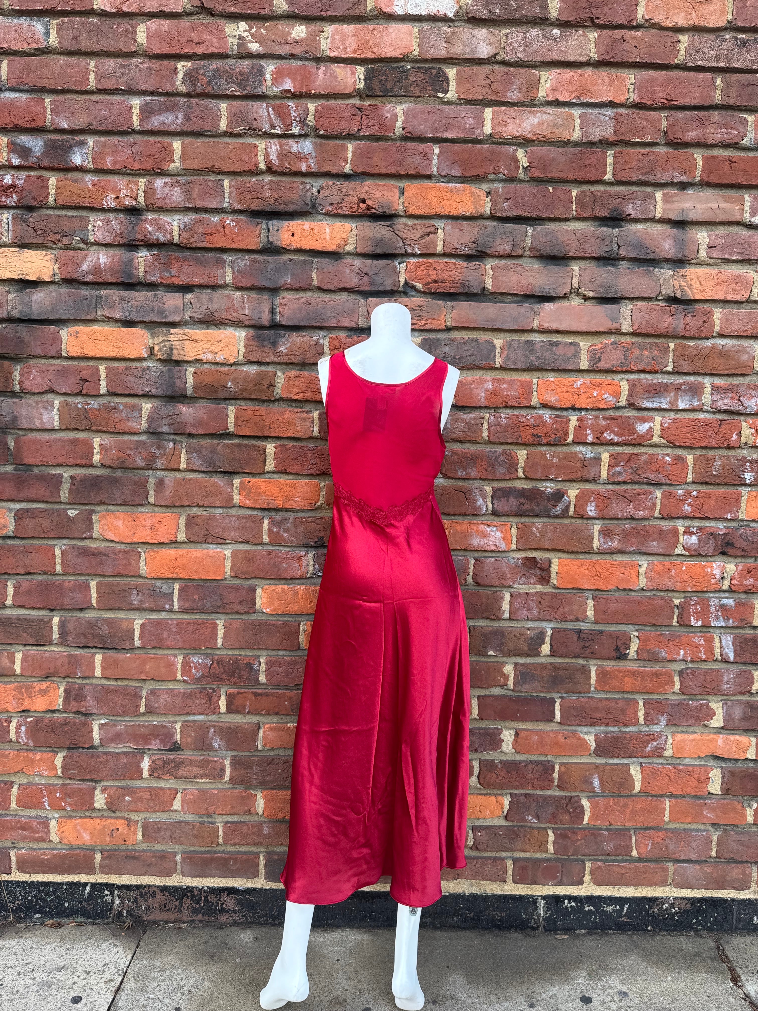 90s / Y2k Oscar de la Renta Pink Label Red Maxi Slip Dress Size S