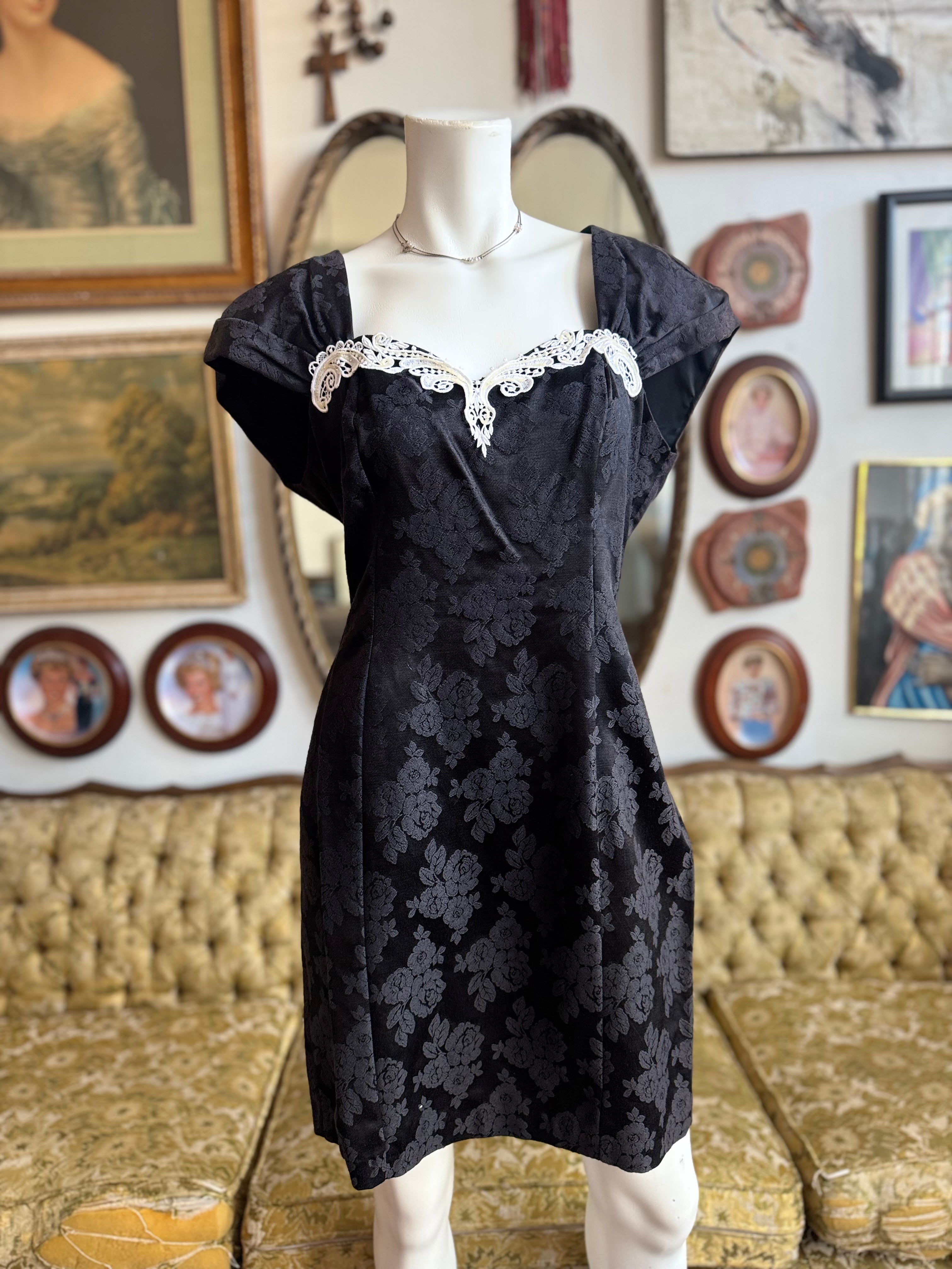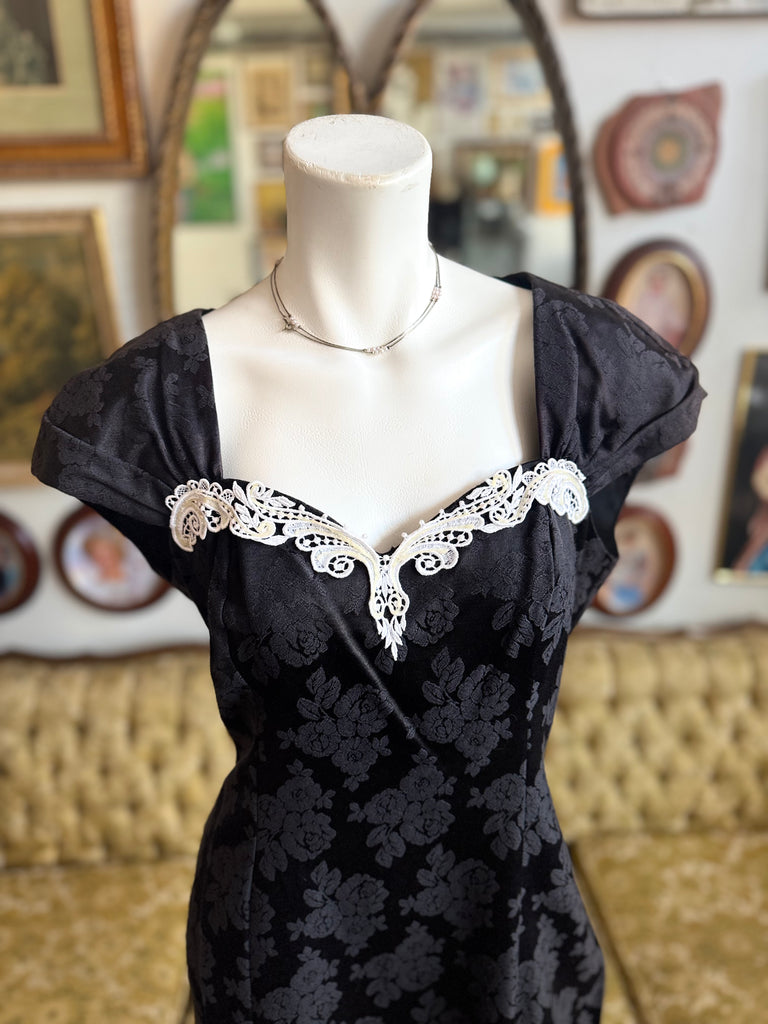90s Vintage Marnie West Collared Keyhole Back Dress Size L