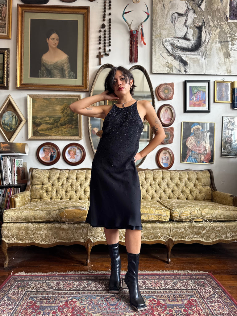 90s Black Boat Neck Beaded Gown Size 2/XS