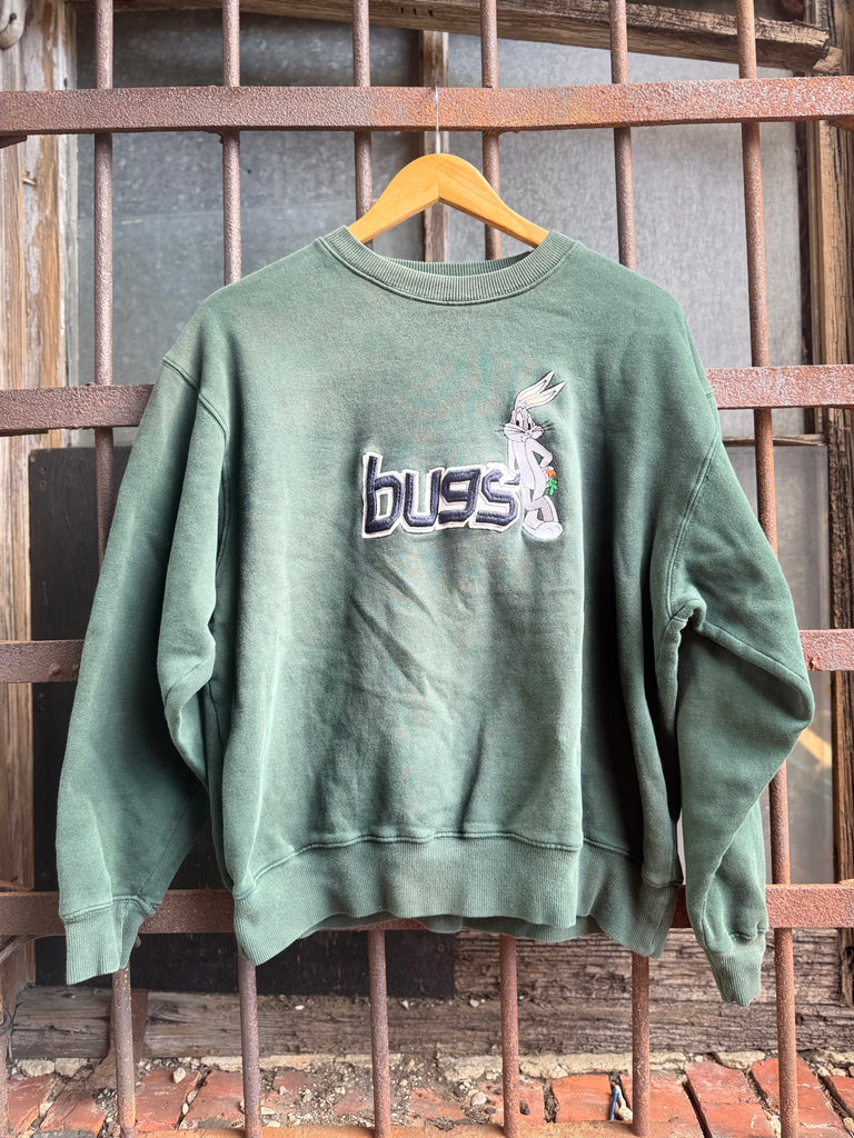 90s Vintage Six Flags Amusement Park Black Sweatshirt with Neon Text Mens Large