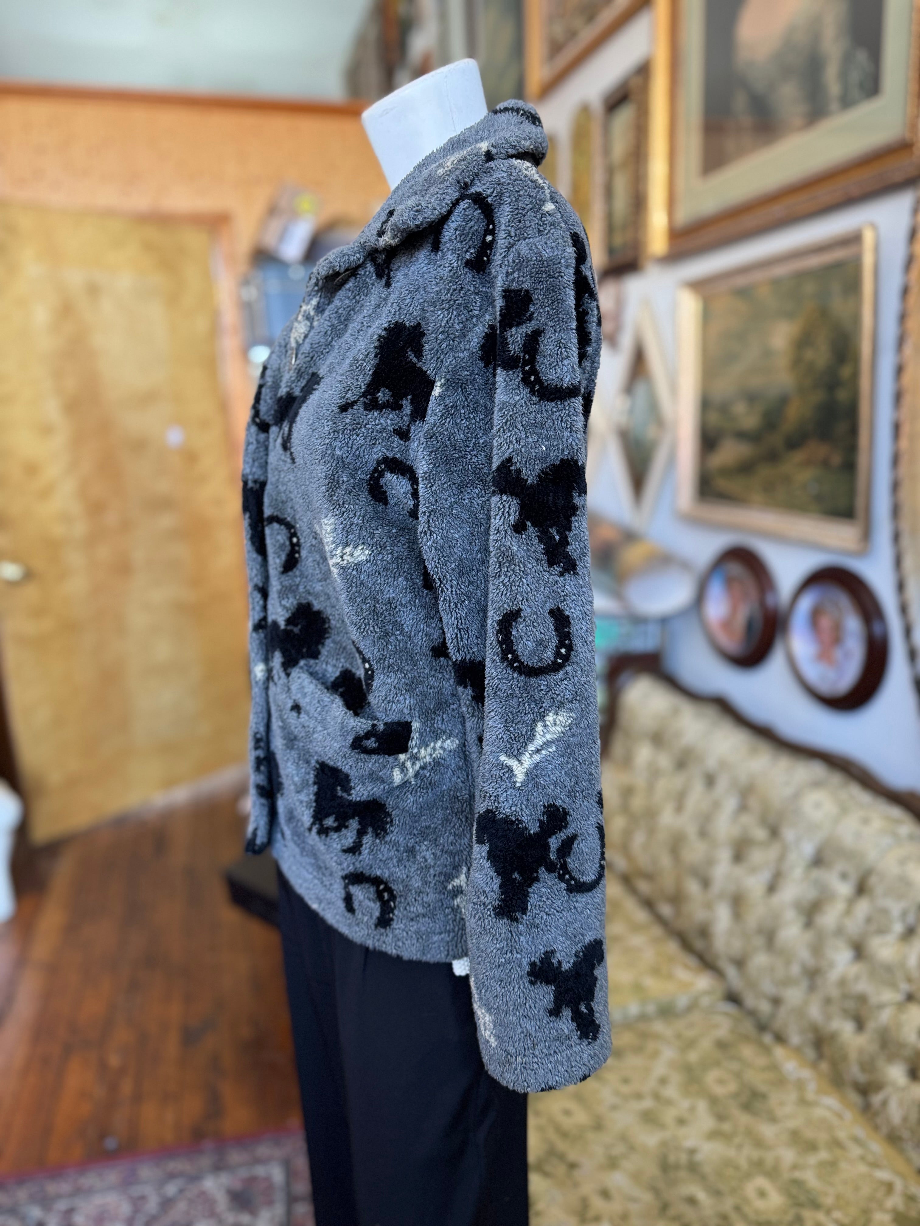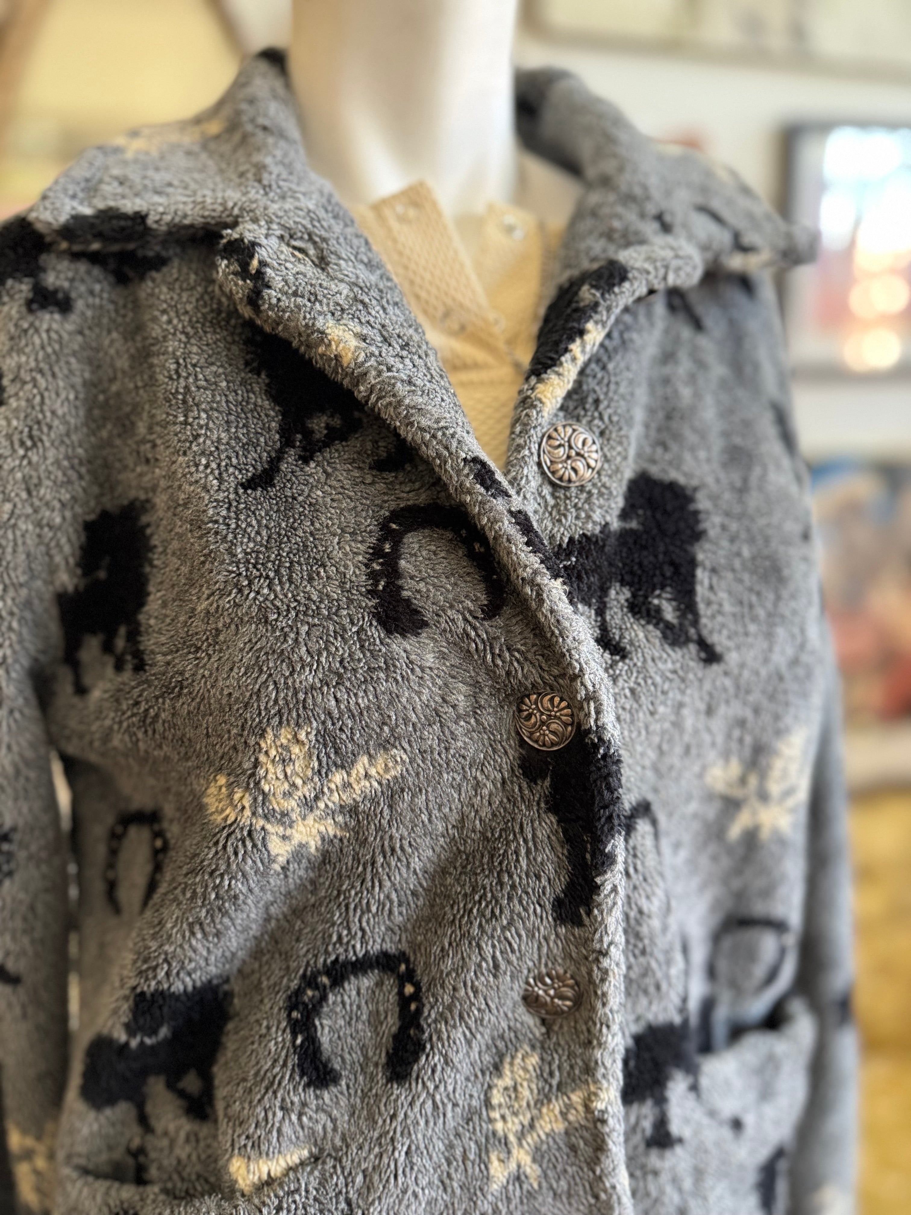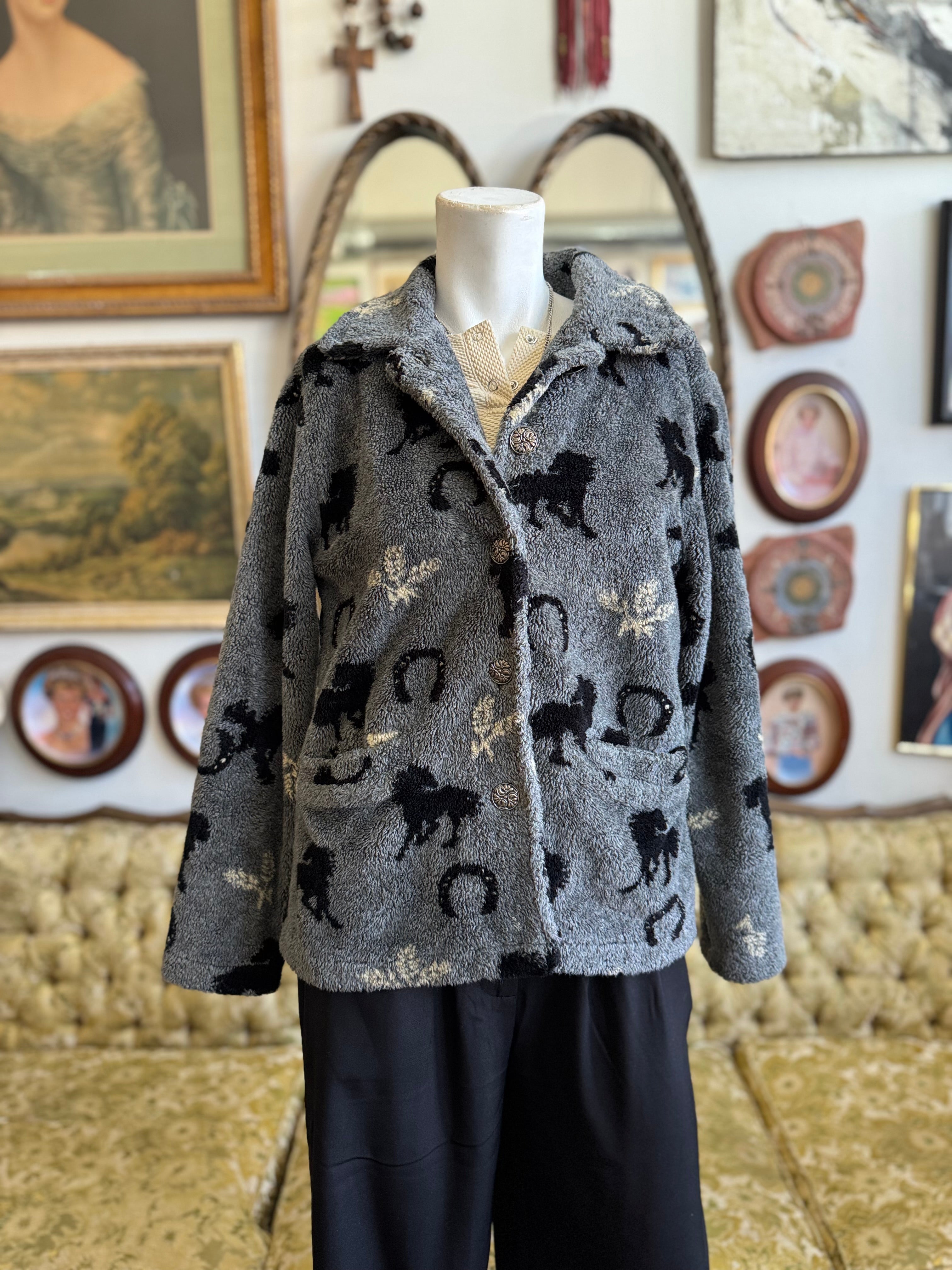 Description: 90s Vintage Grey Horse Fleece. SOLD AS IS for small stains.