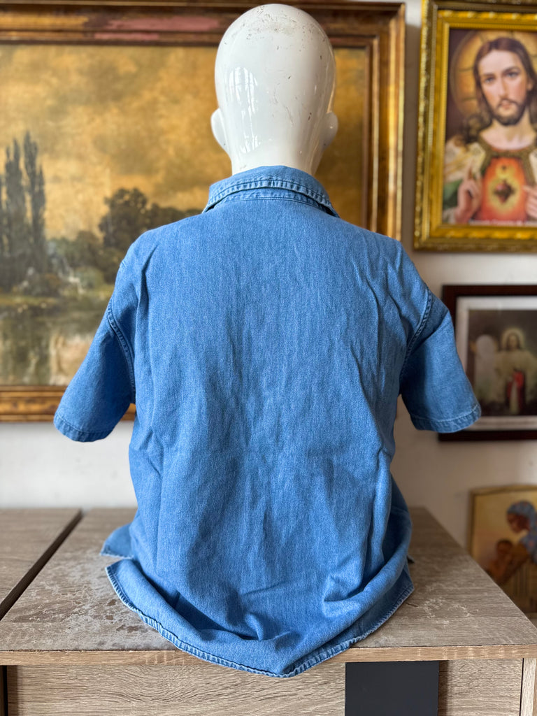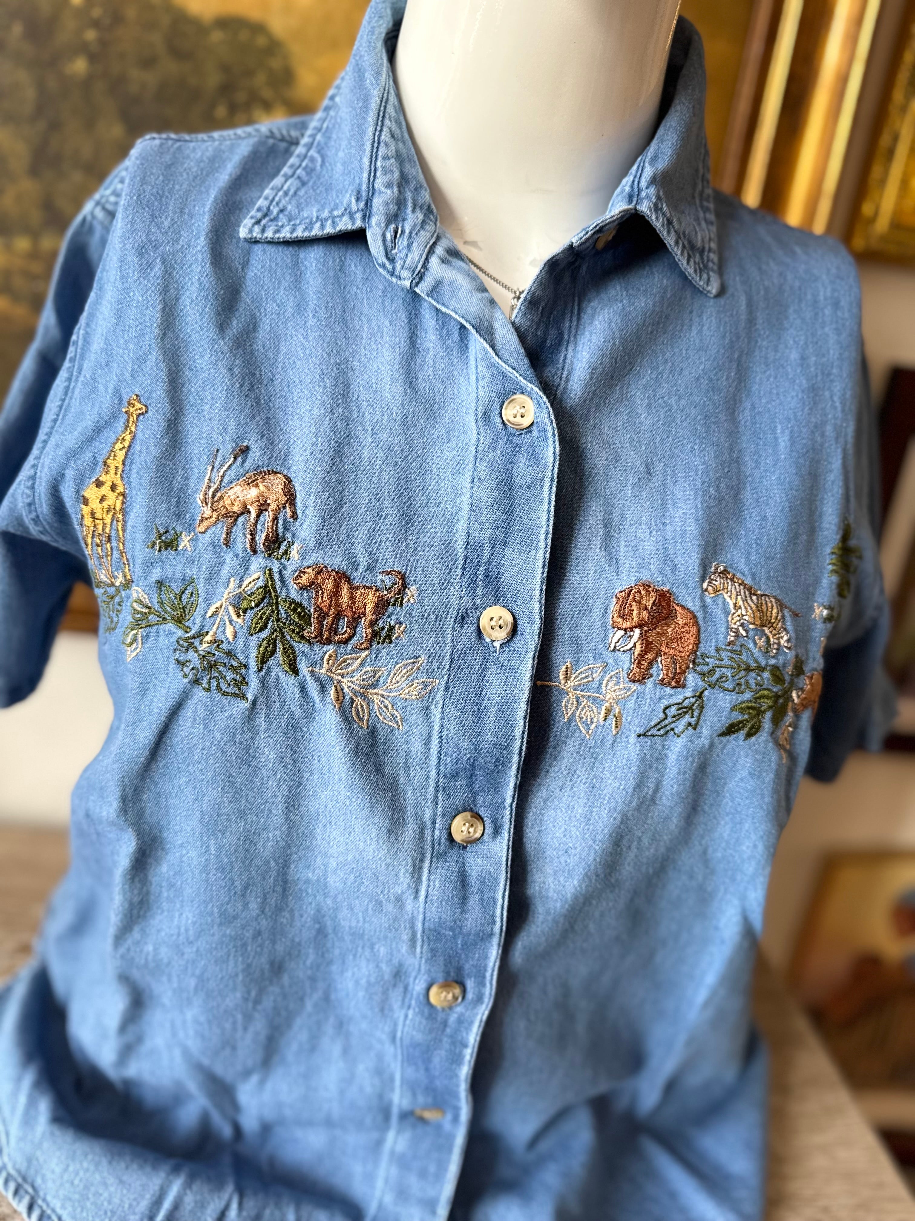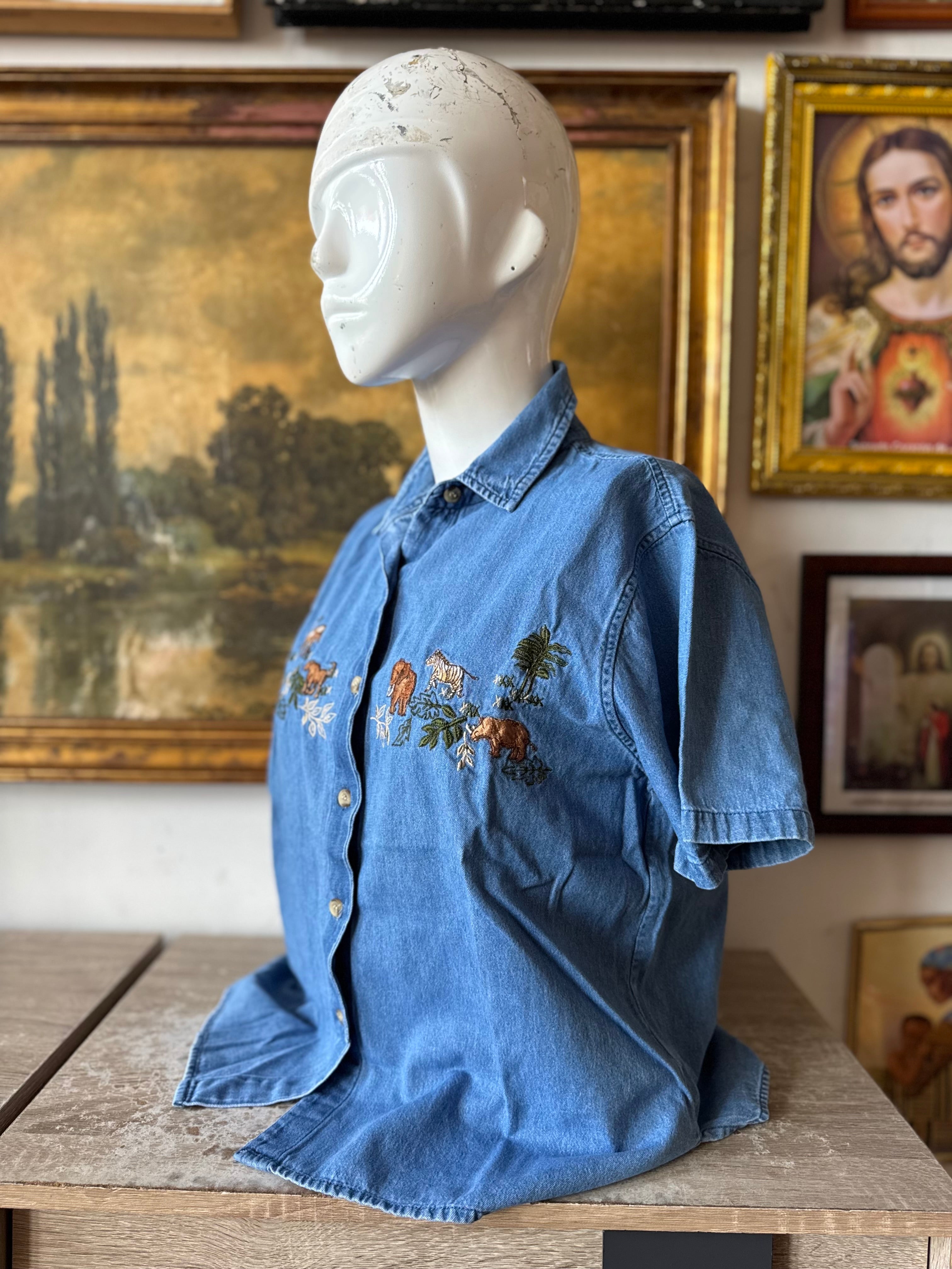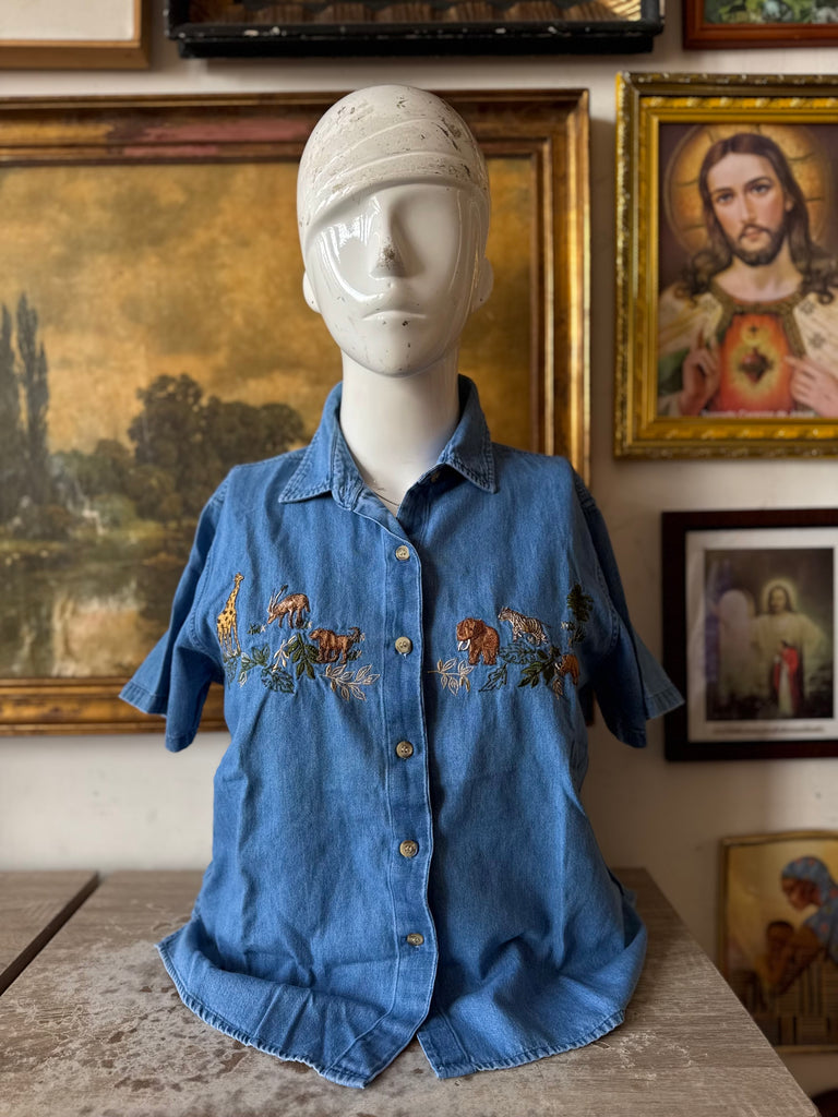 90s Cabin Creek Denim Safari Embroidered Button Front Top Size L