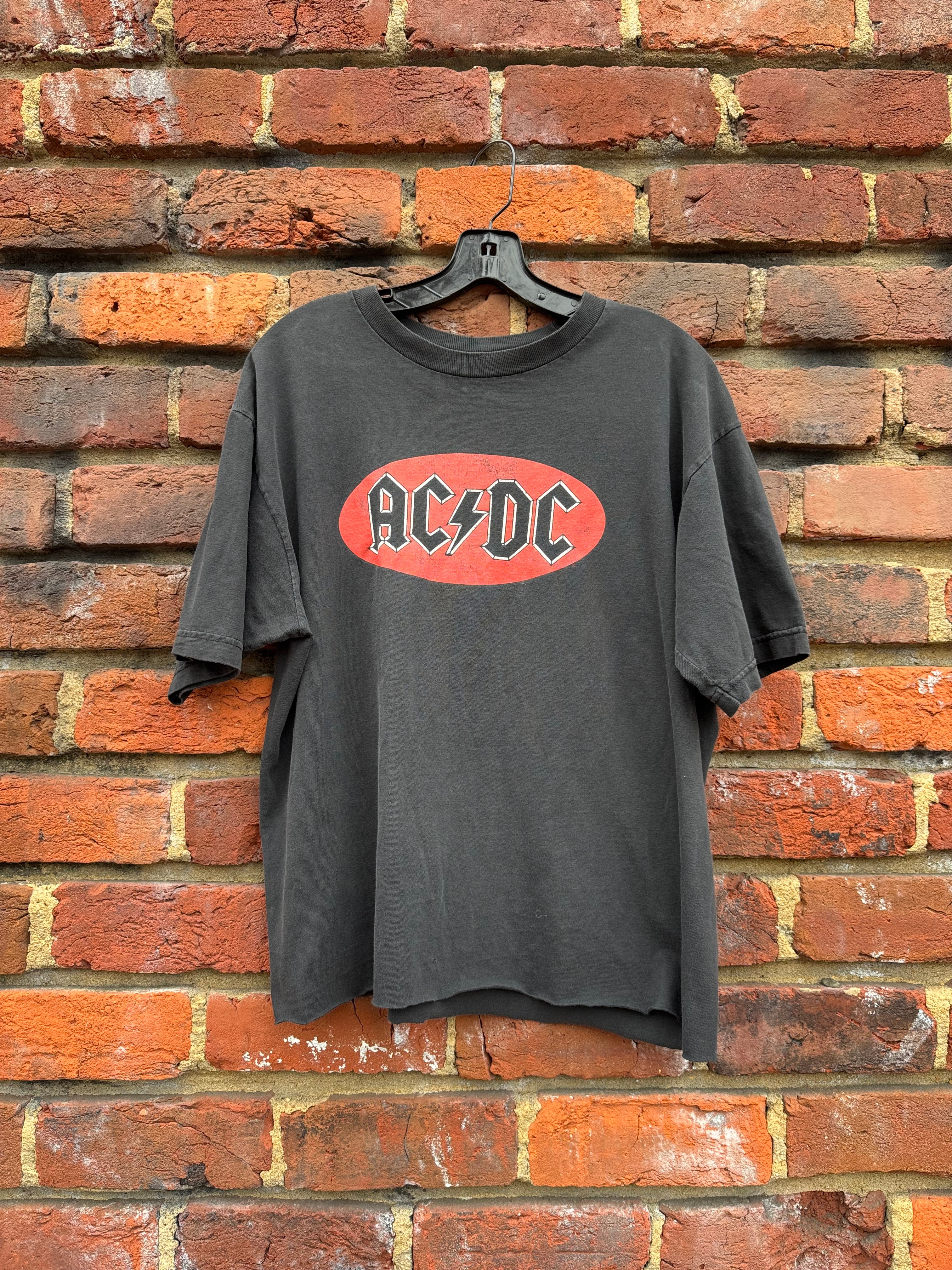 Y2K AC/DC Dark Grey Tee. SOLD AS IS (raw hem, small paint on back)