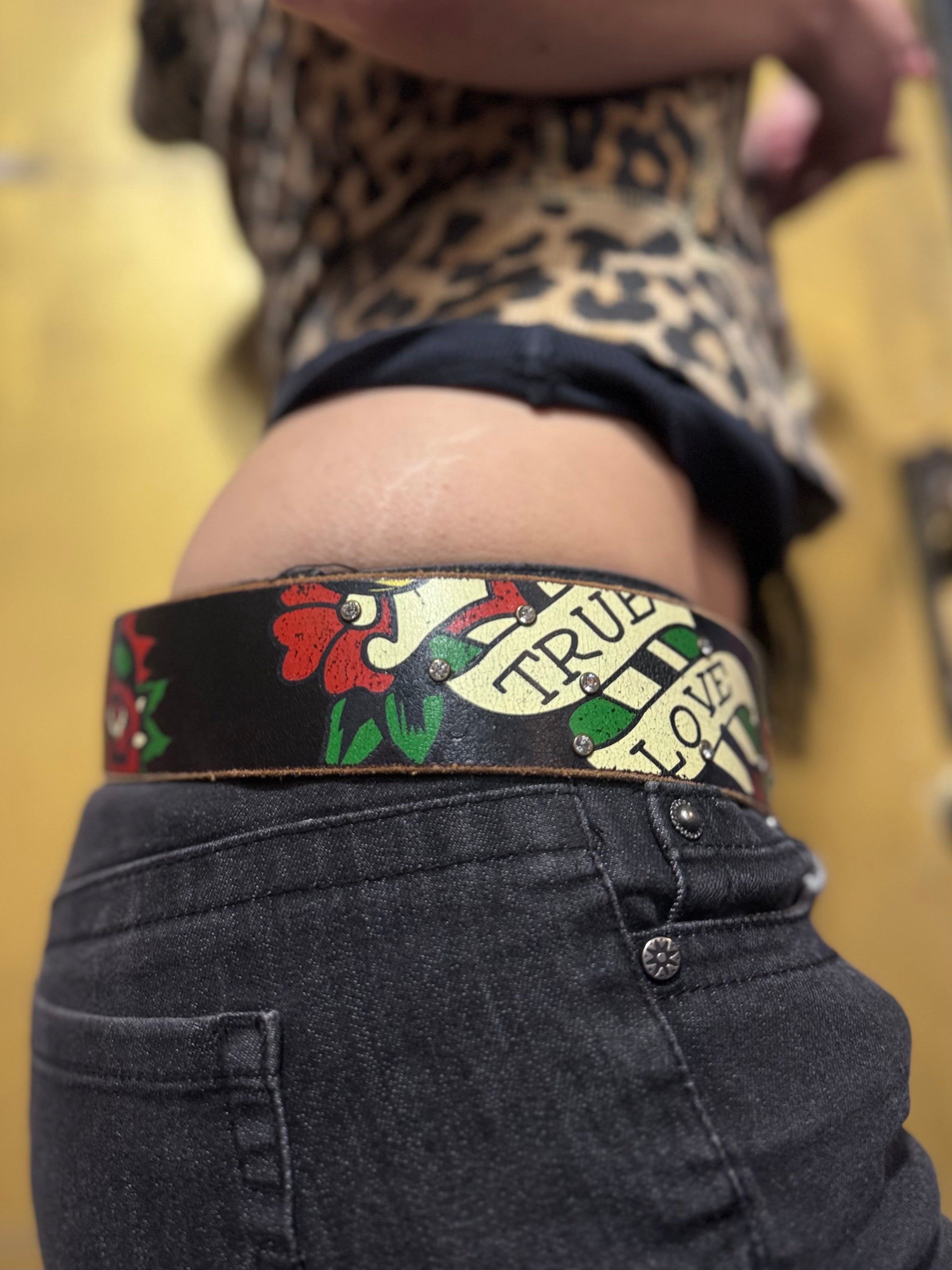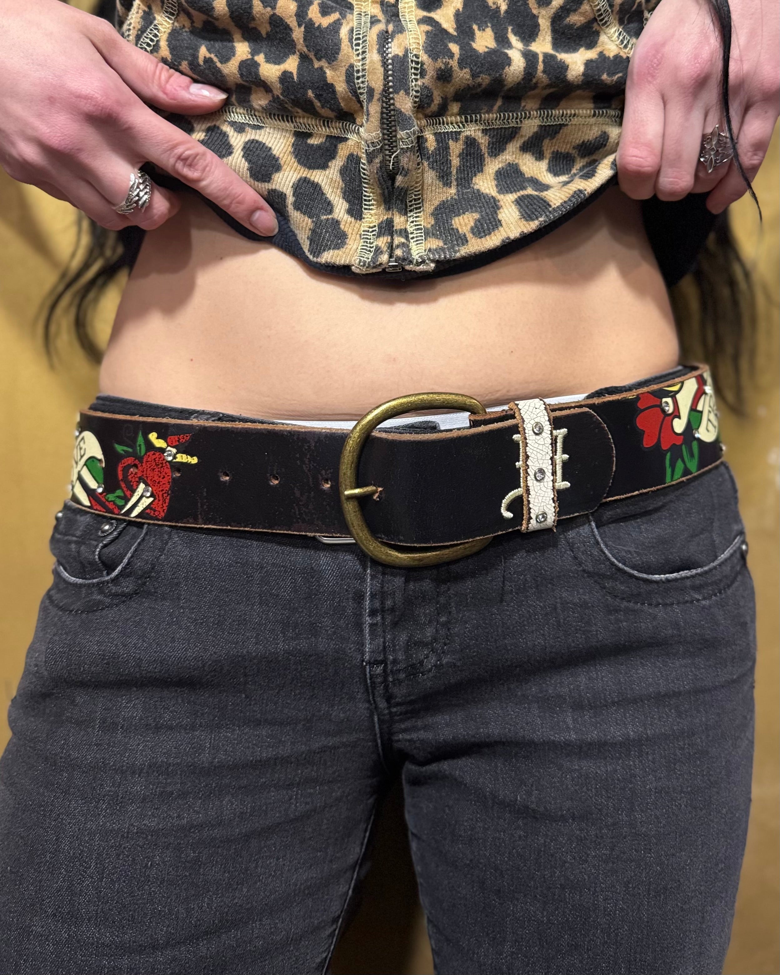 Leather Ed Hardy ‘True Love’ Belt Size S/M
