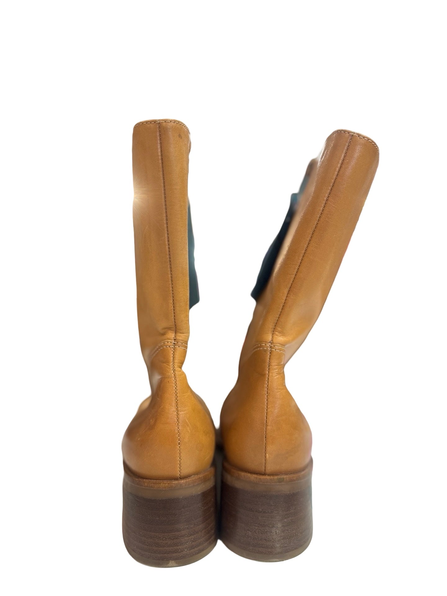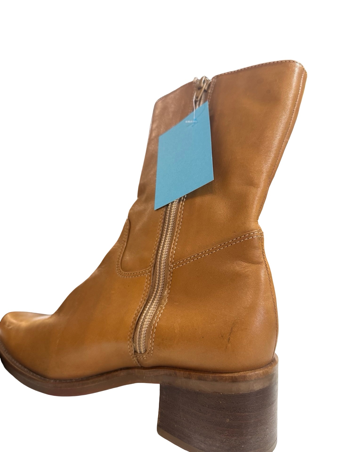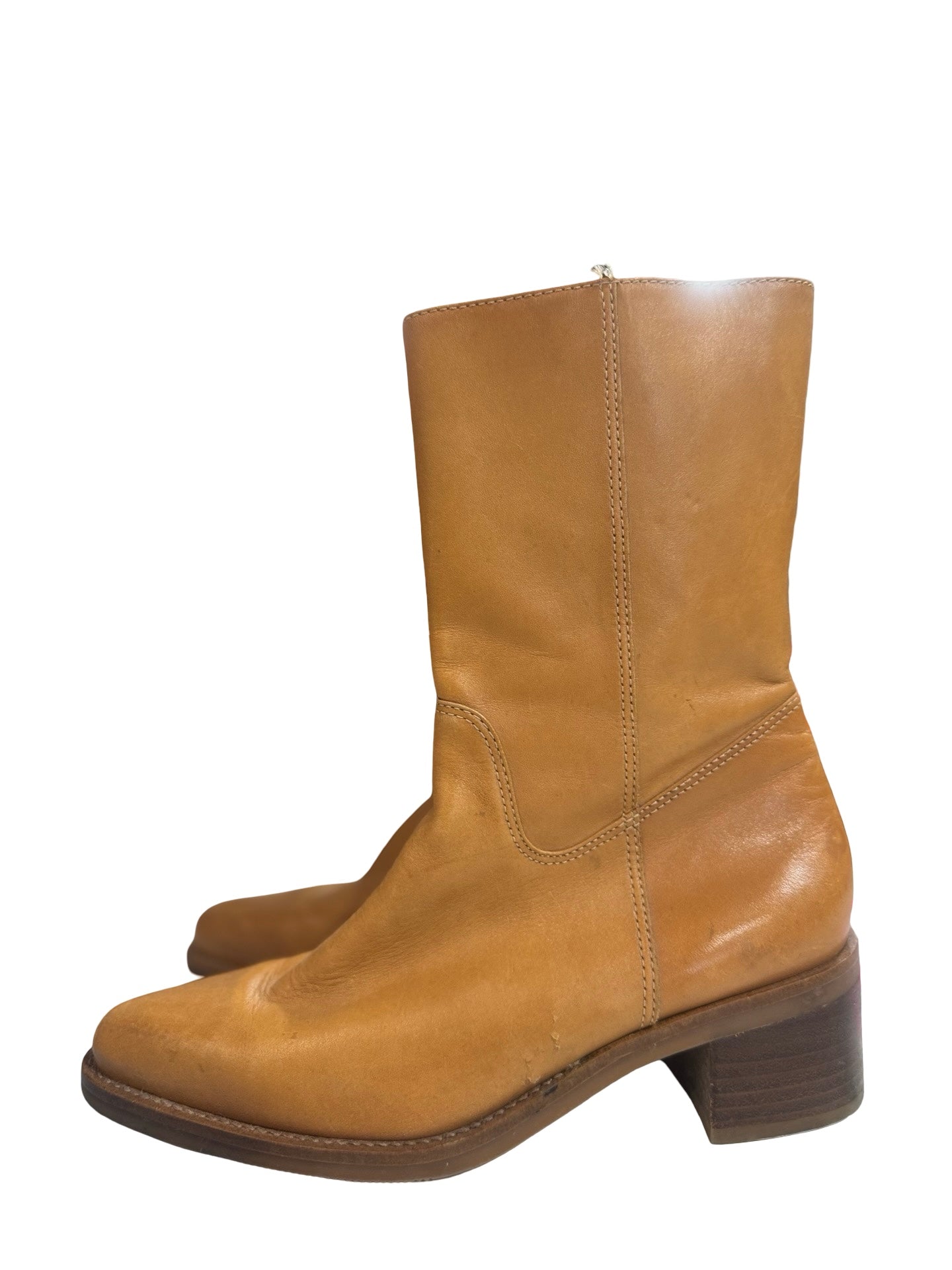 Amanda Smith Camel Leather Western Style Heeled Boots Size 6