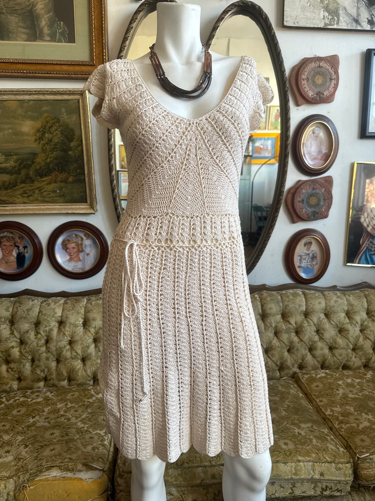 Vintage Secretary Blue All Over Print Vibrant Dress Size Small by Karen Stevens