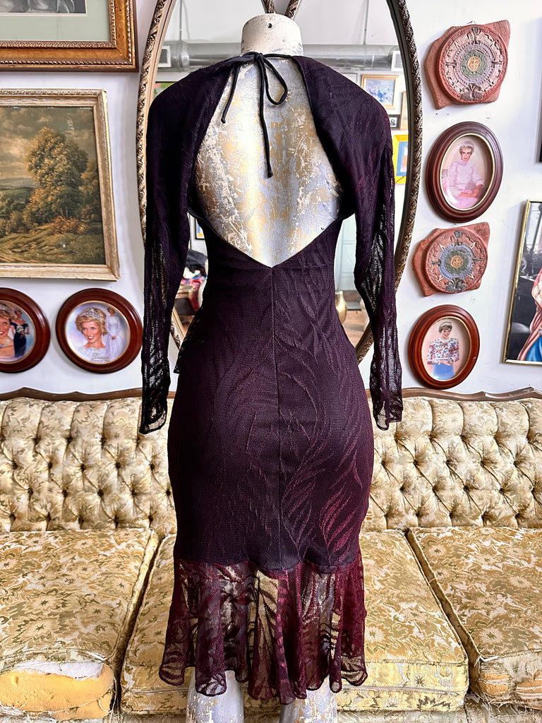 80s For David Howard Climax Longsleeve Open Back Dress Size Small As Is Size Small