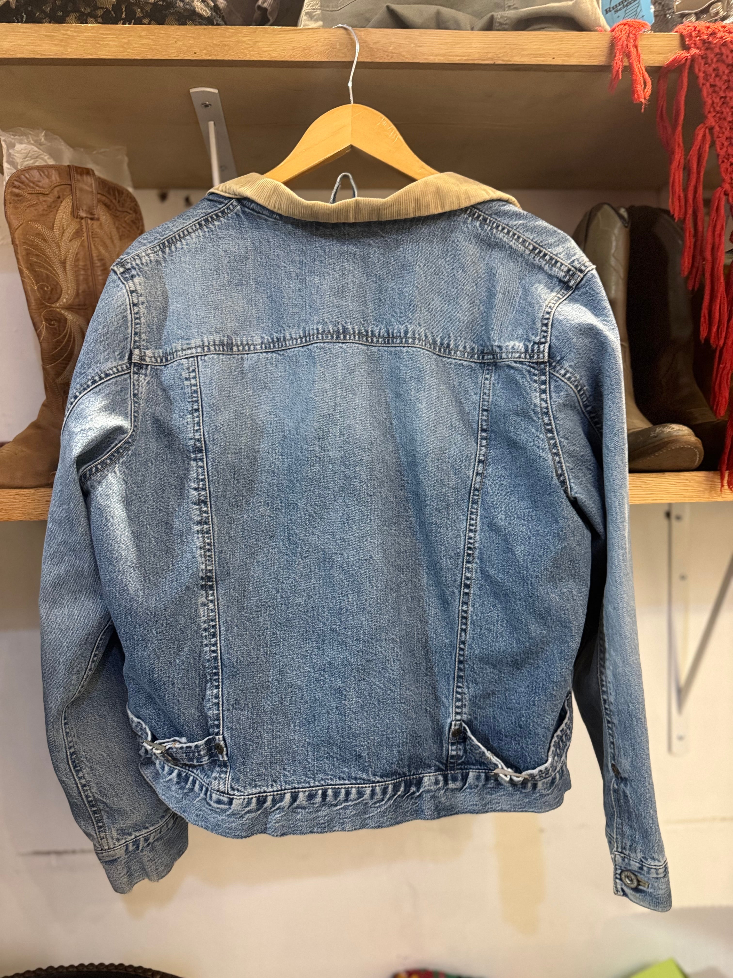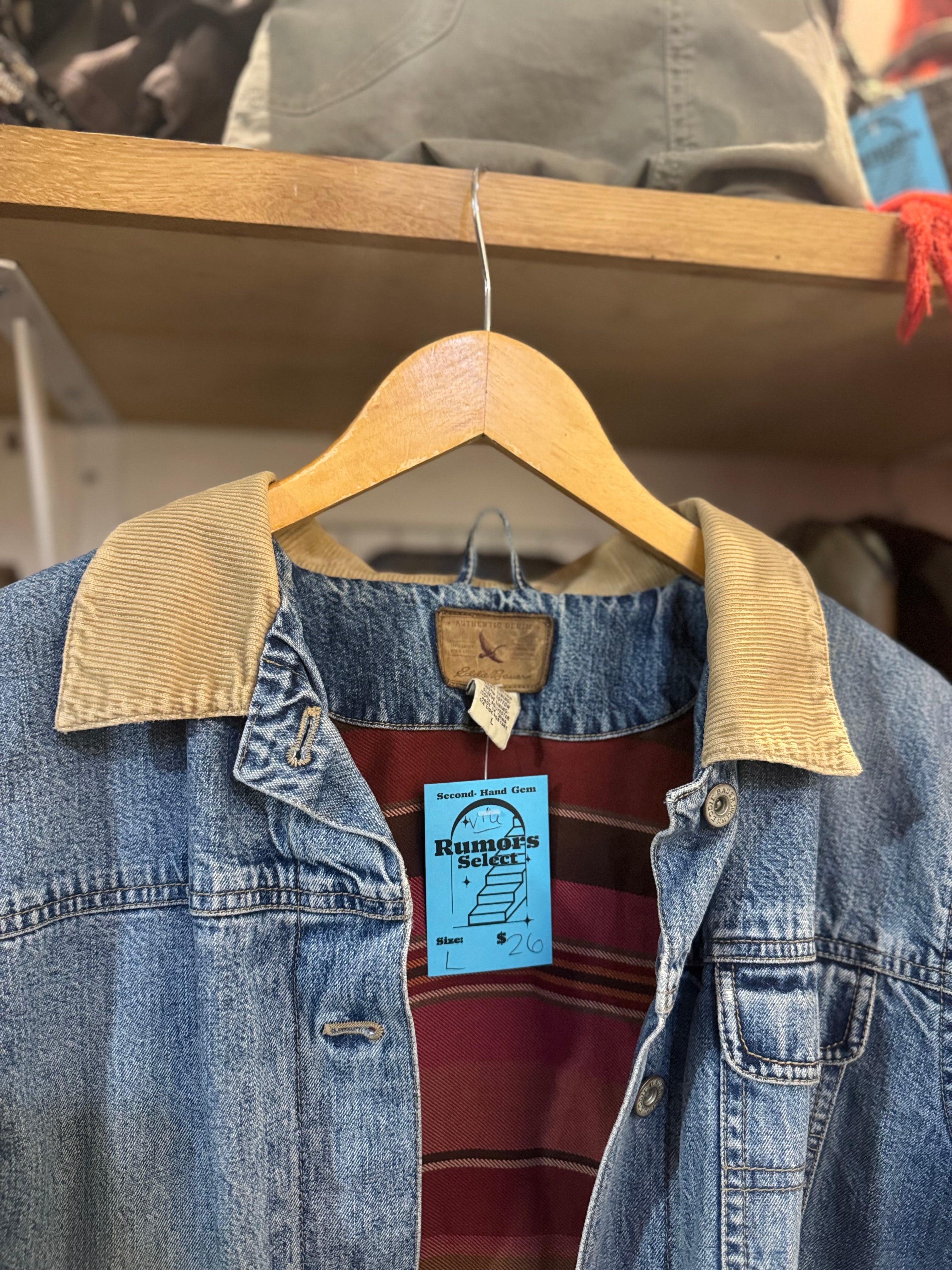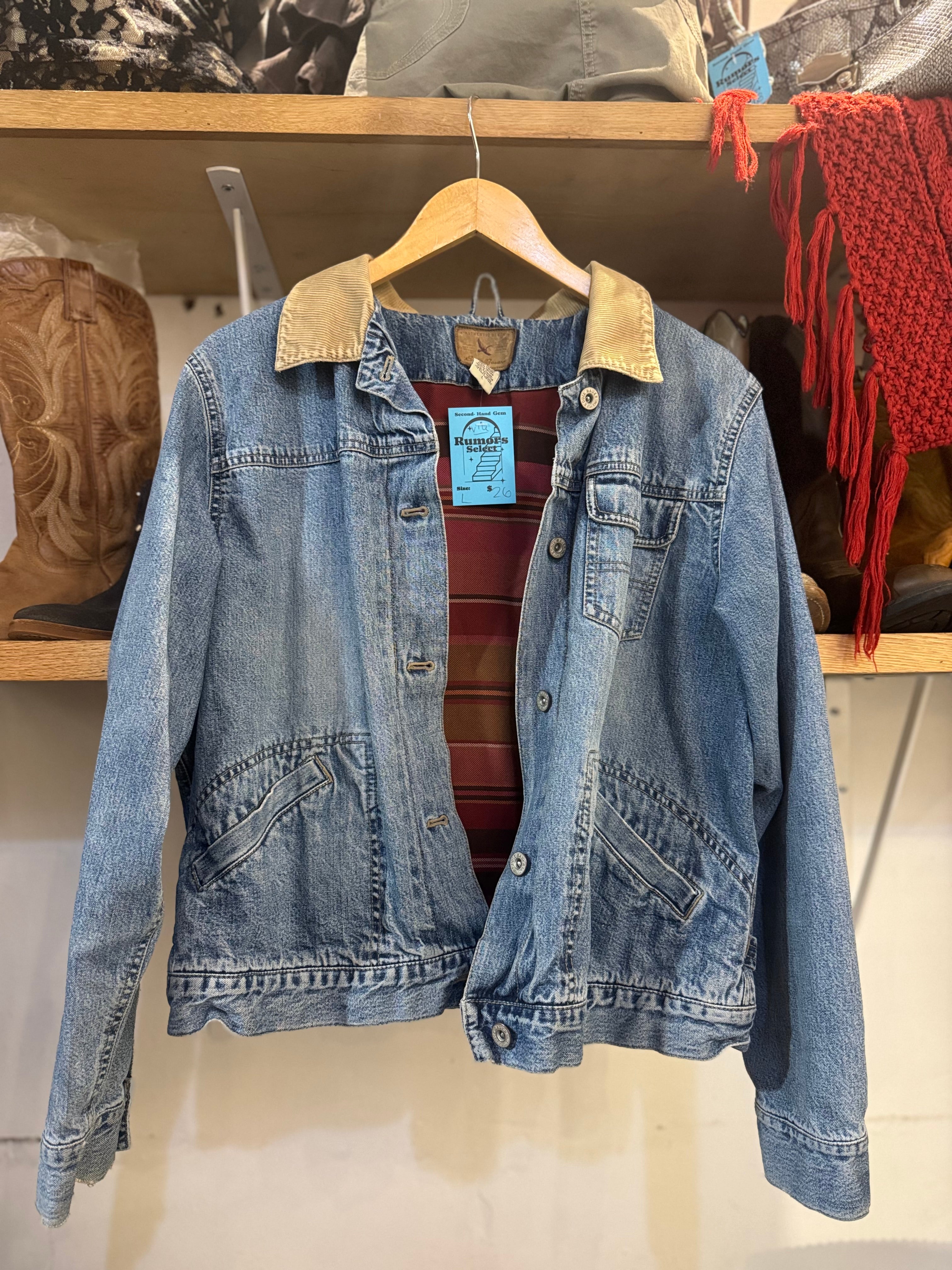 Vintage 90s Eddie Bauer Flannel Lined Cropped Denim Jacket Size L