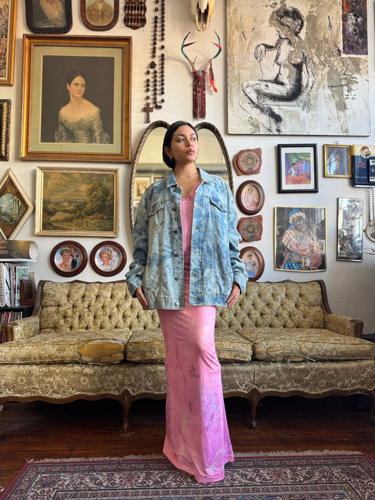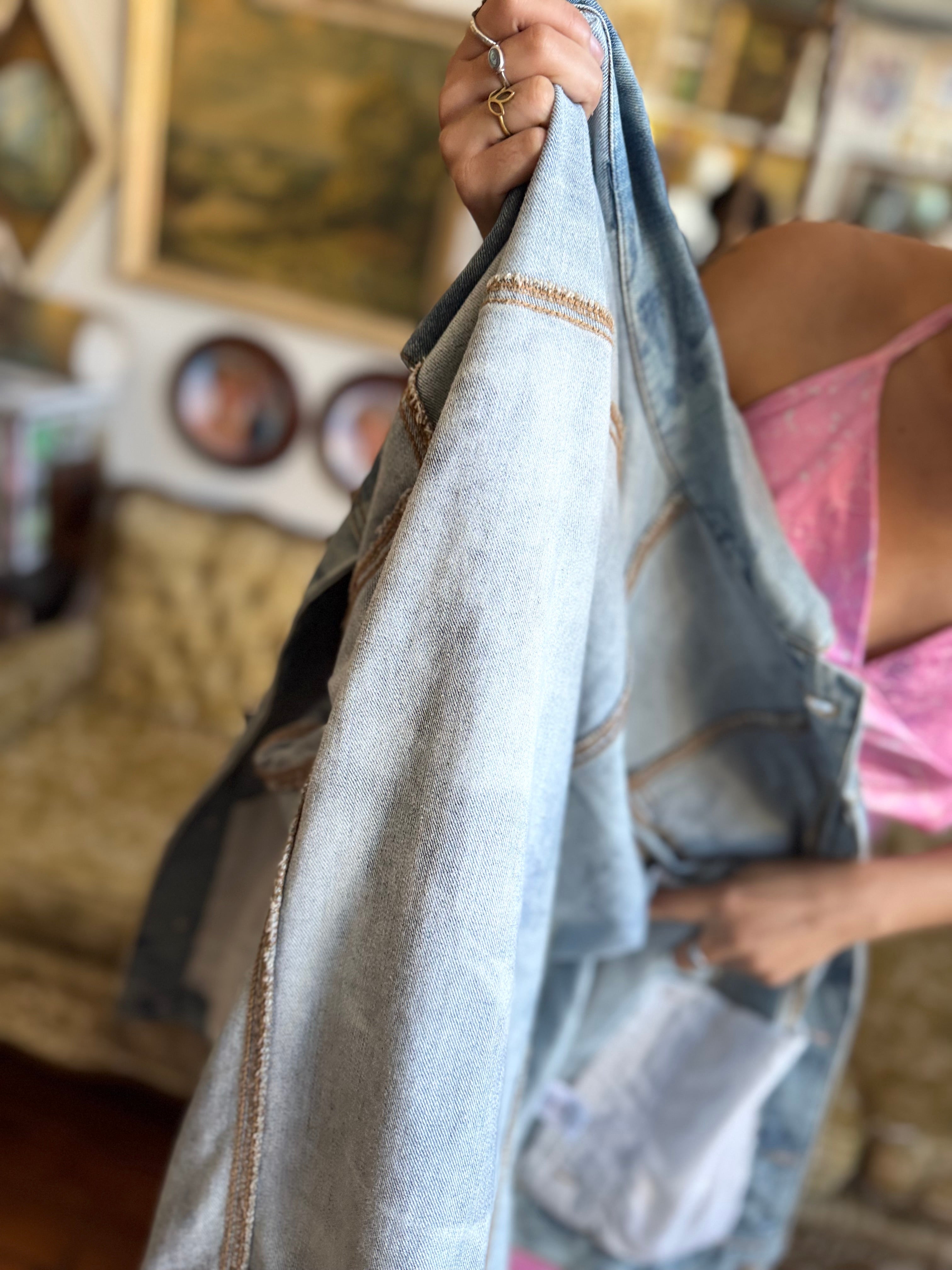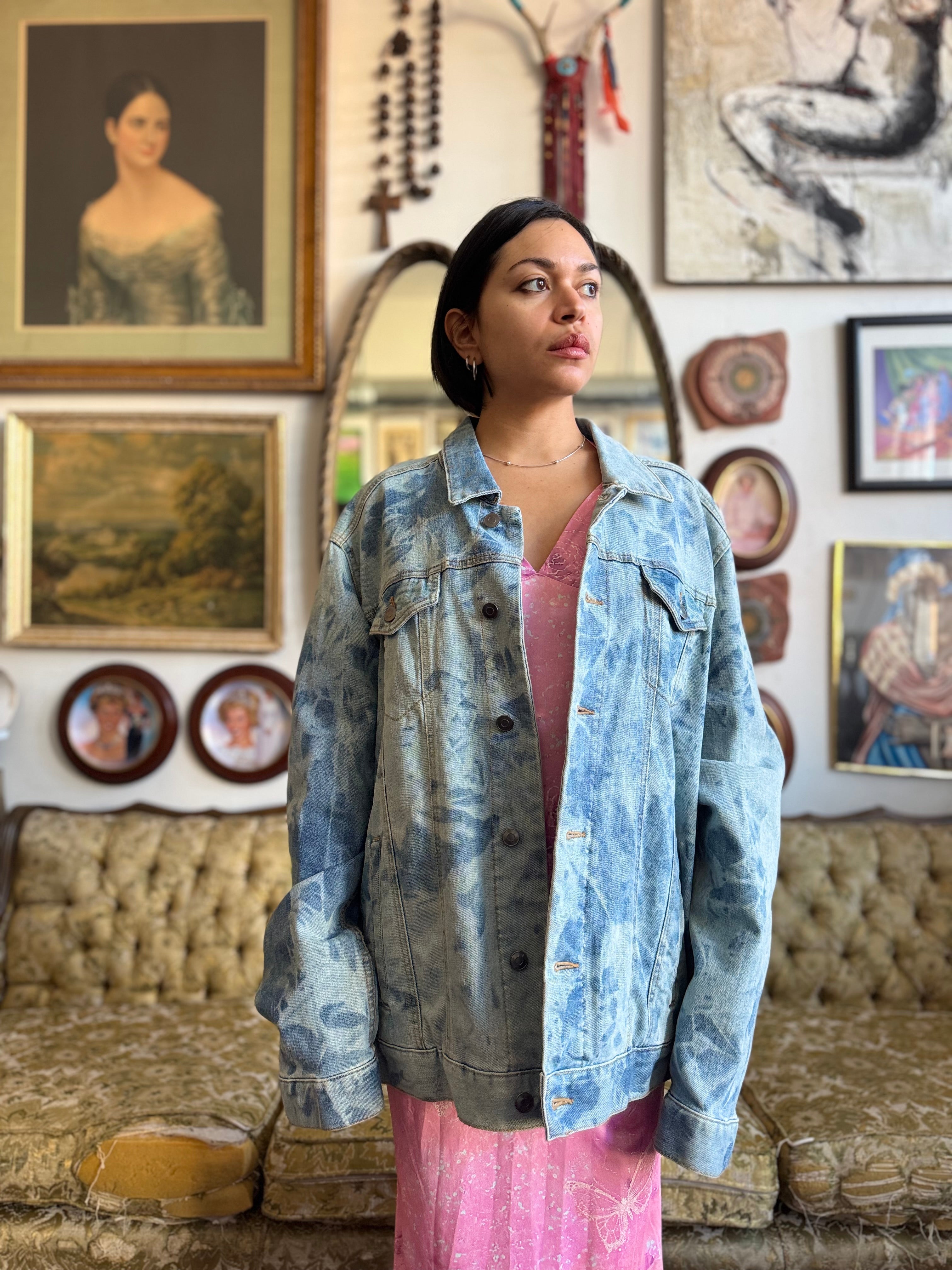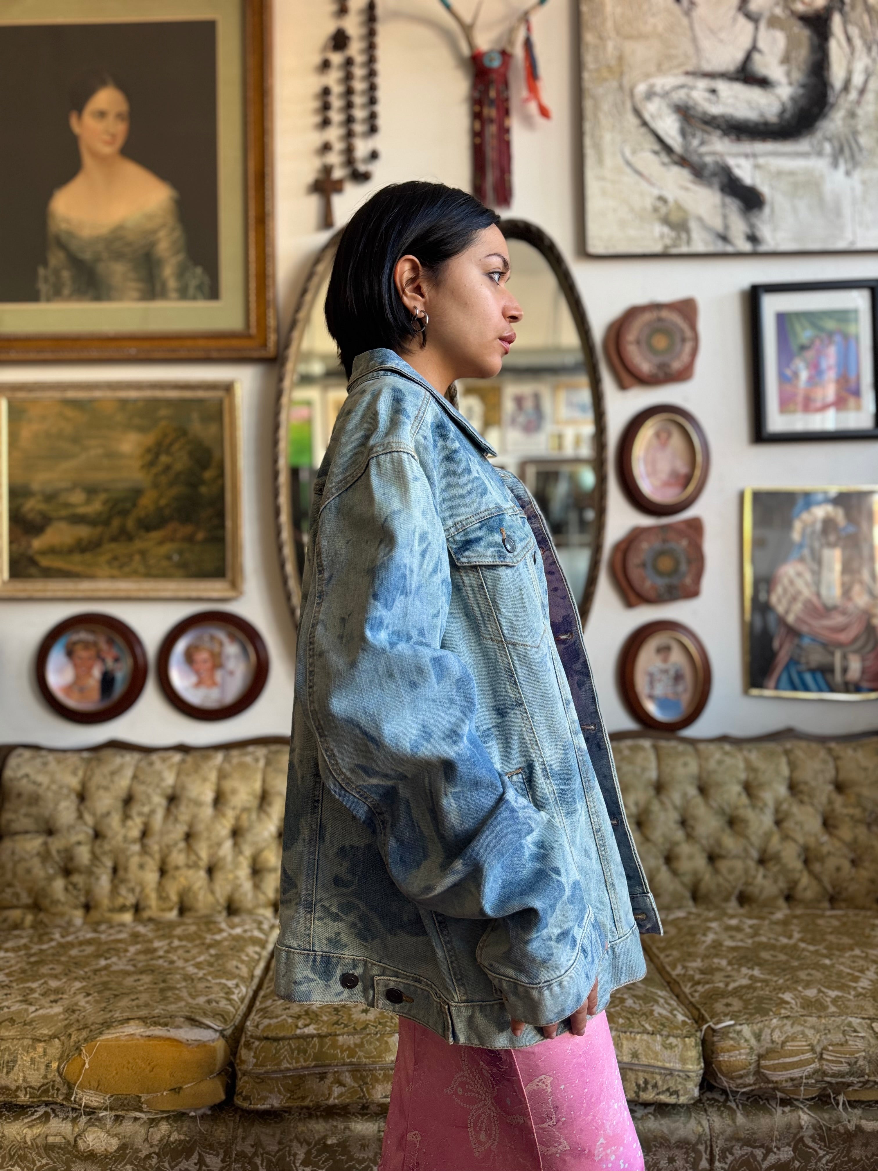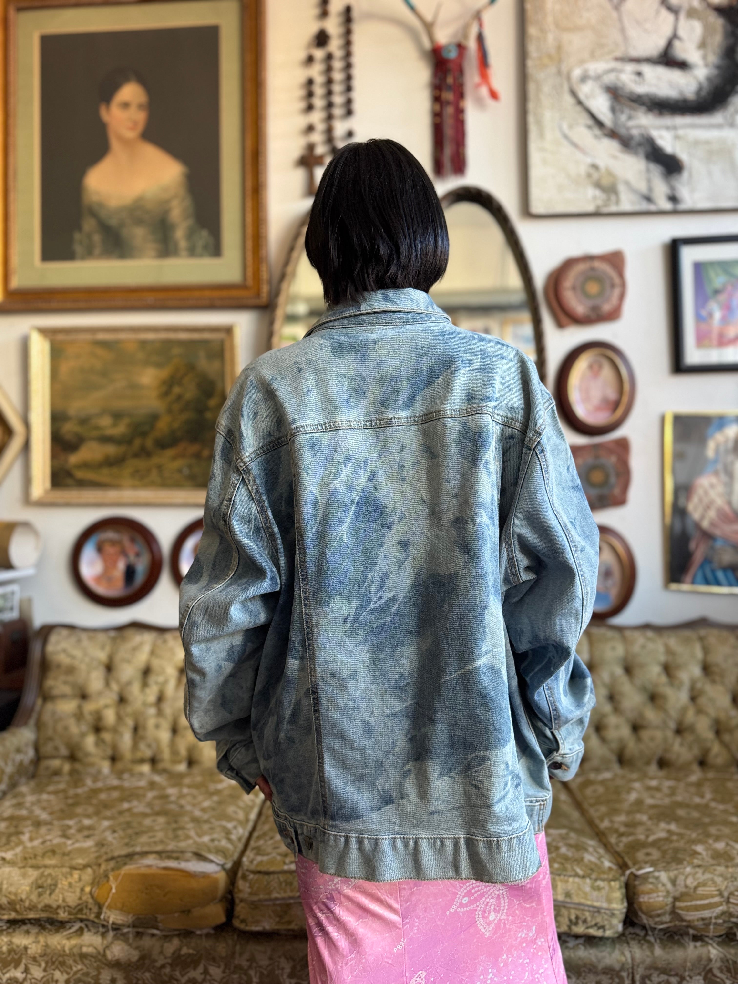 Description: Denim Jacket with Bleach Designs featuring Button Closures