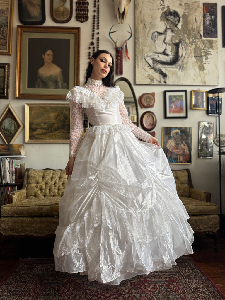 80's Jessica McClintock Gunne Sax White Eyelet Lace Romantic Wedding Dress