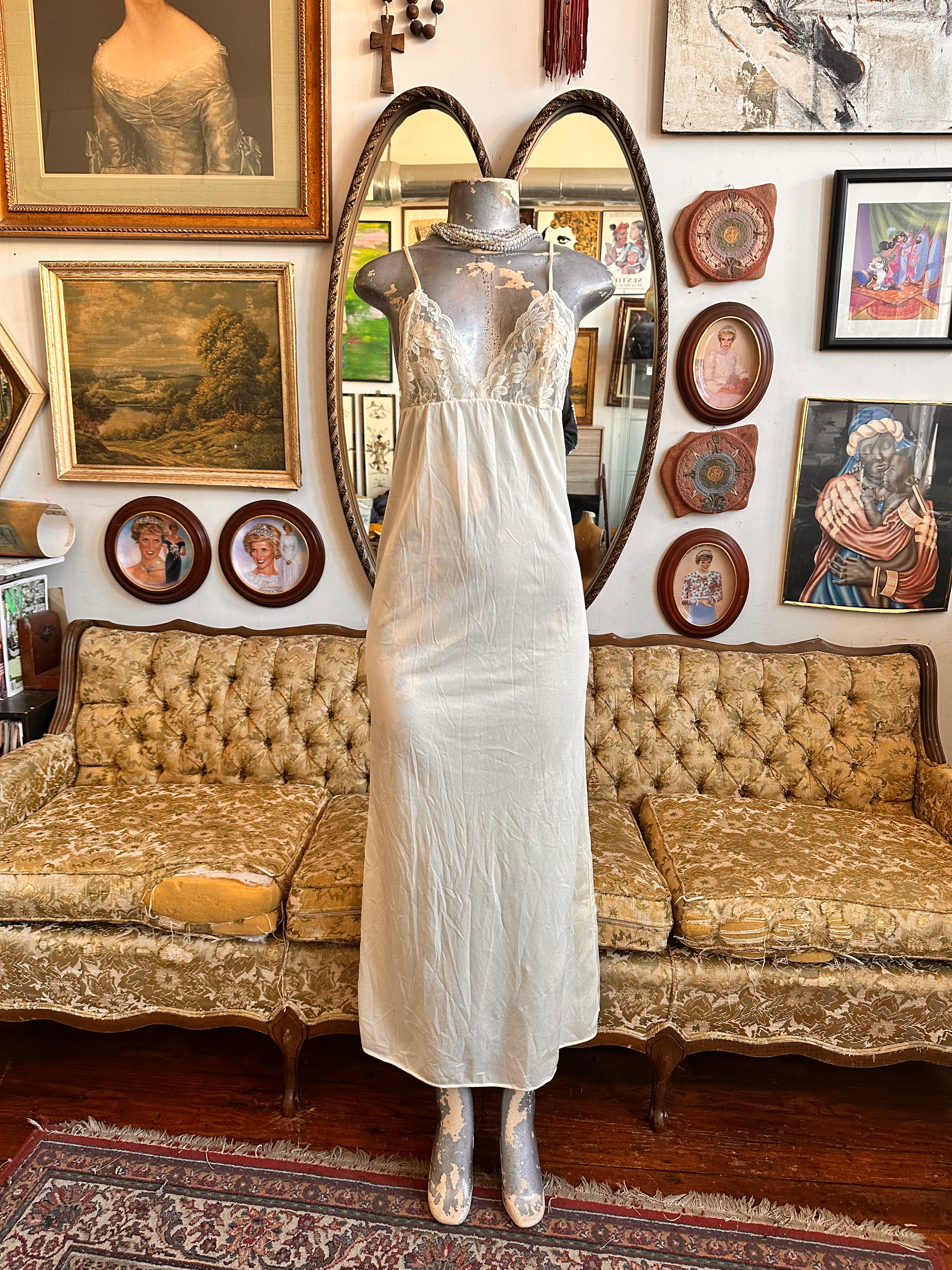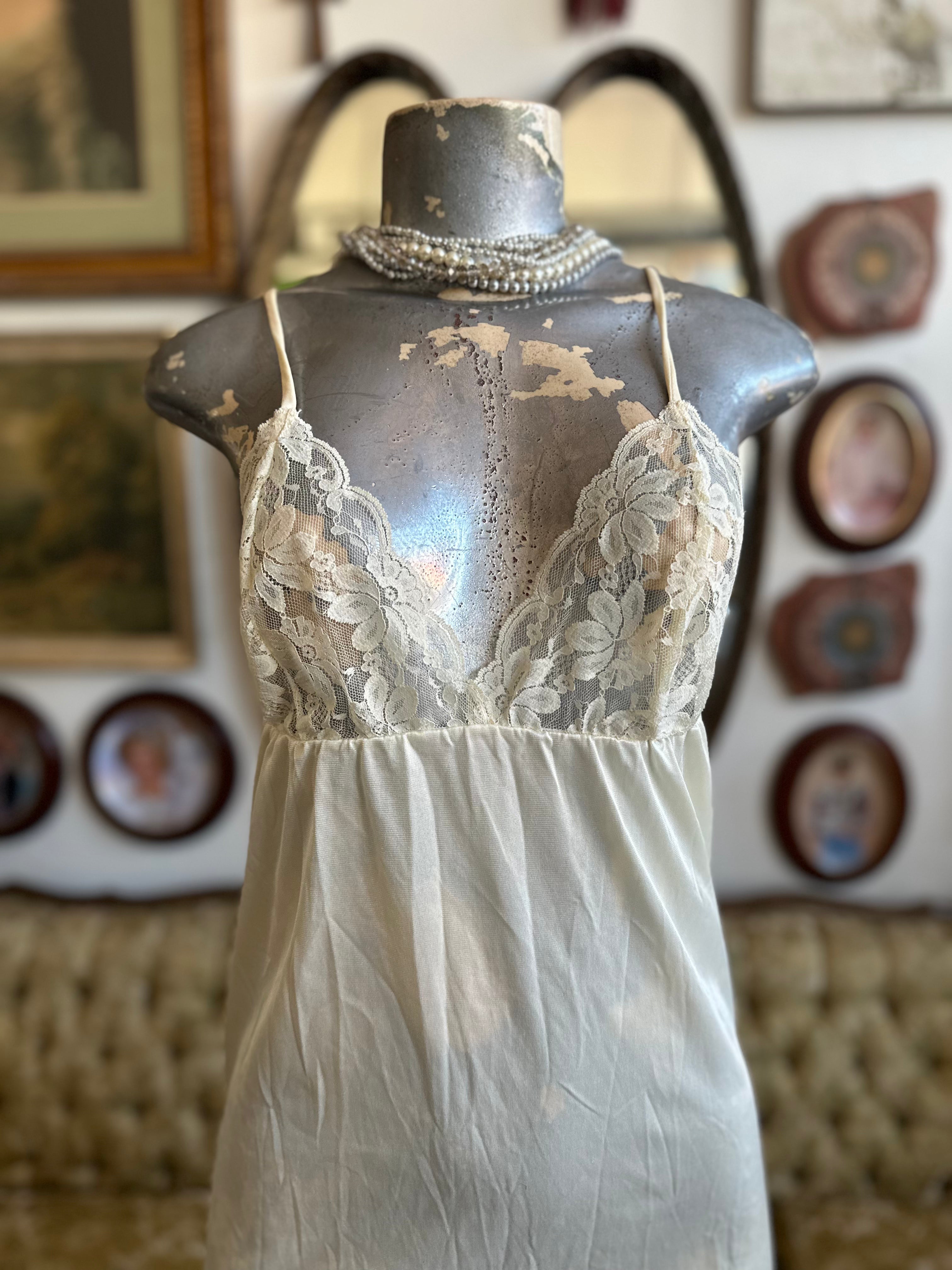 Description: Vintage Cream Lace Slip Dress, Union Made