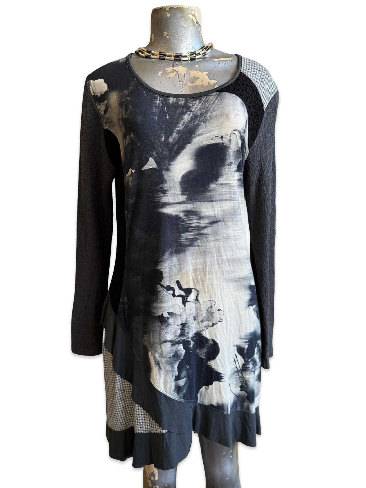 Description: Y2K Grunge Patchwork Mini Dress. Sold AS-is (discoloration)