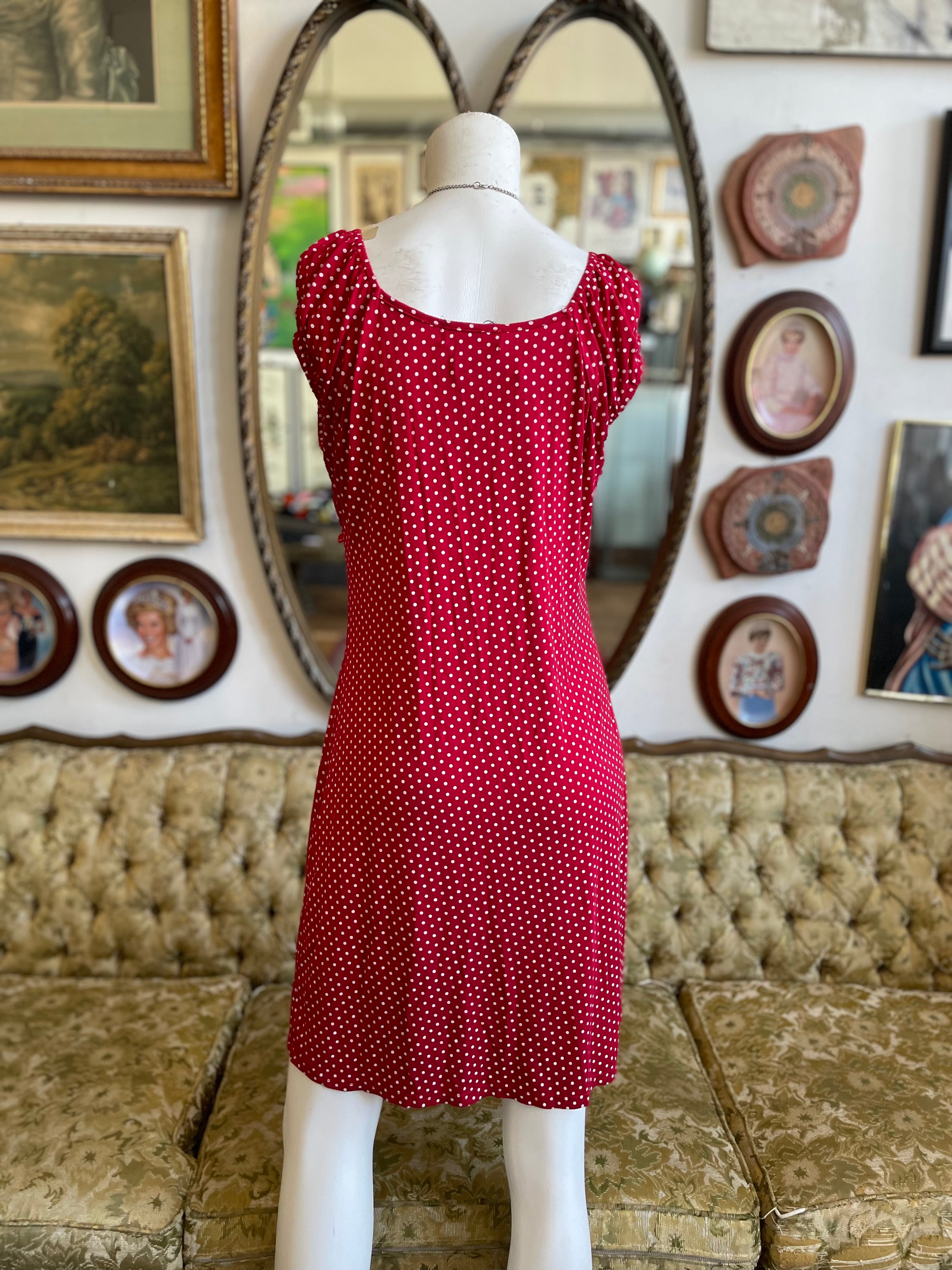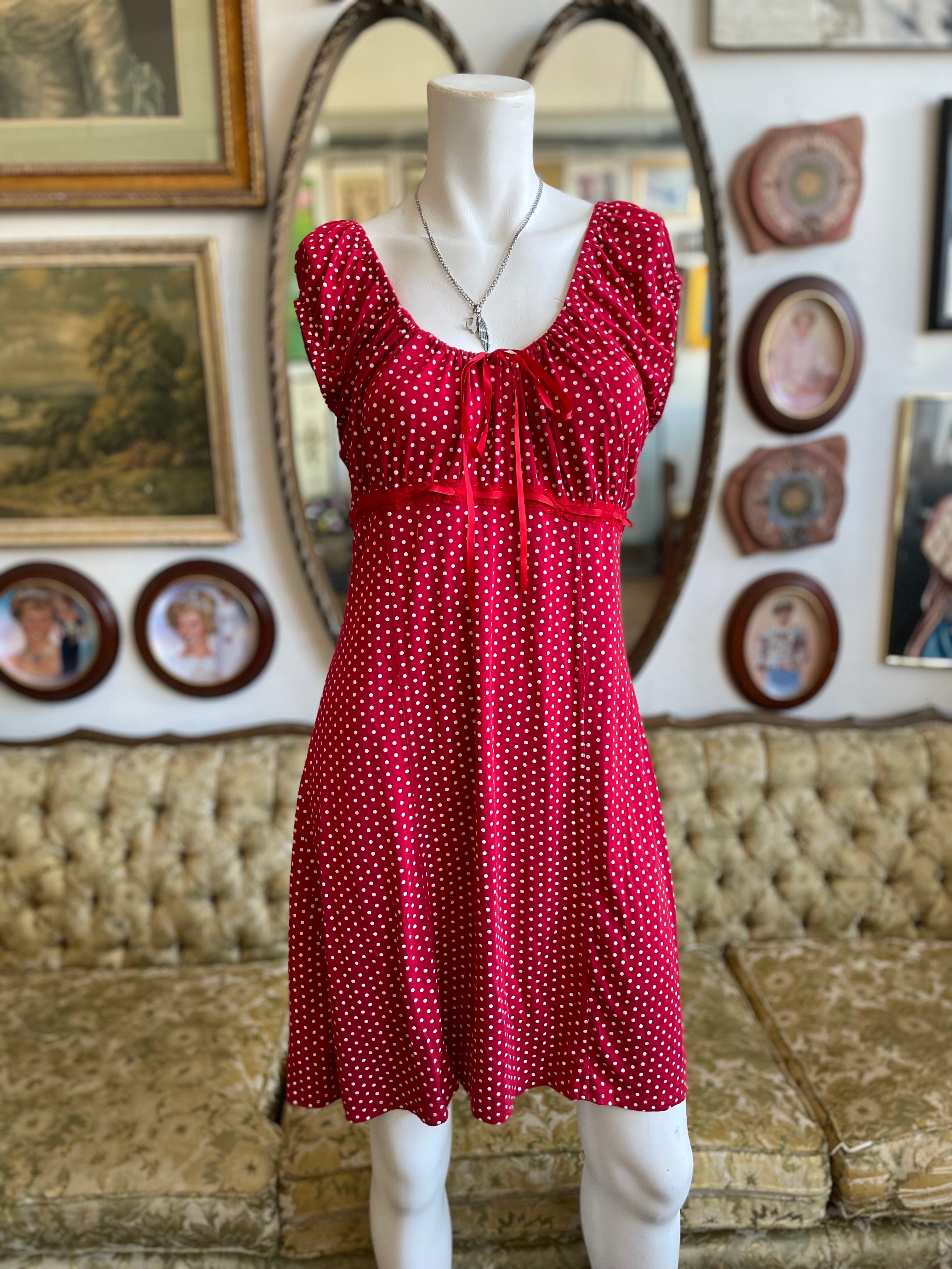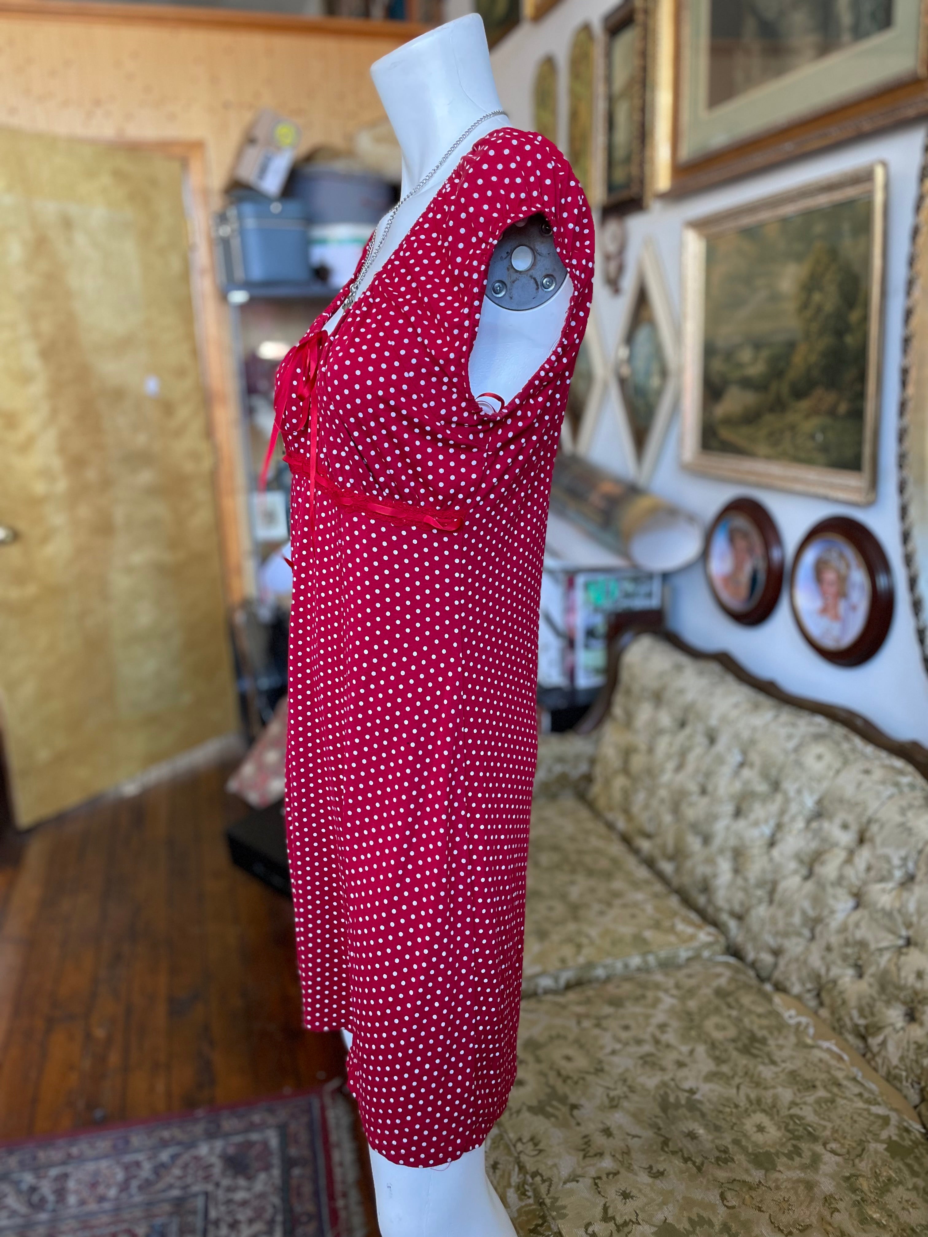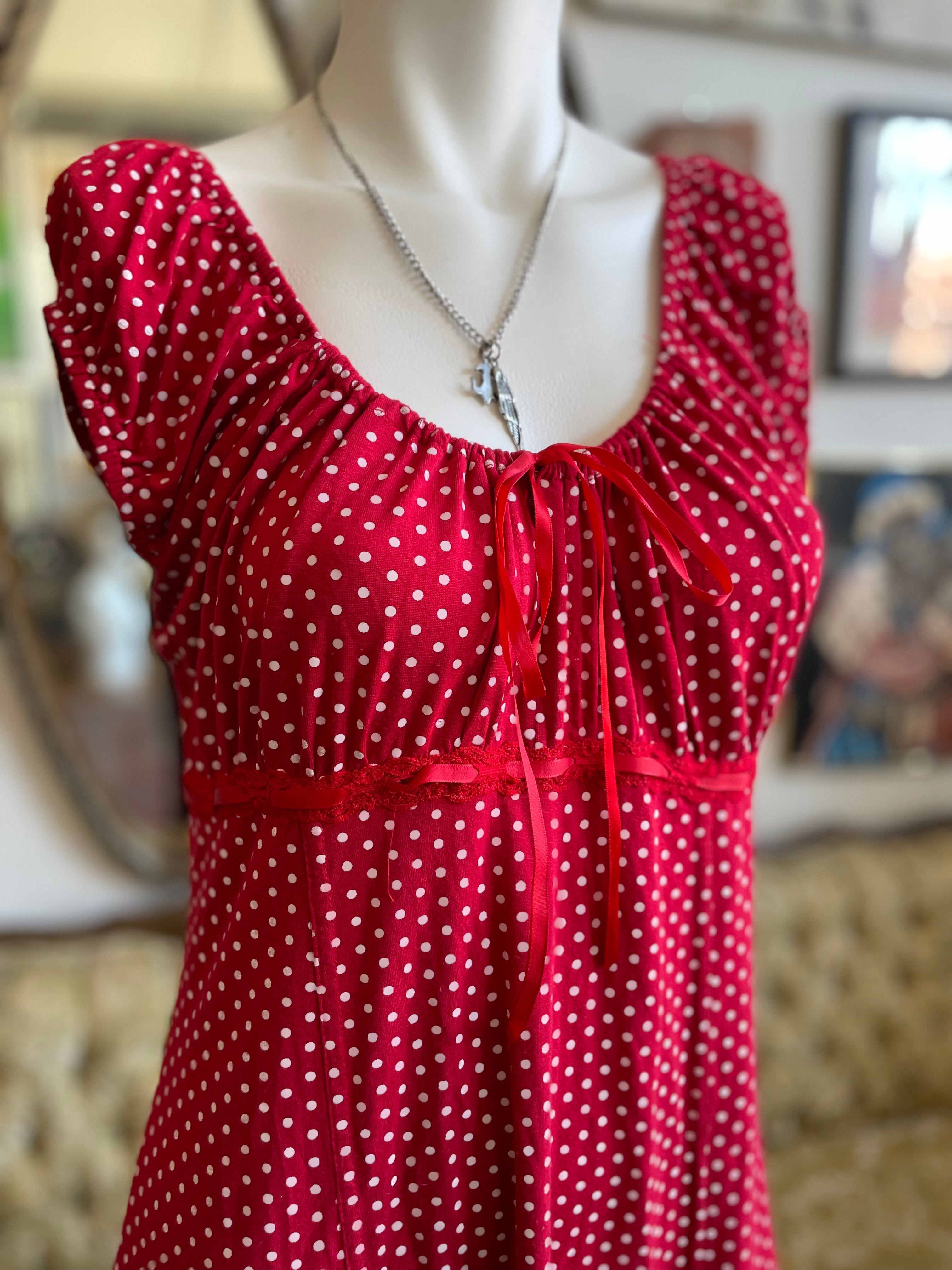 2000s Red Babydoll Polka Dot Dress Size S