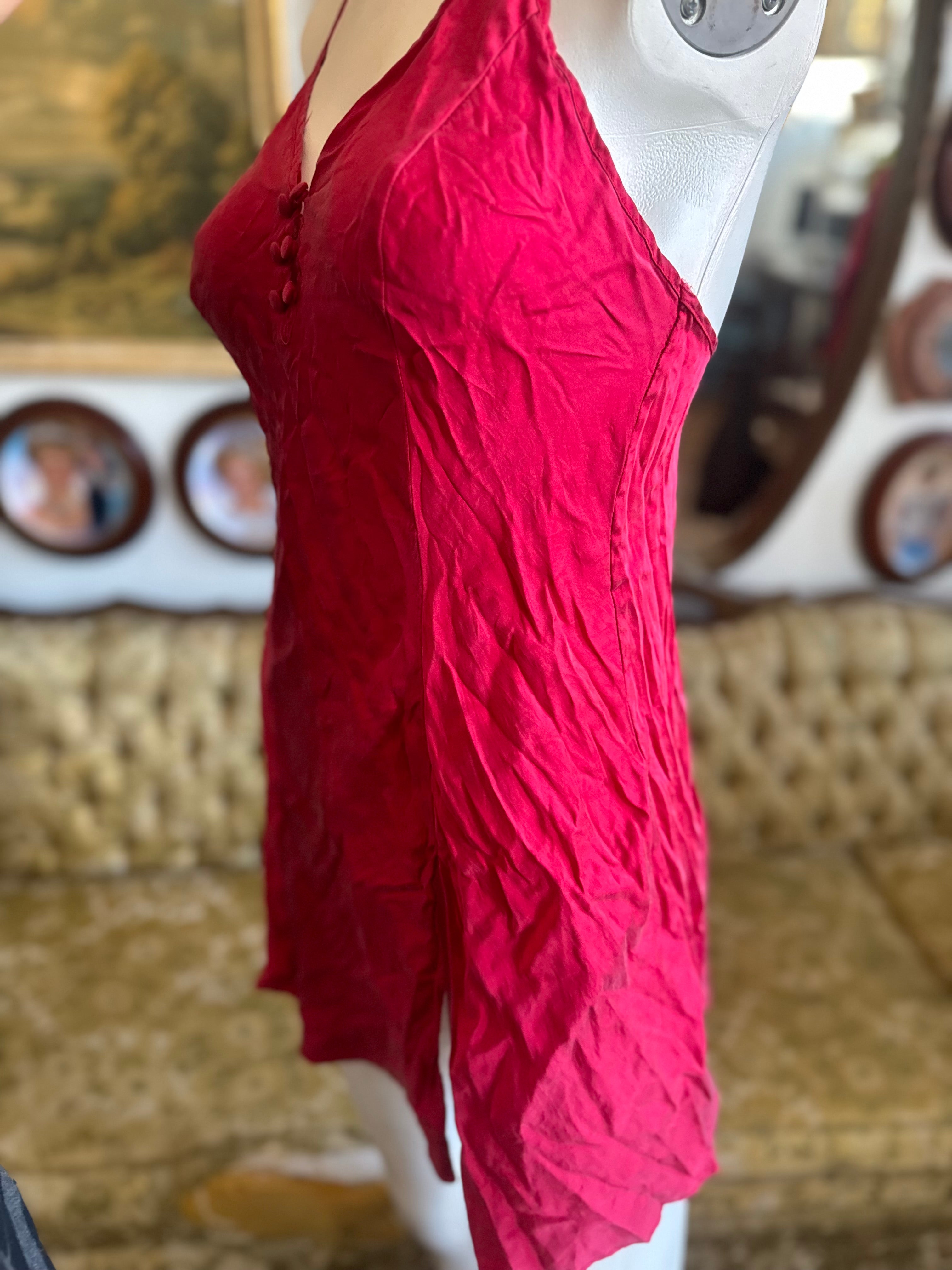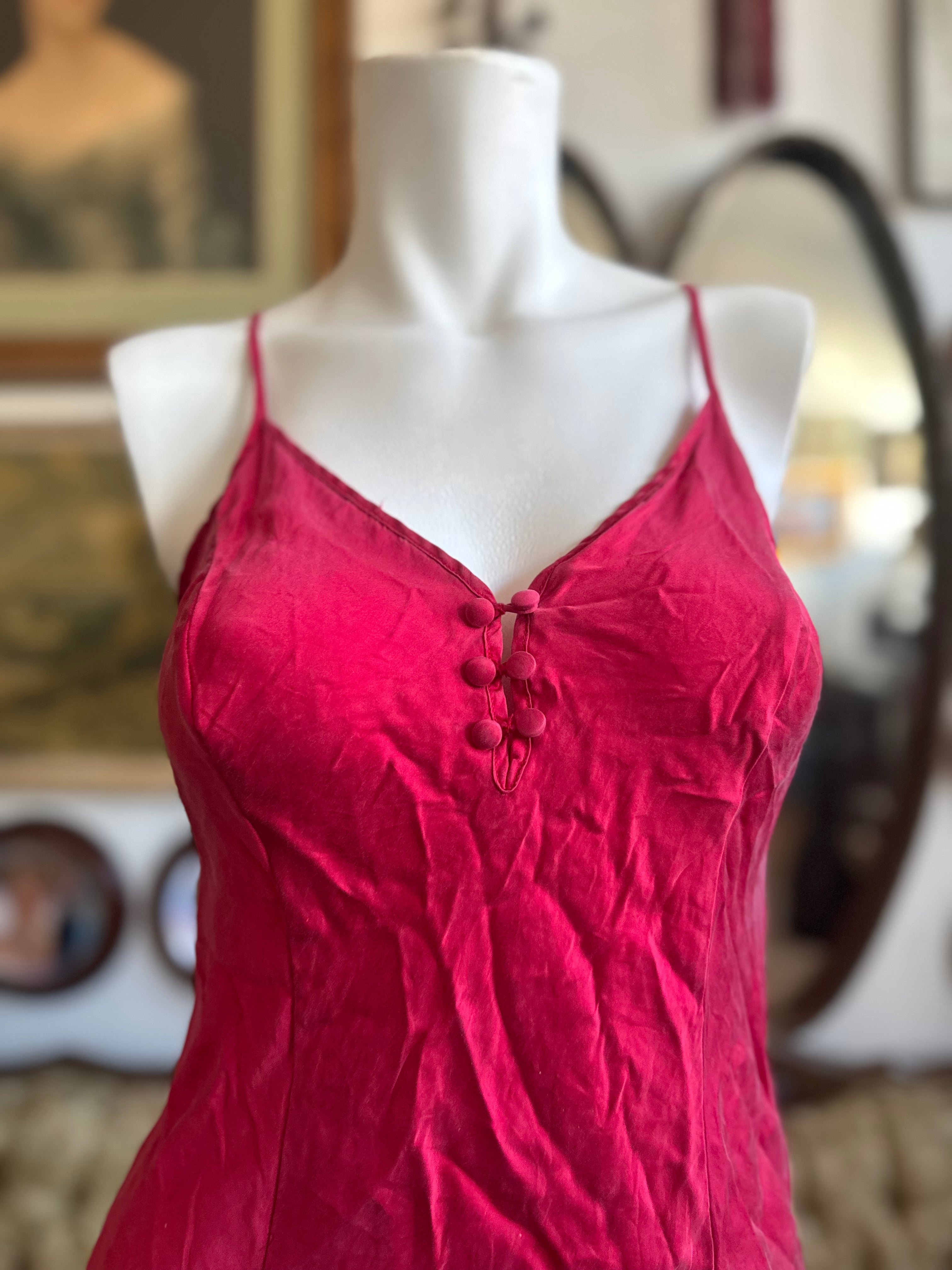 Vintage 80s Victoria's Secret Gold Label 100% Silk Red Slip Dress Size S