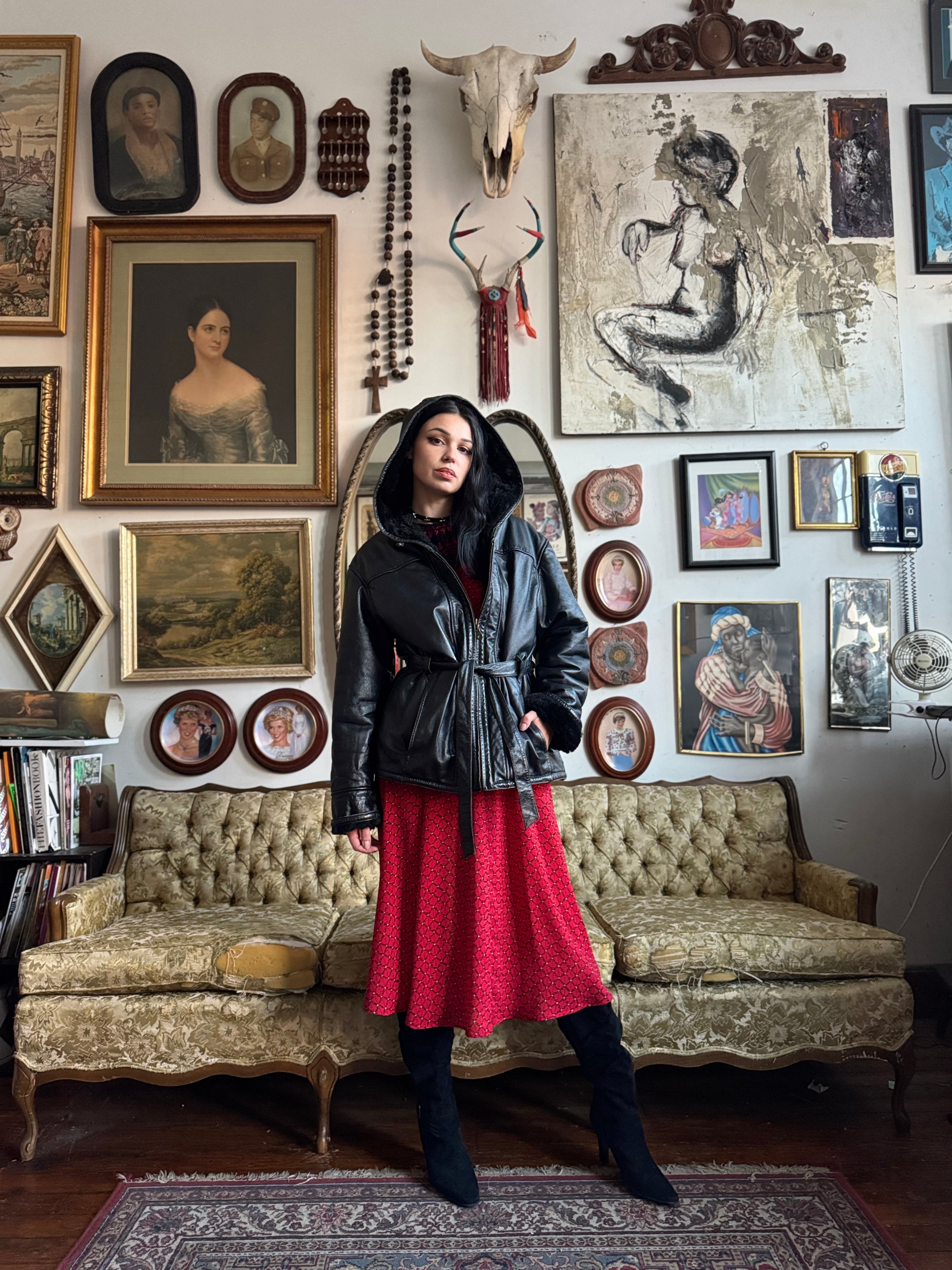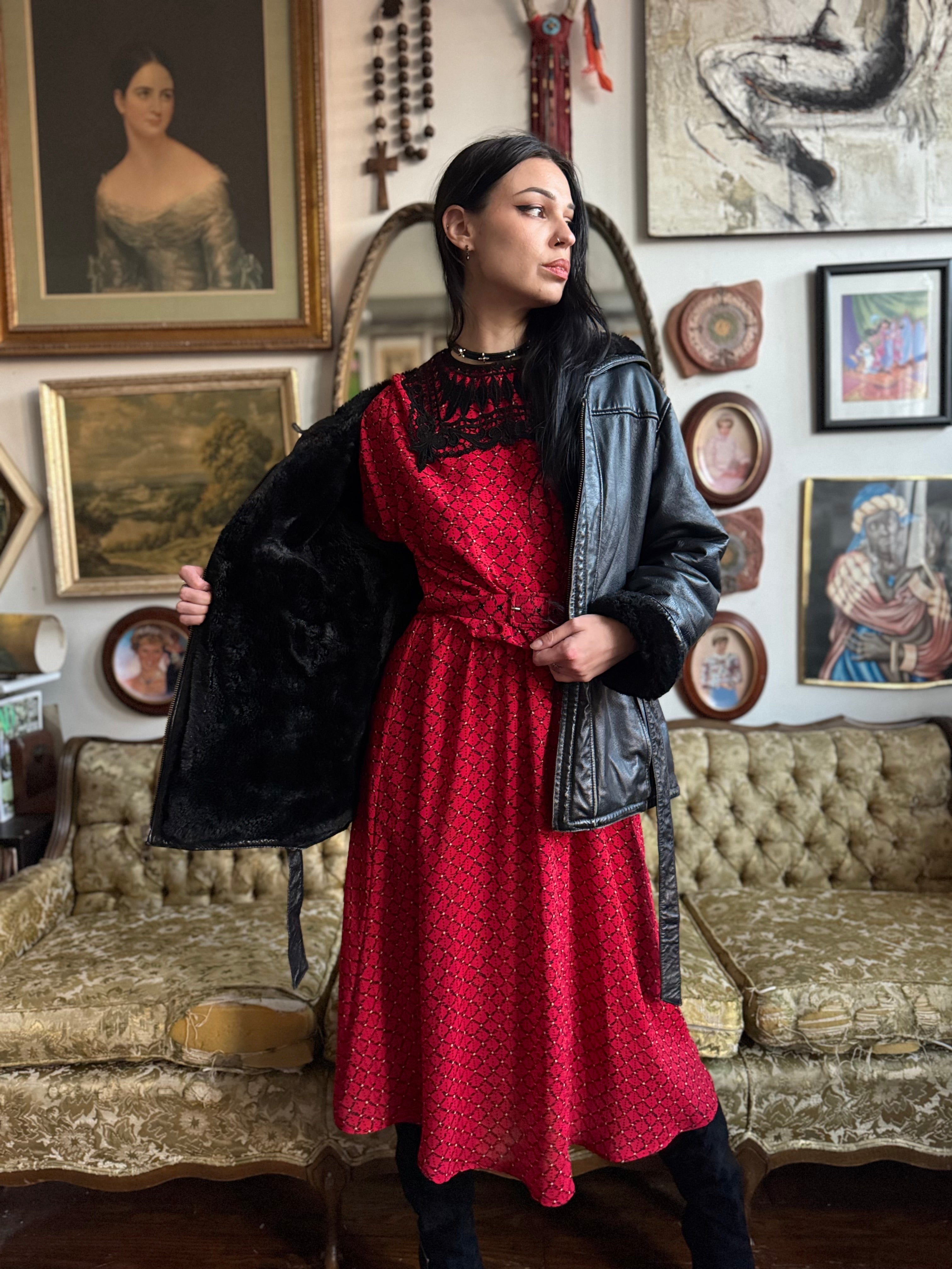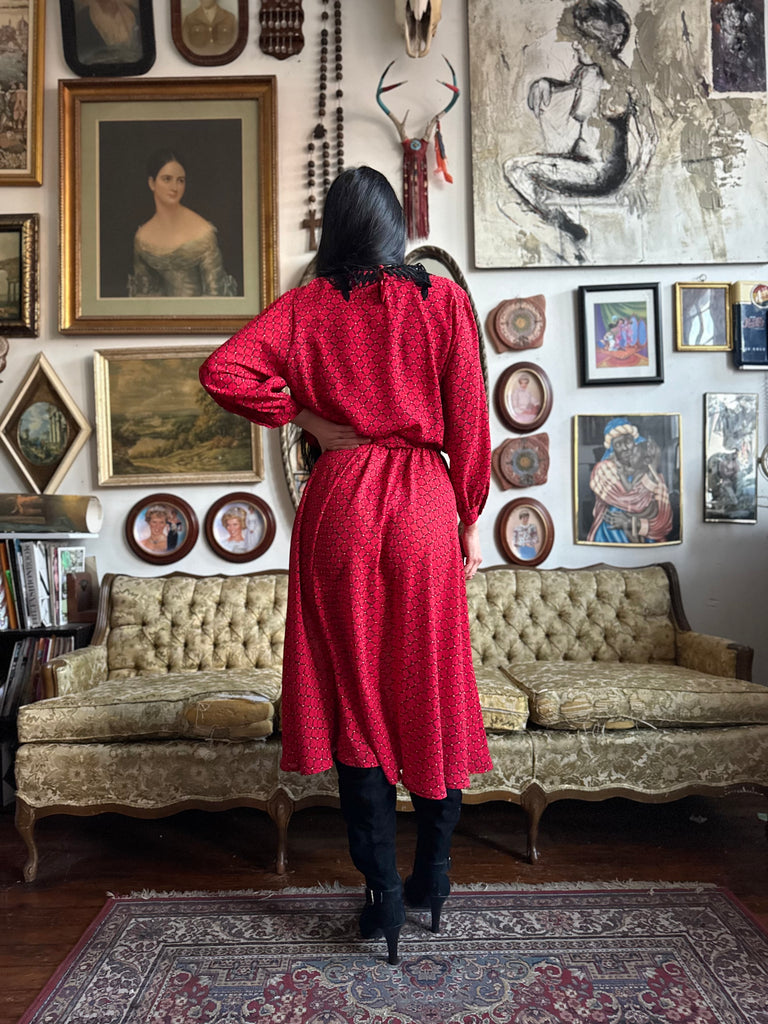 Saint of Goodwill Vintage 70s Red Prairie Dress w Lace Collar & Matching Belt Size 8