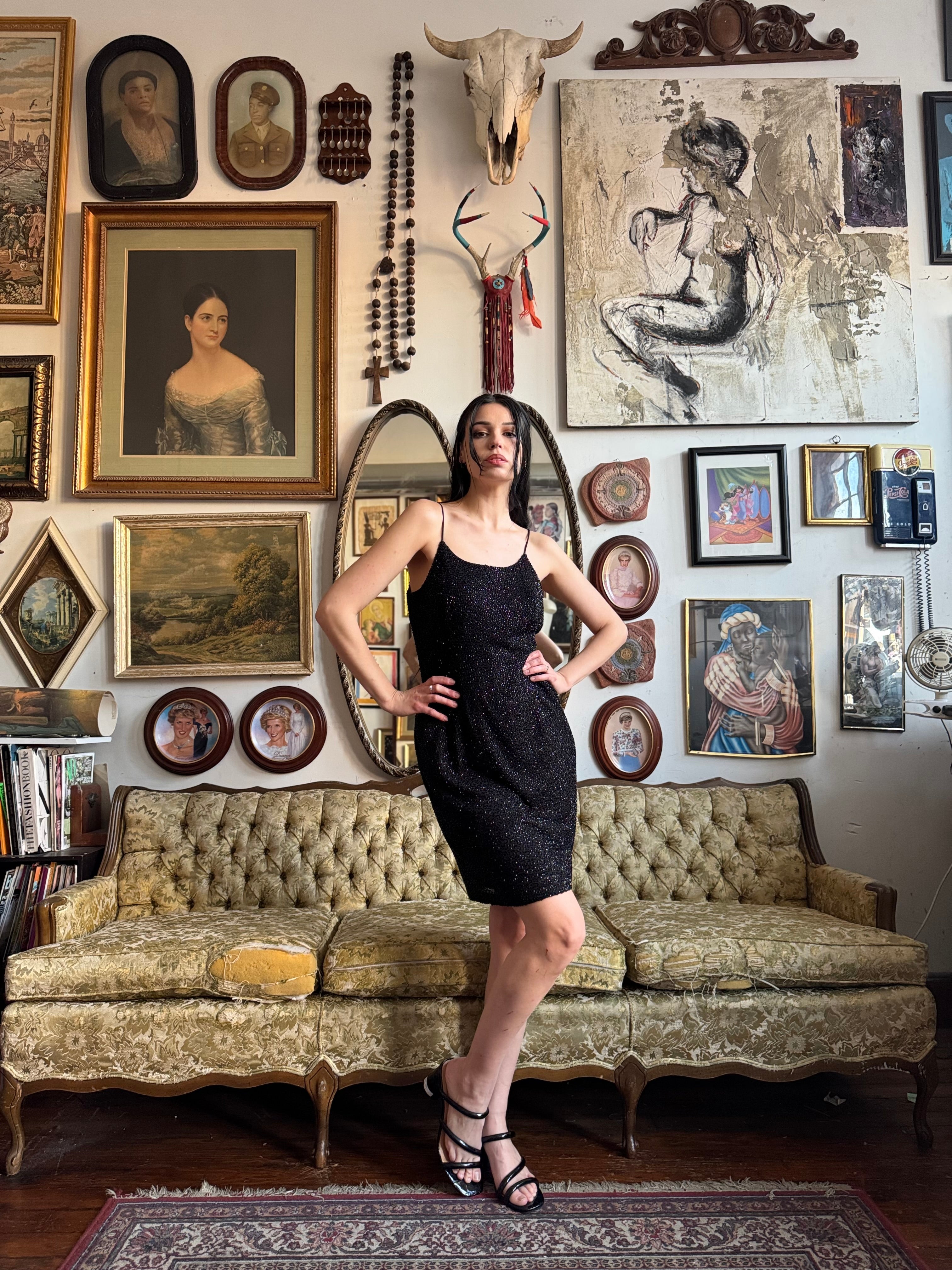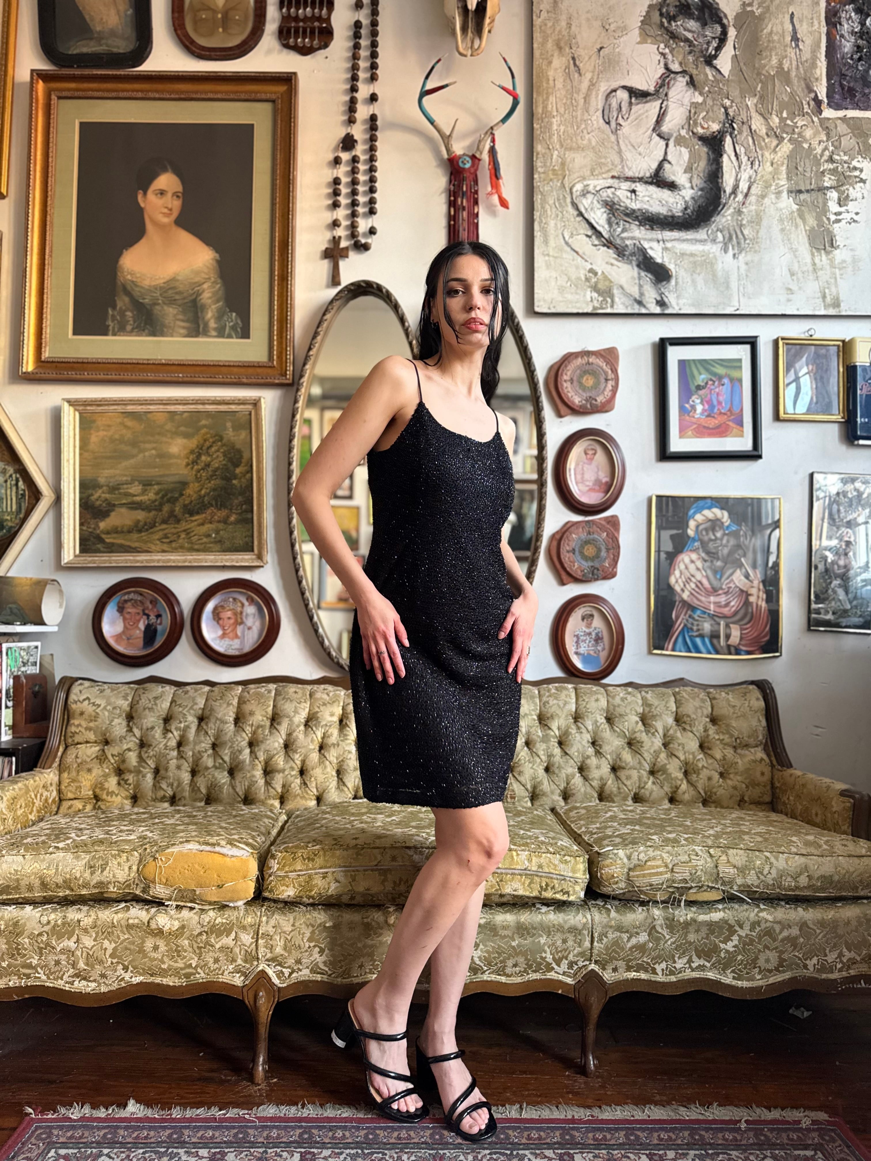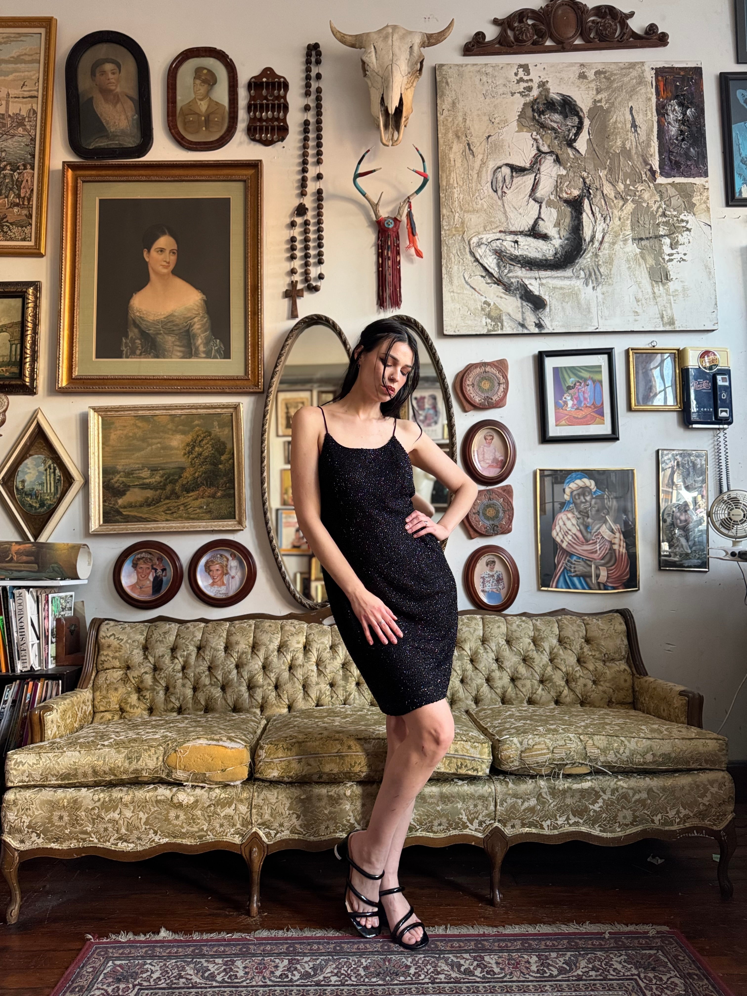 Cherry Cola Vintage 90s Marina Bresler Black Beaded Mini Dress Size 8