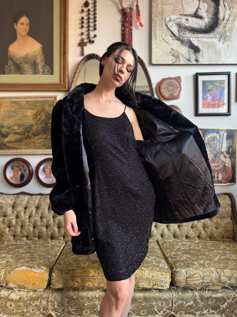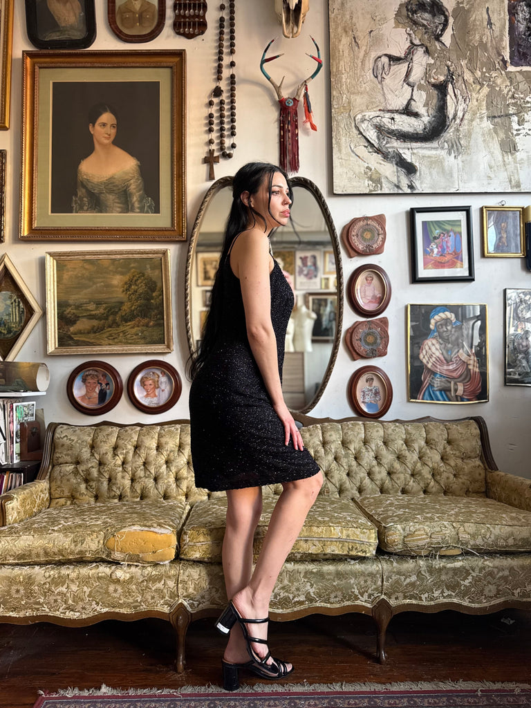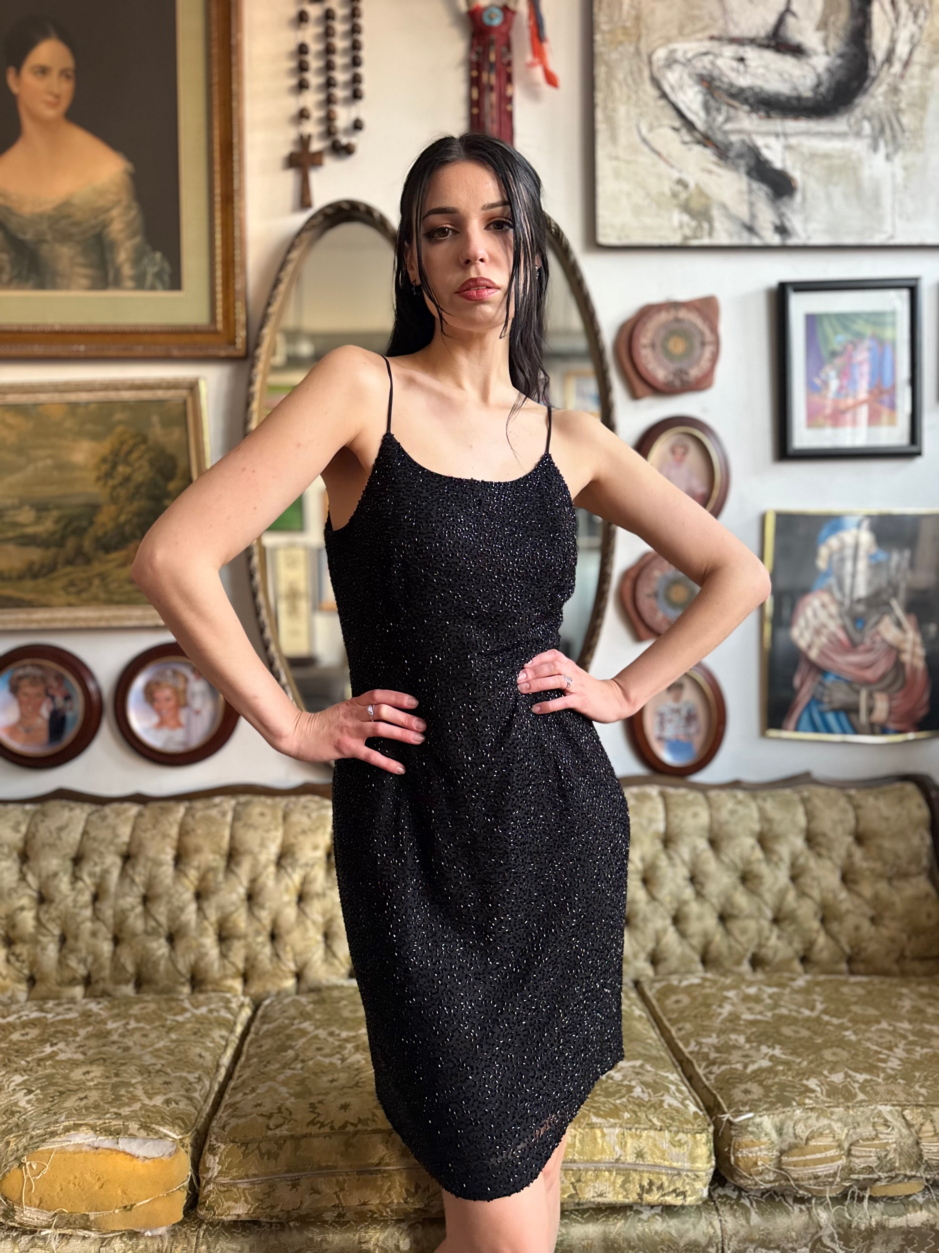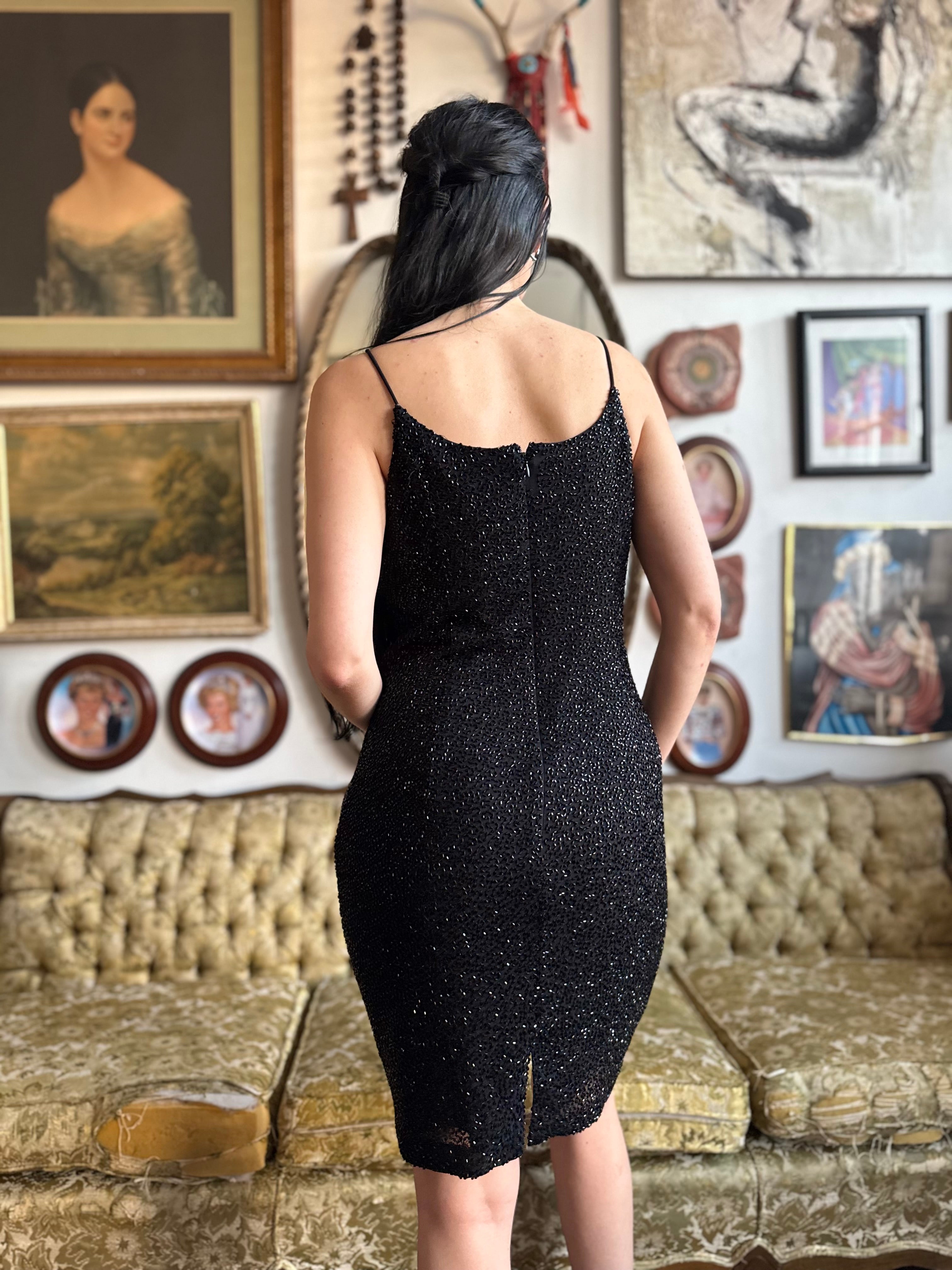 Vintage 90s Marina Bresler Black Beaded Mini Dress Size 8