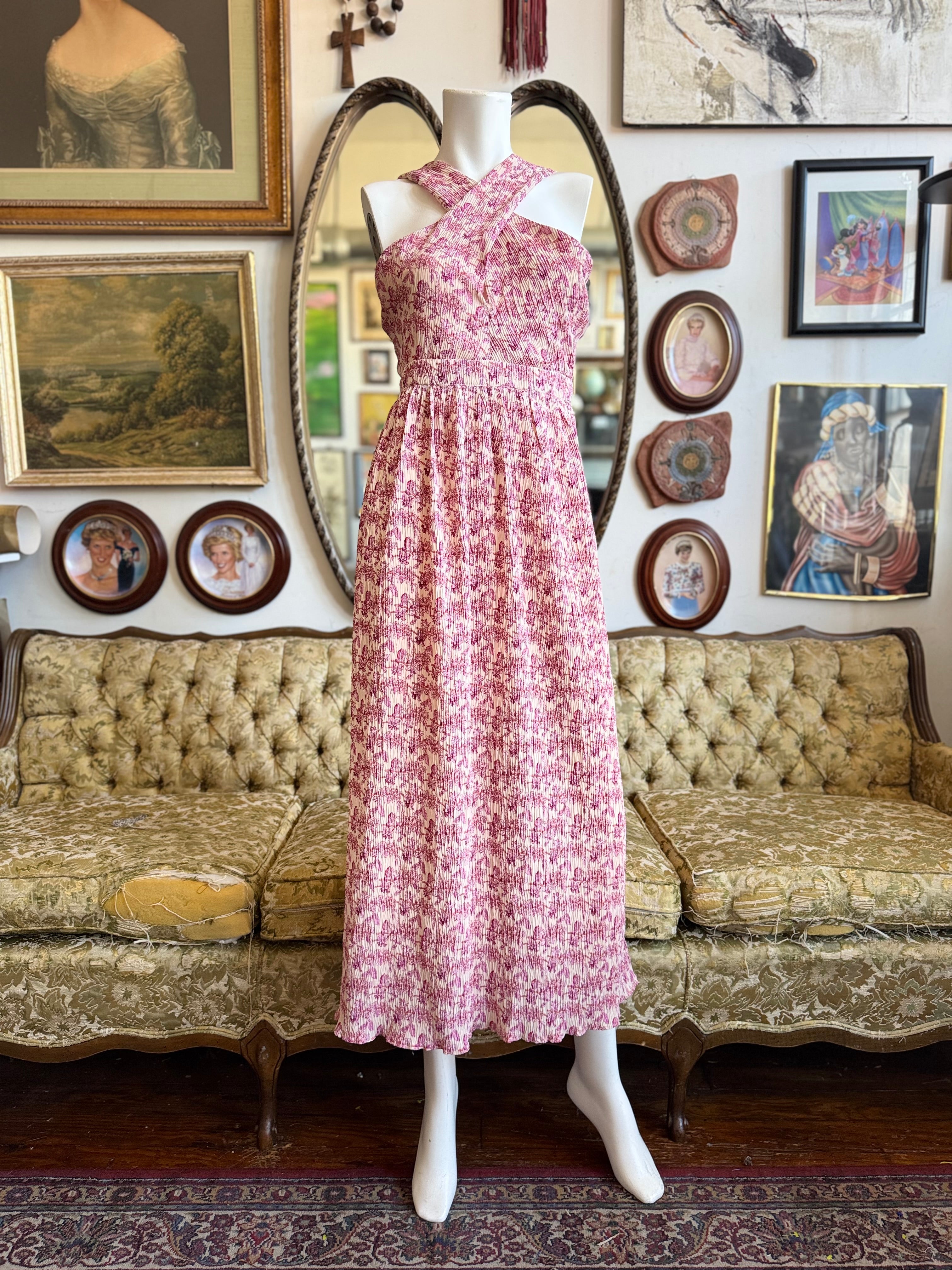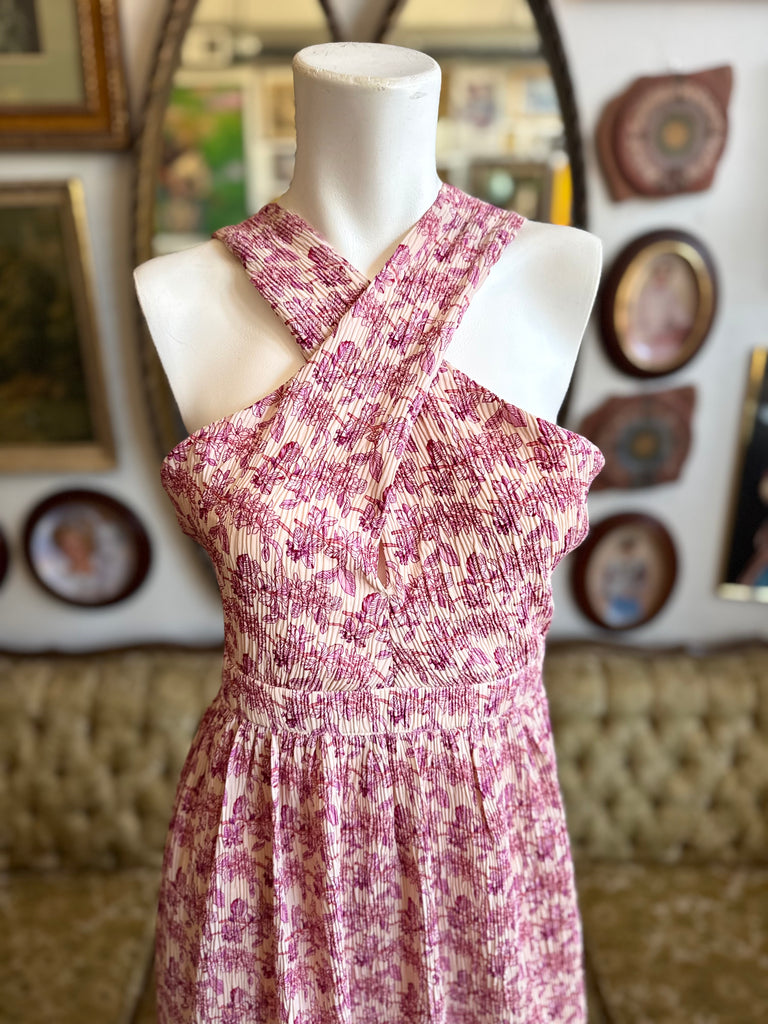 TCEC Pink Floral Pleated Dress Size Medium