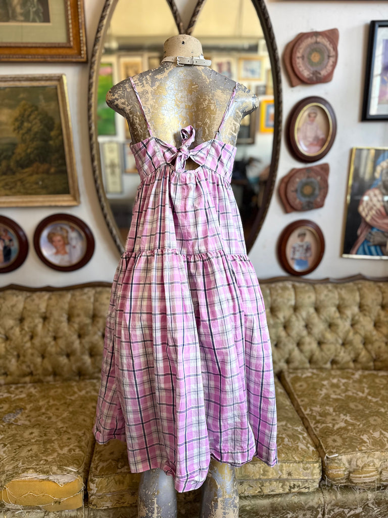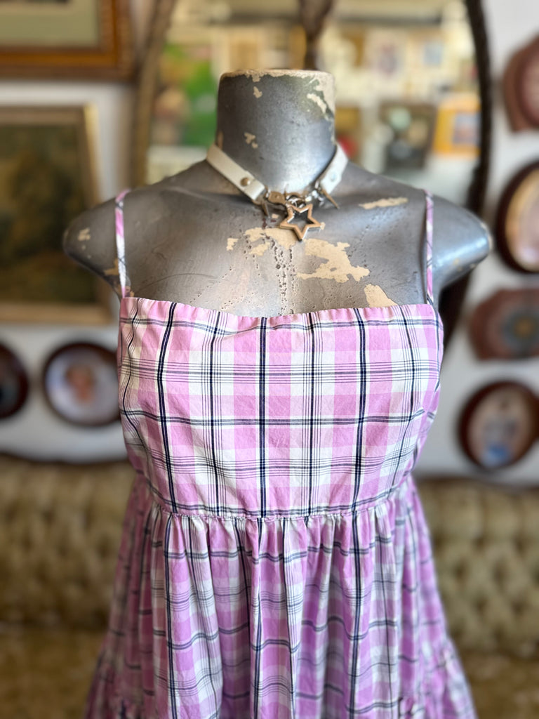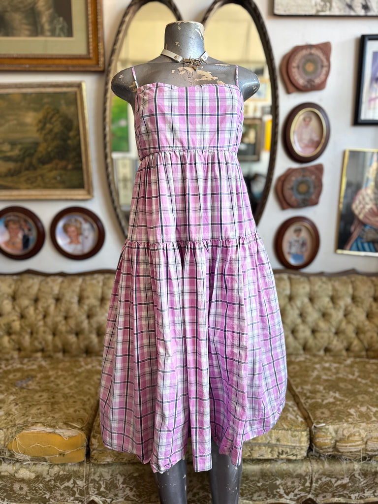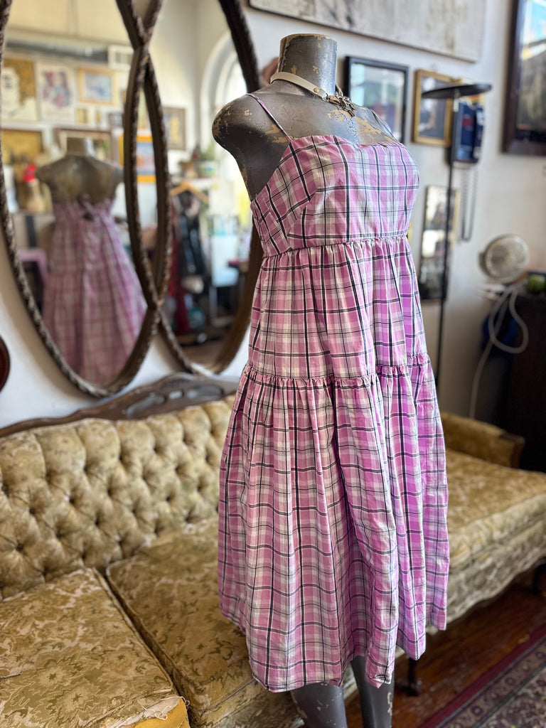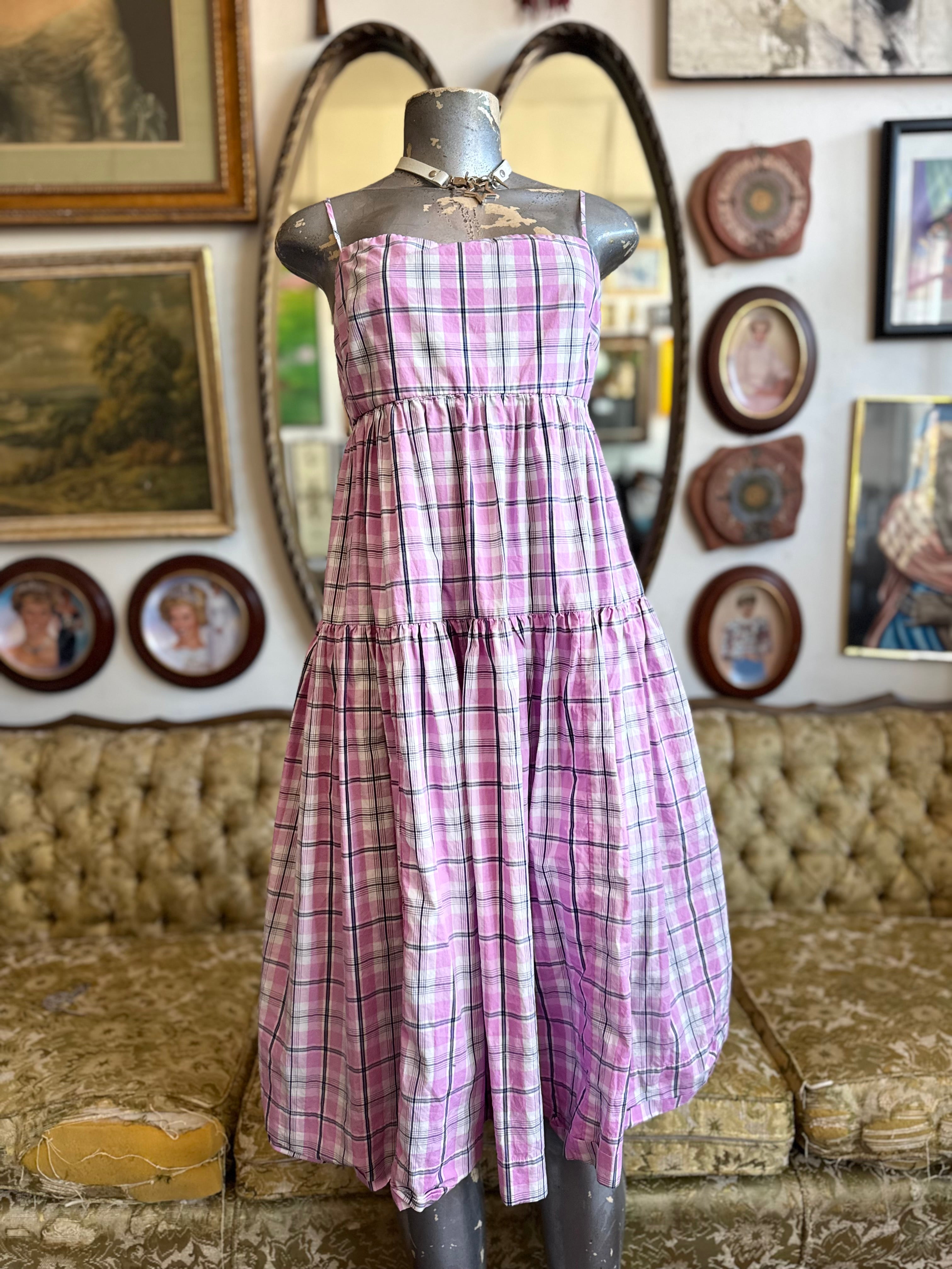 J Crew Pink Windowpane Print Tired Dress Size 4/ Small