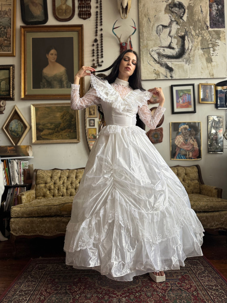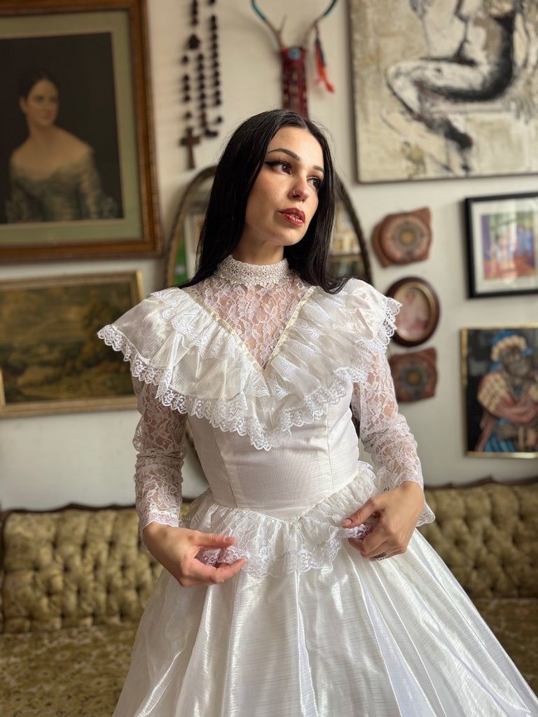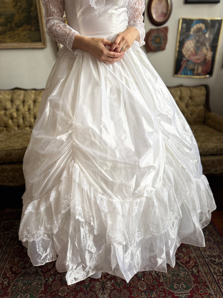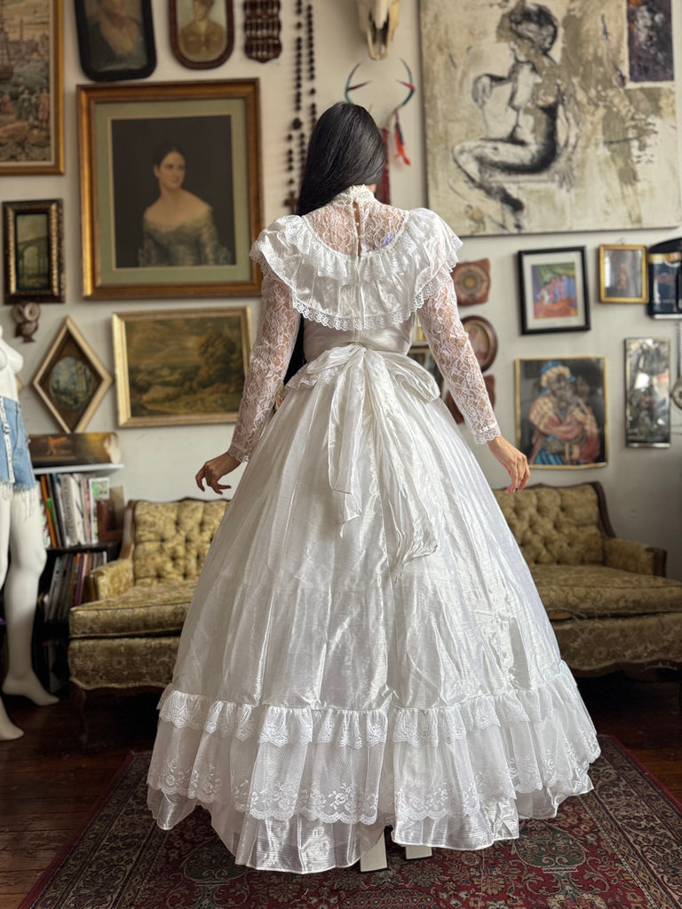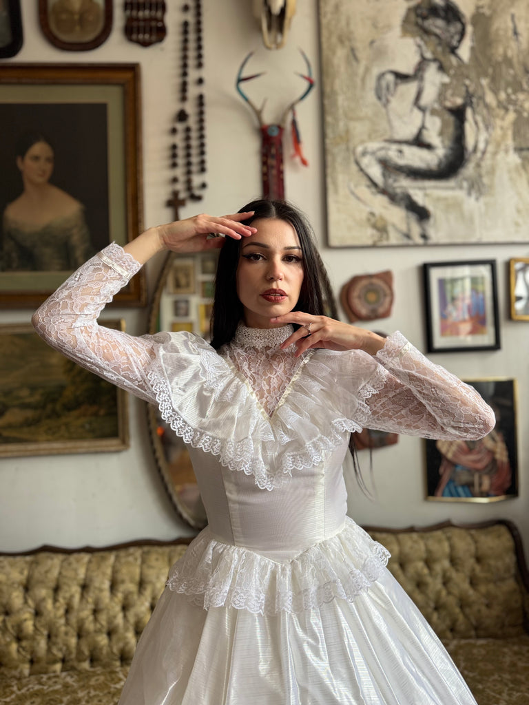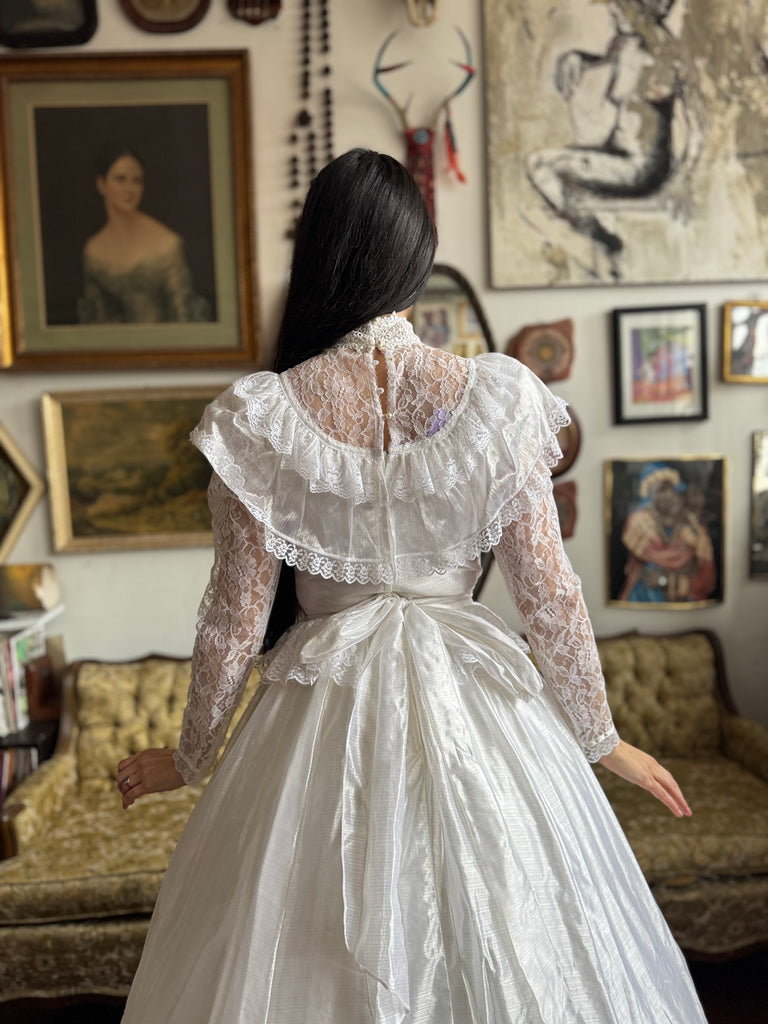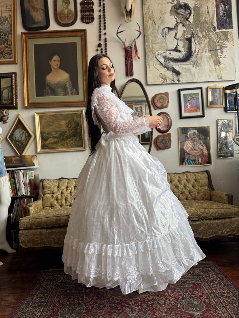 80's Jessica McClintock Gunne Sax White Eyelet Lace Romantic Wedding Dress