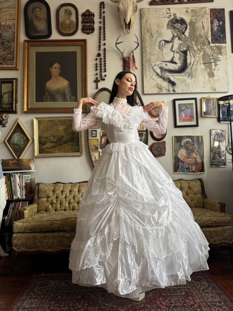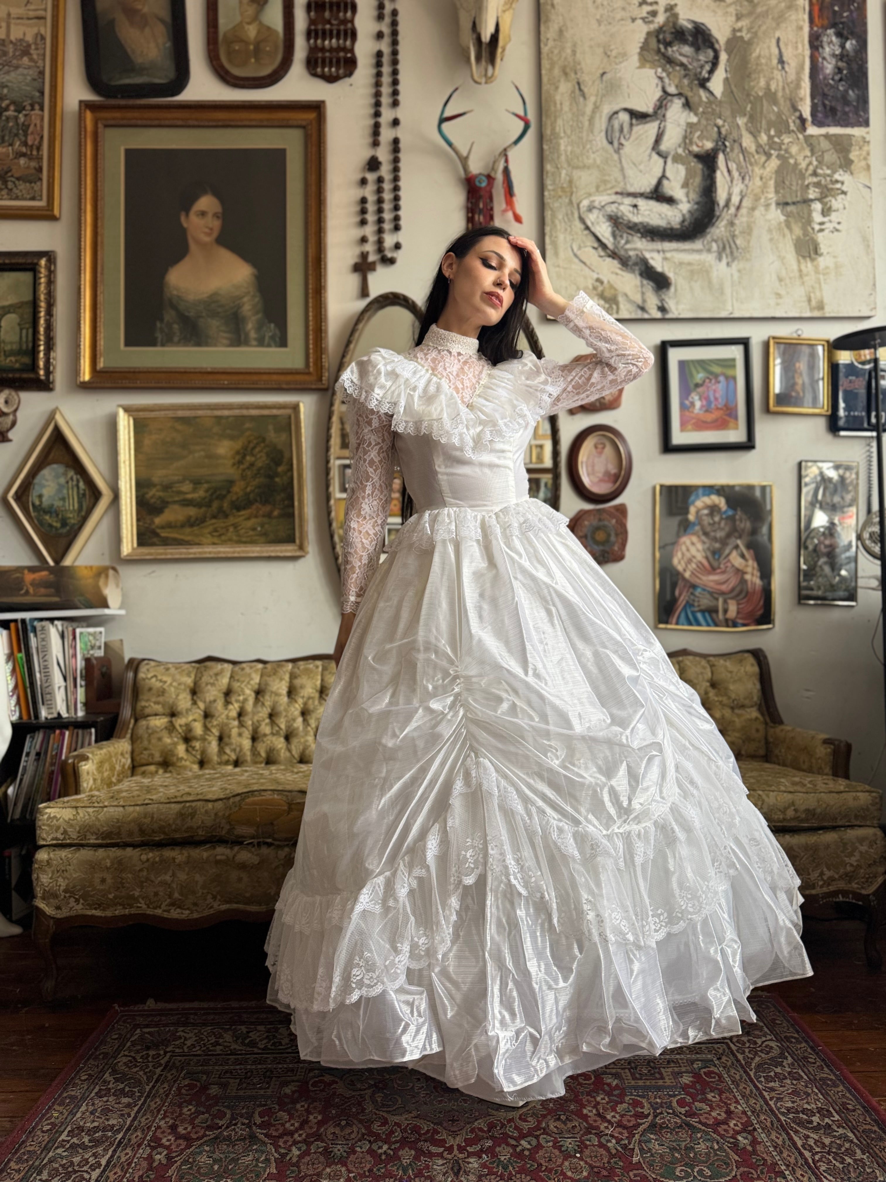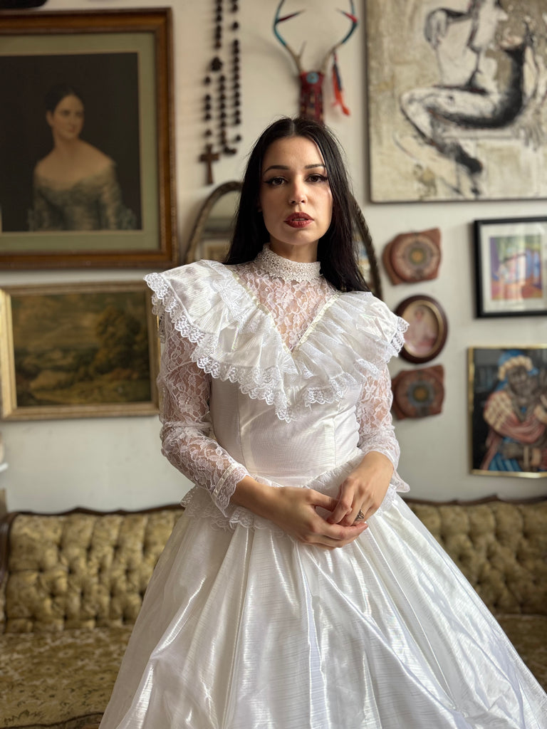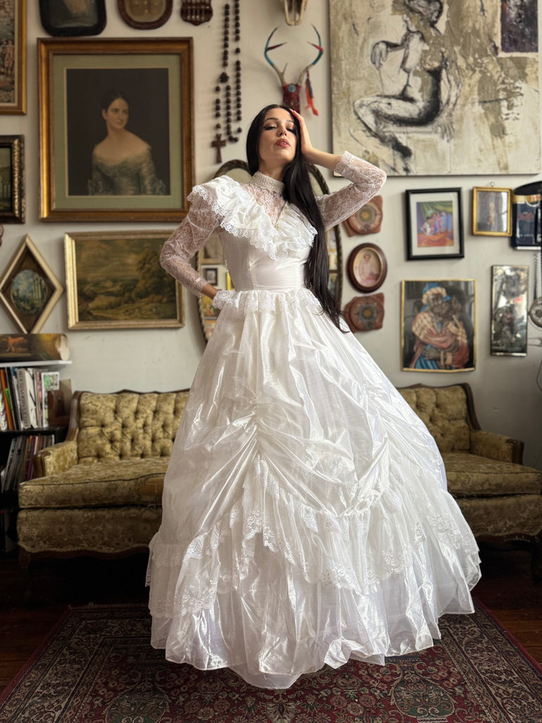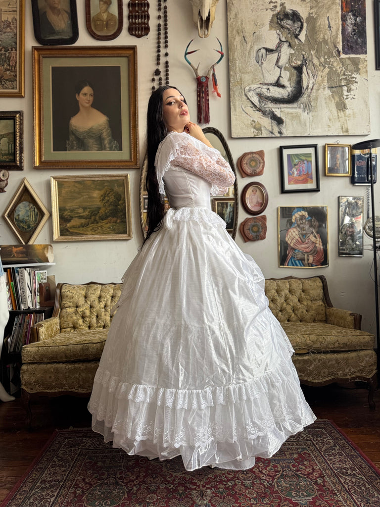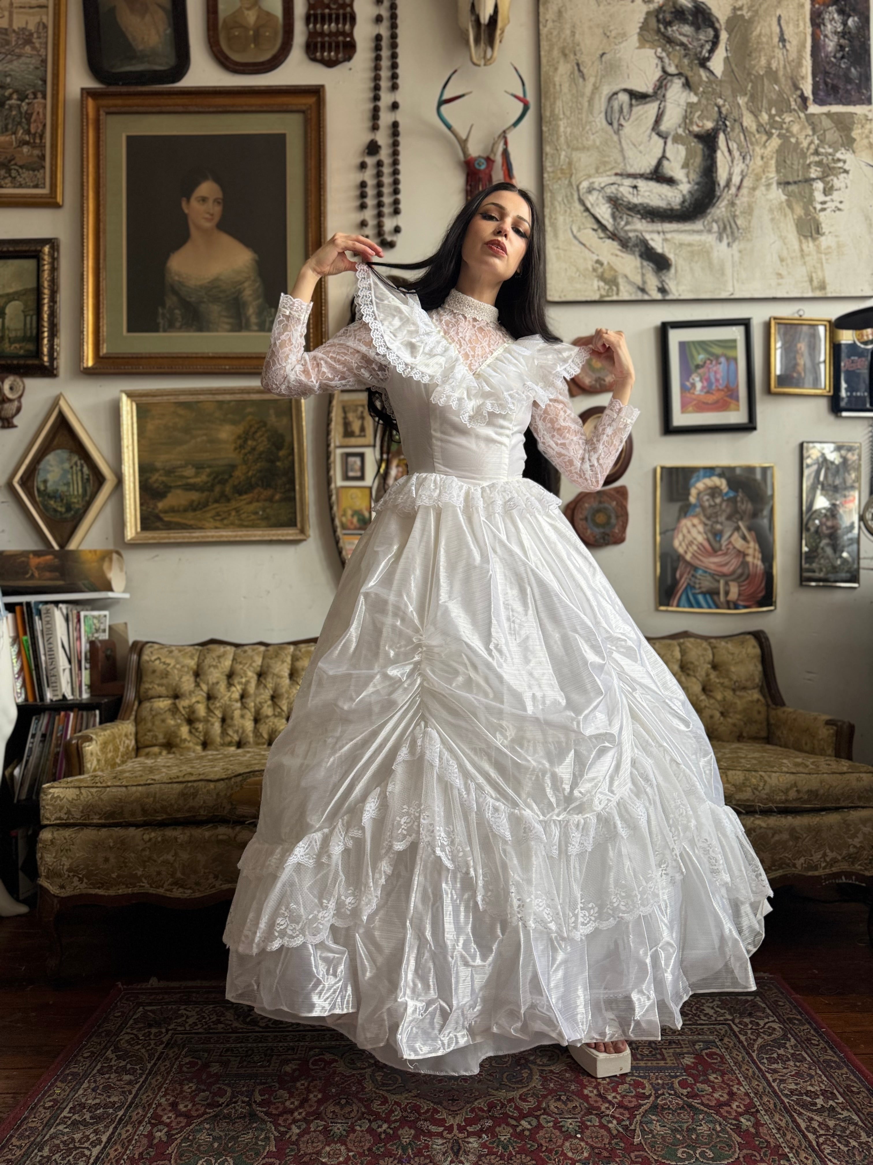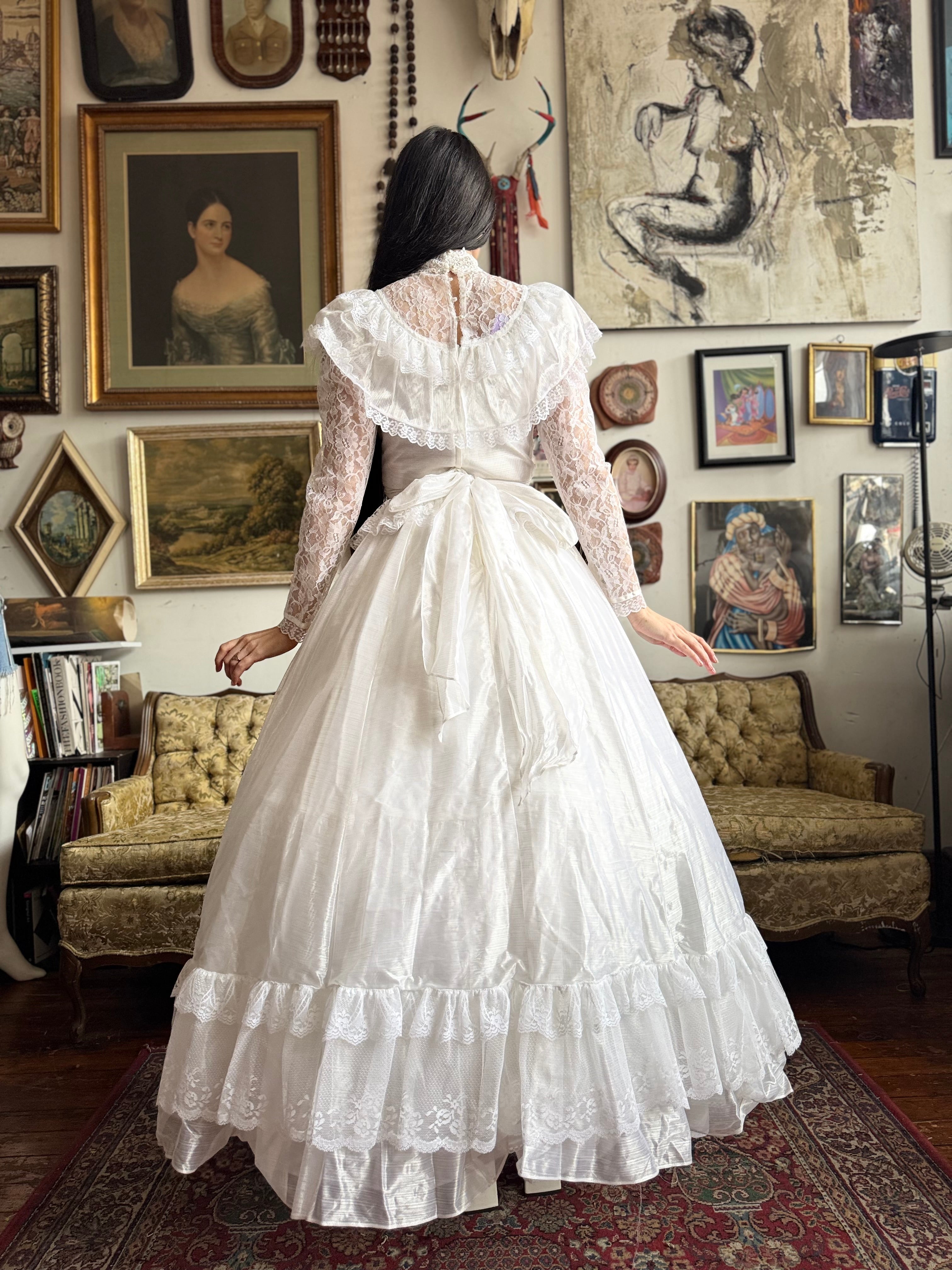 80's Jessica McClintock Gunne Sax White Eyelet Lace Romantic Wedding Dress