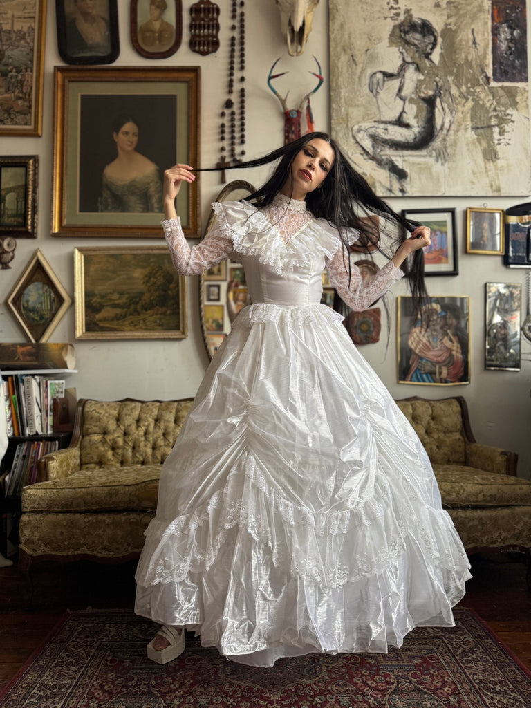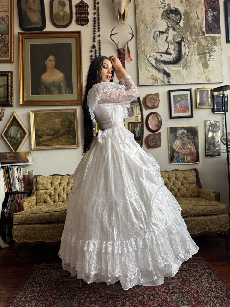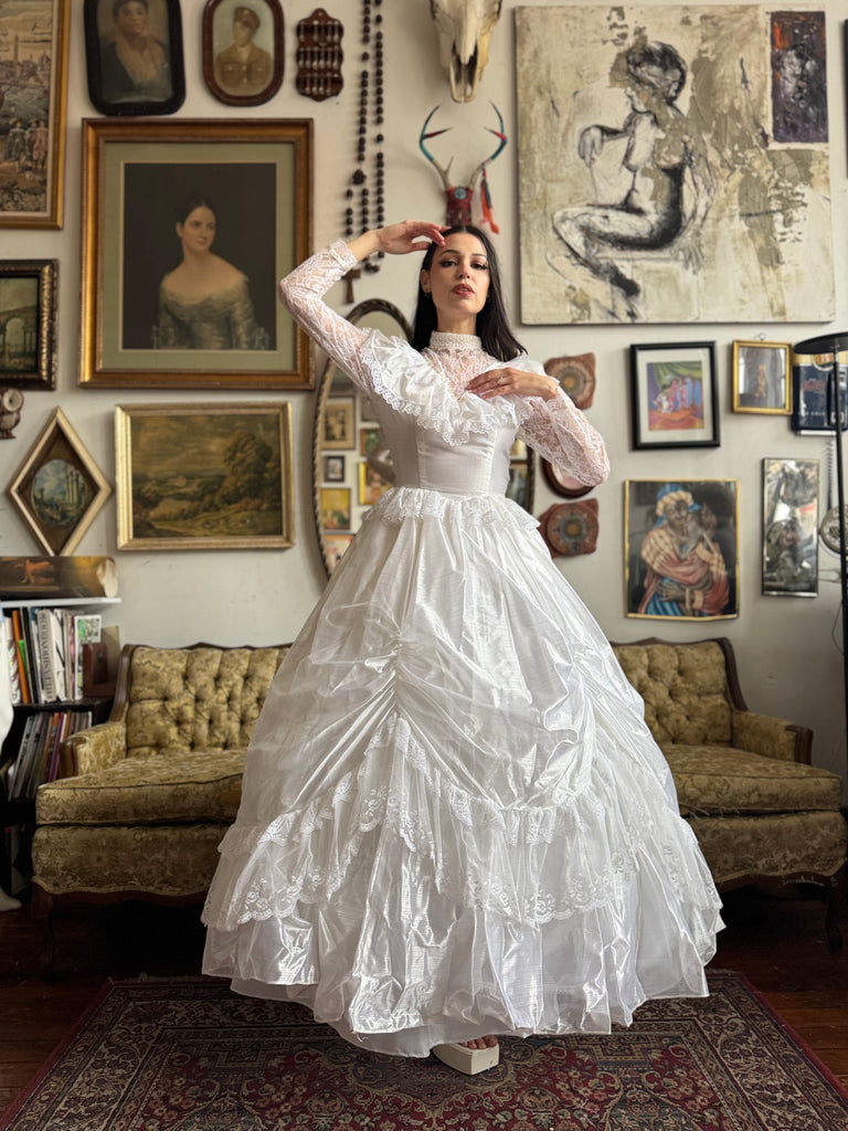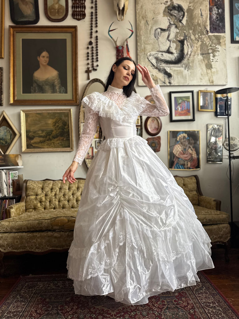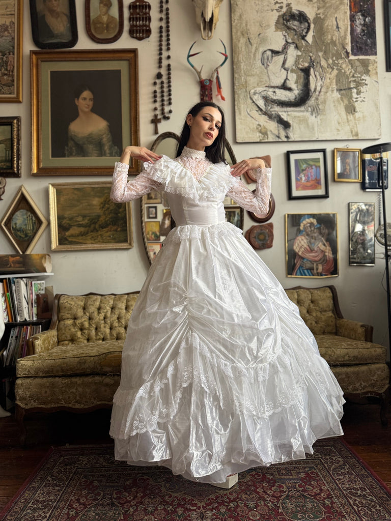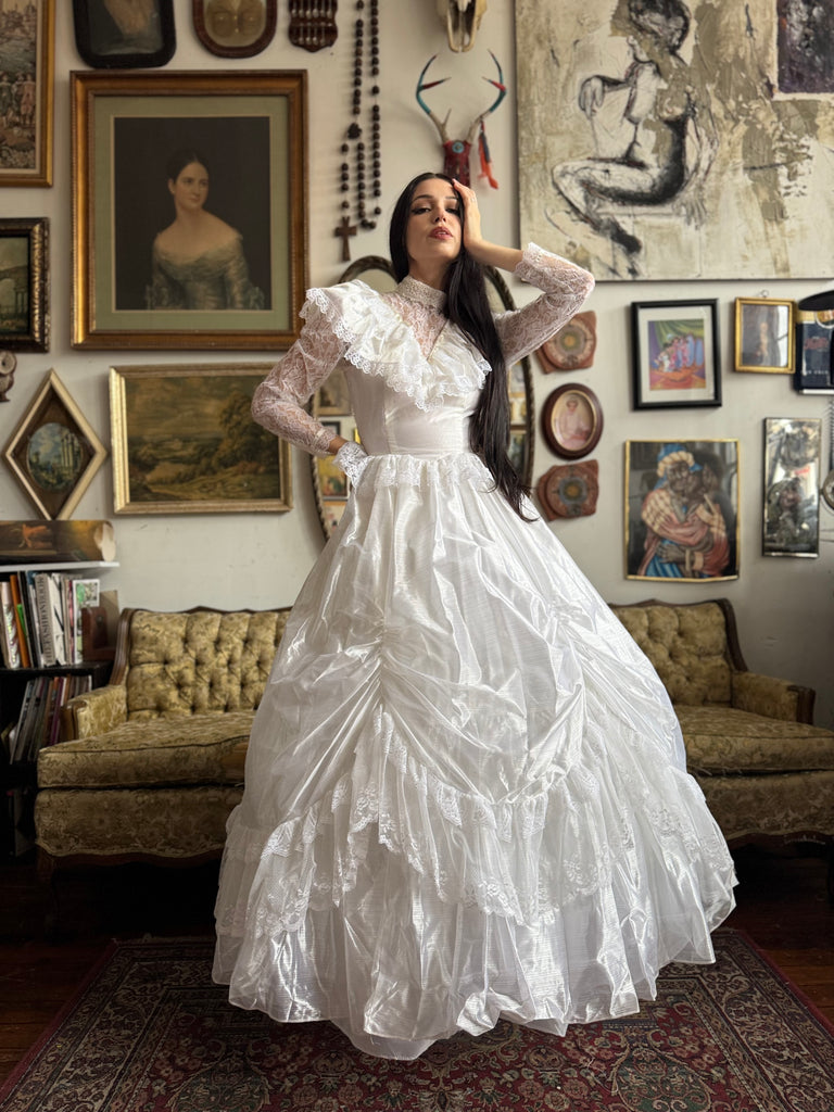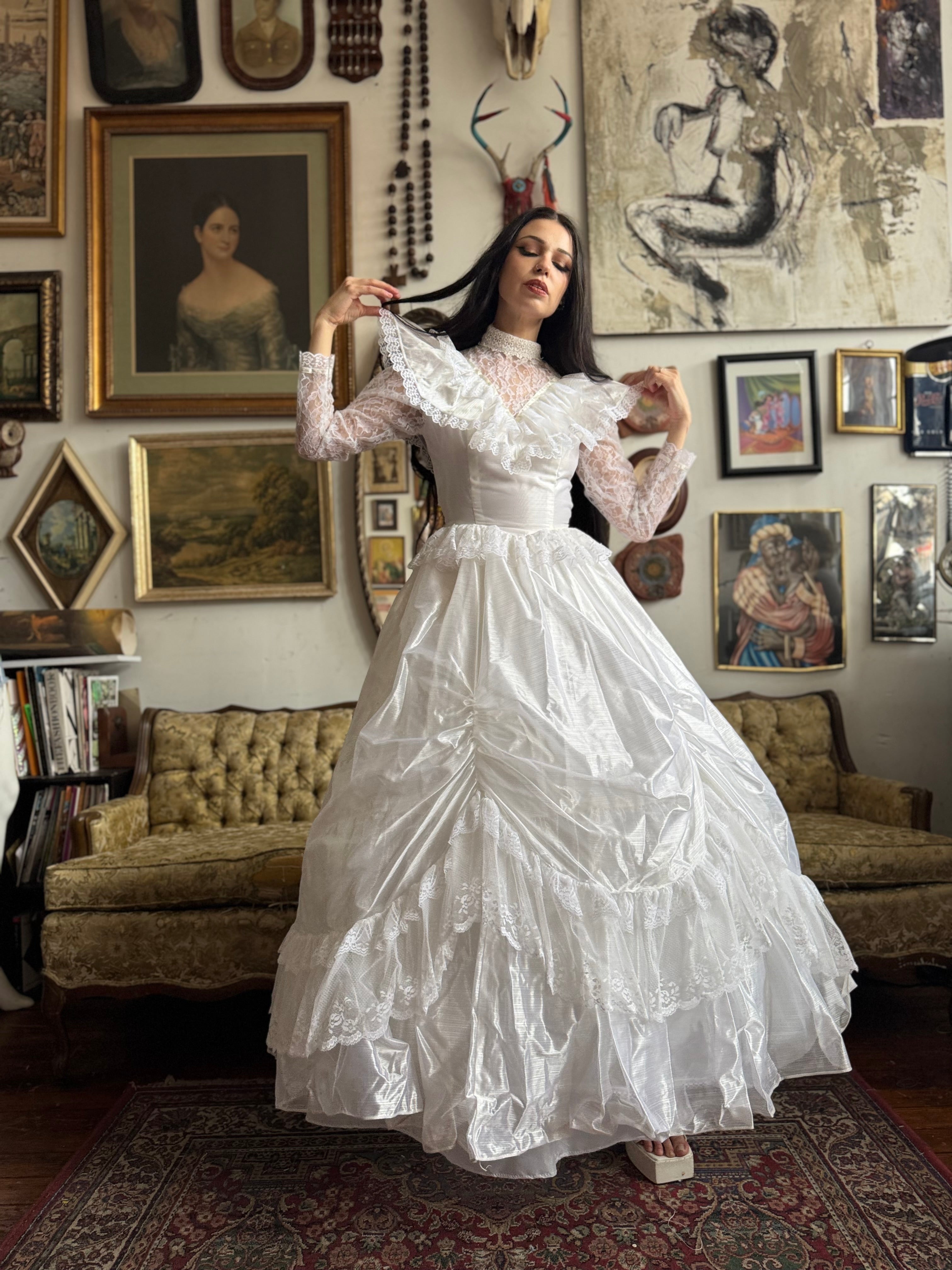 80's Jessica McClintock Gunne Sax White Eyelet Lace Romantic Wedding Dress