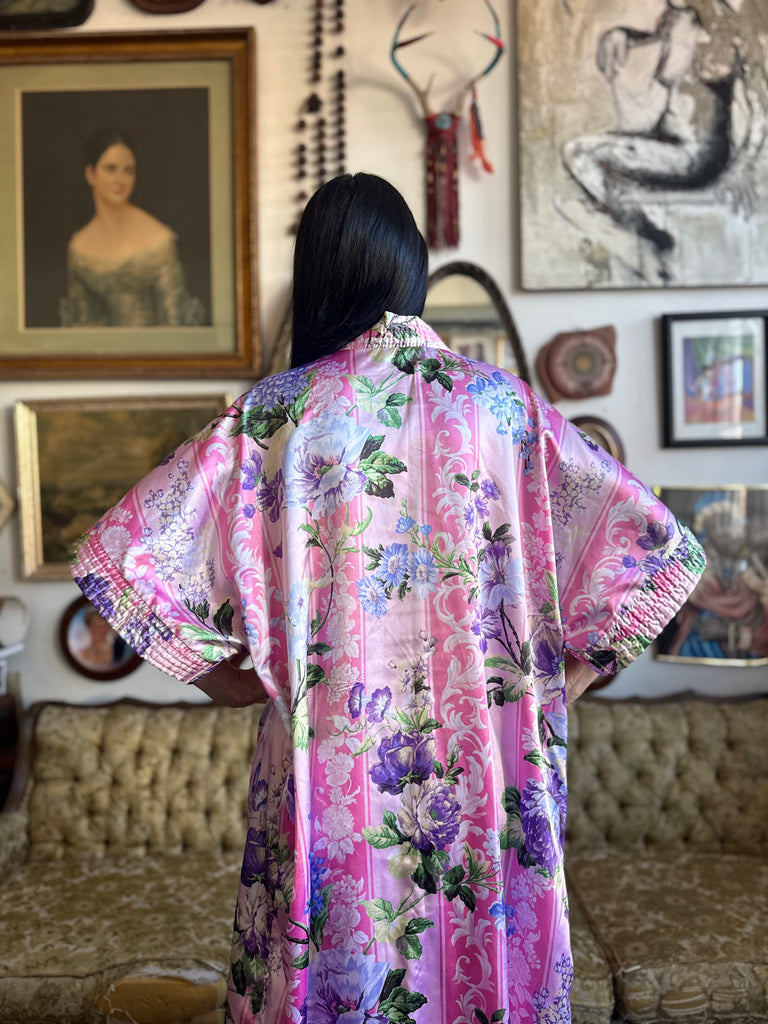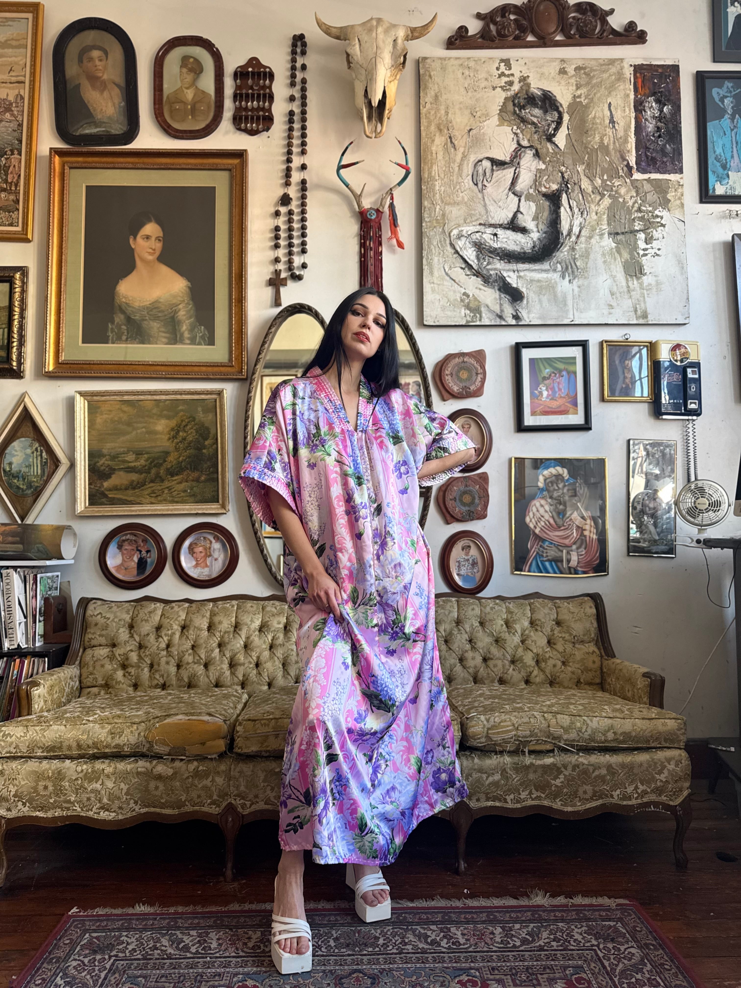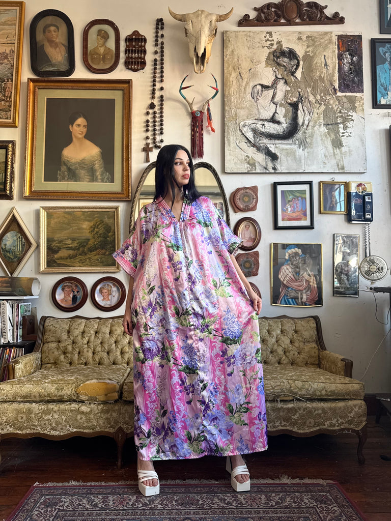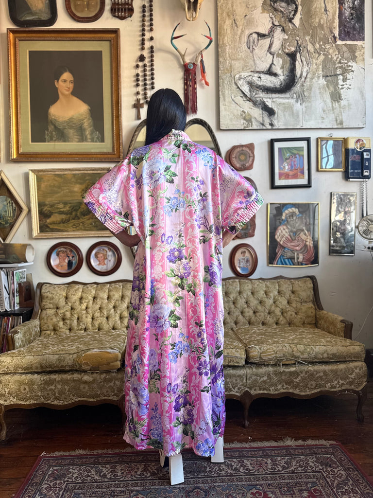 Vintage 90s Floral Print Pink Satin Mumu One Size