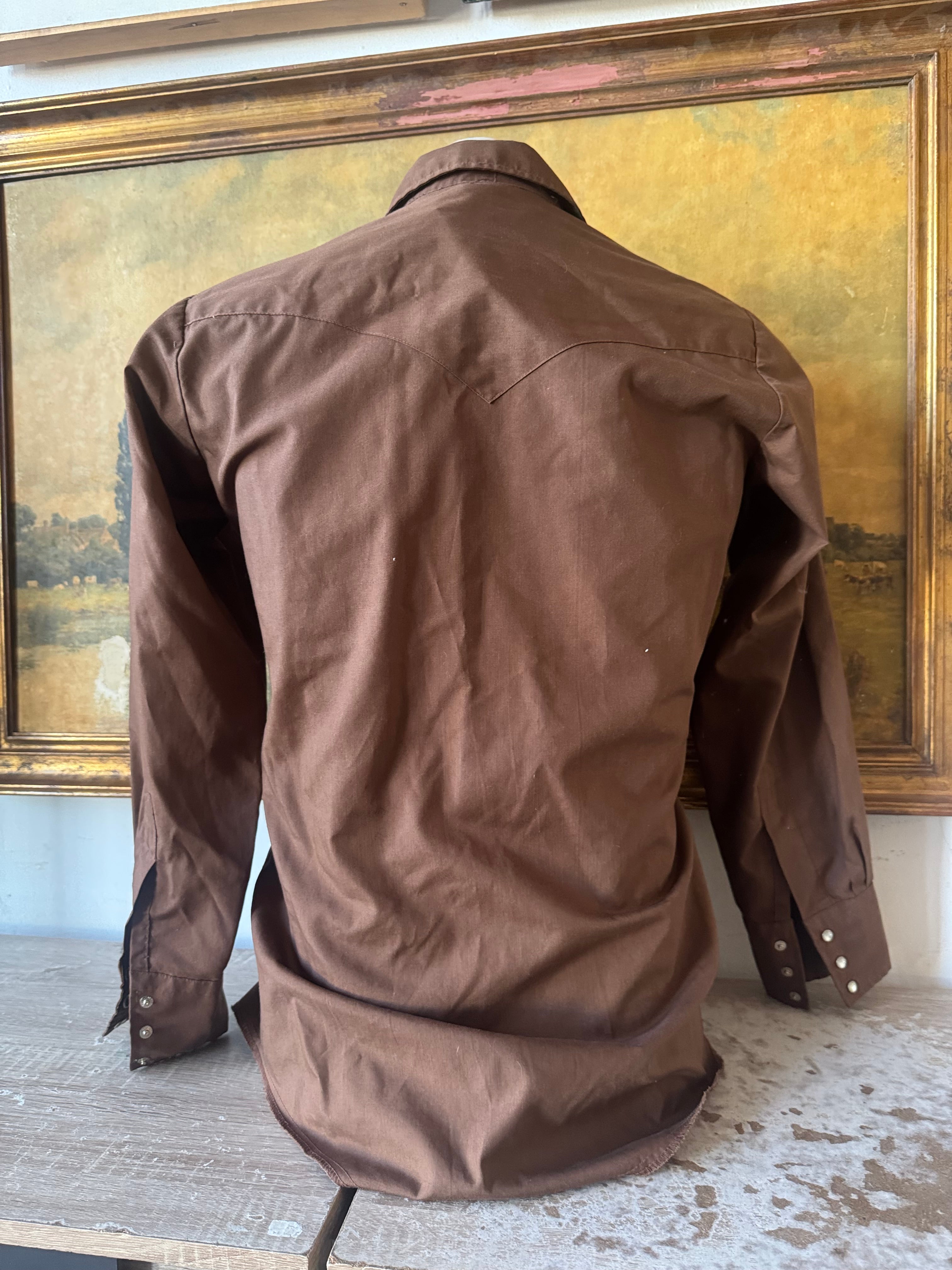 Vintage 70s Brown Floral Embroidered Western Button Up Size S