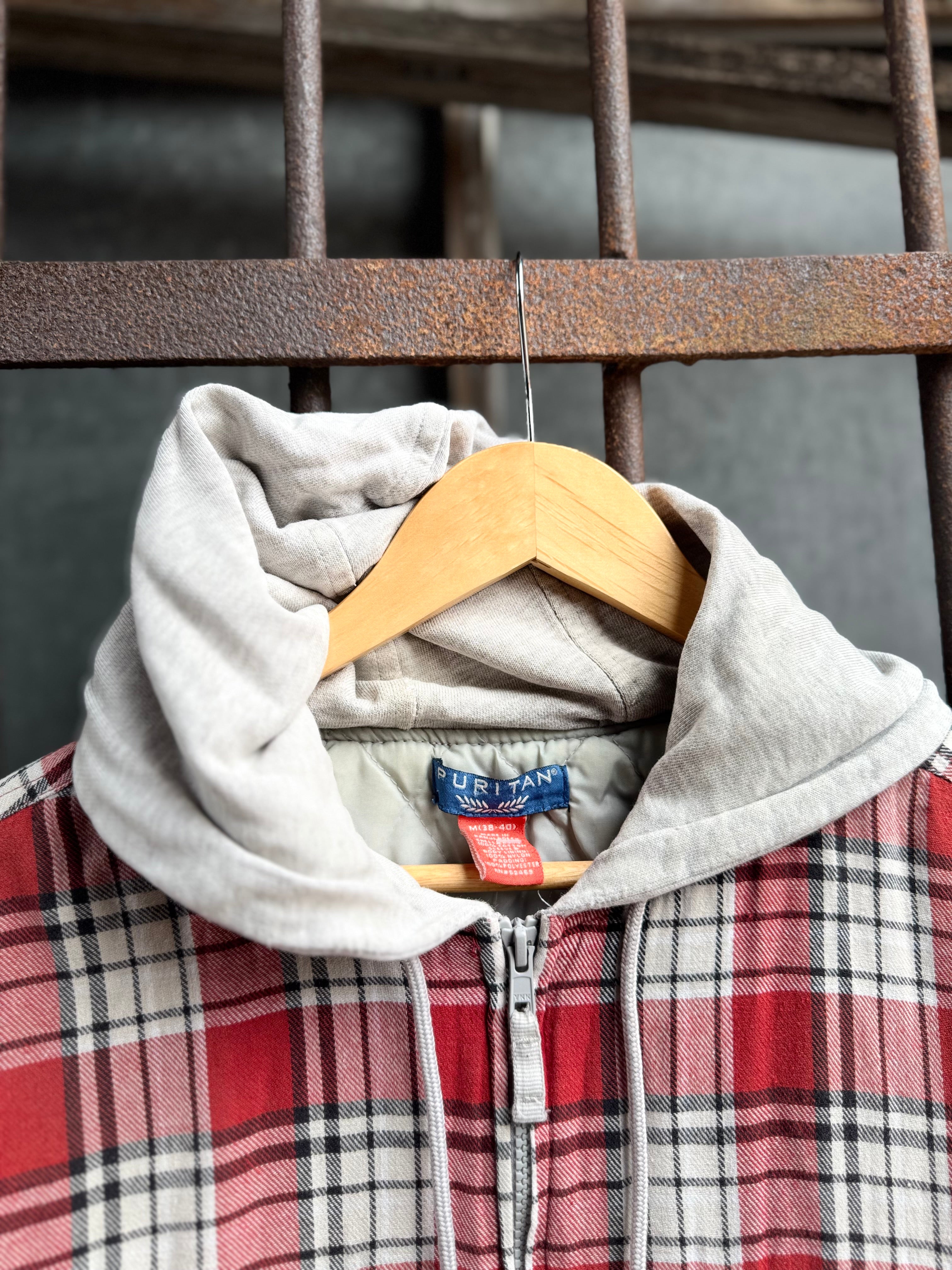 Puritan Insulated Plaid Hooded Zip Front Flannel Size M