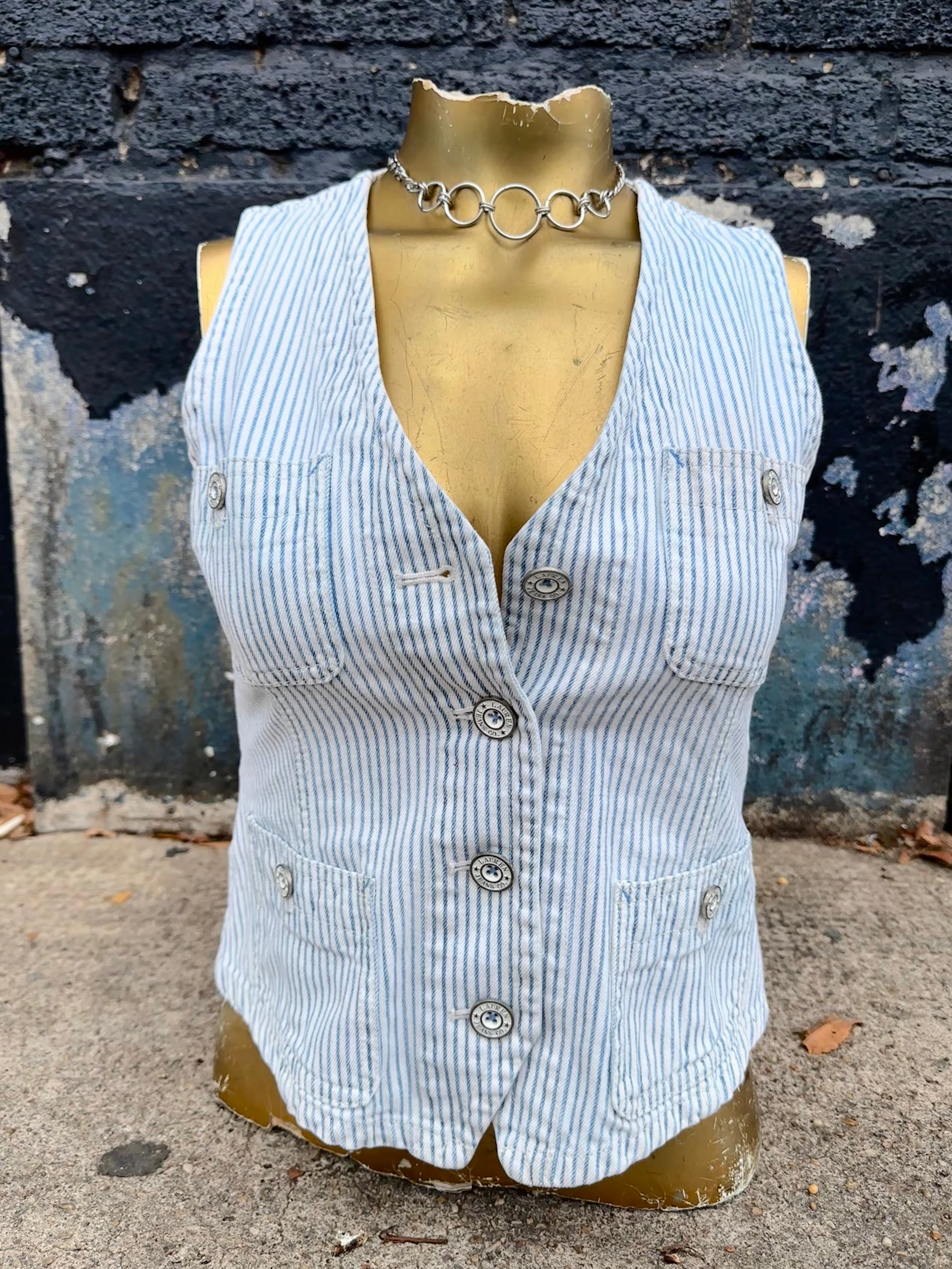 90s Vintage Lauren Jeans Pinstripe Denim Vest Size S