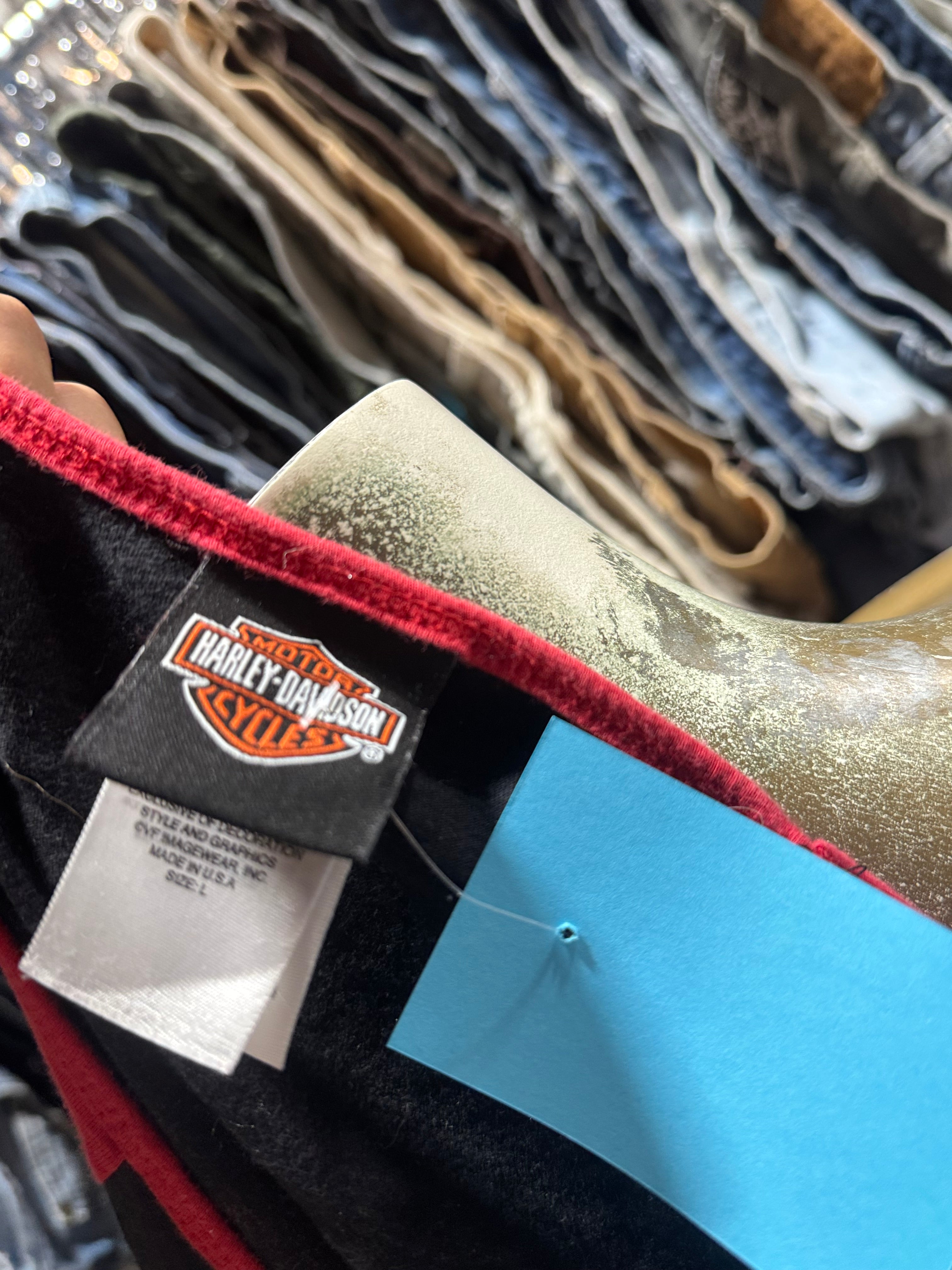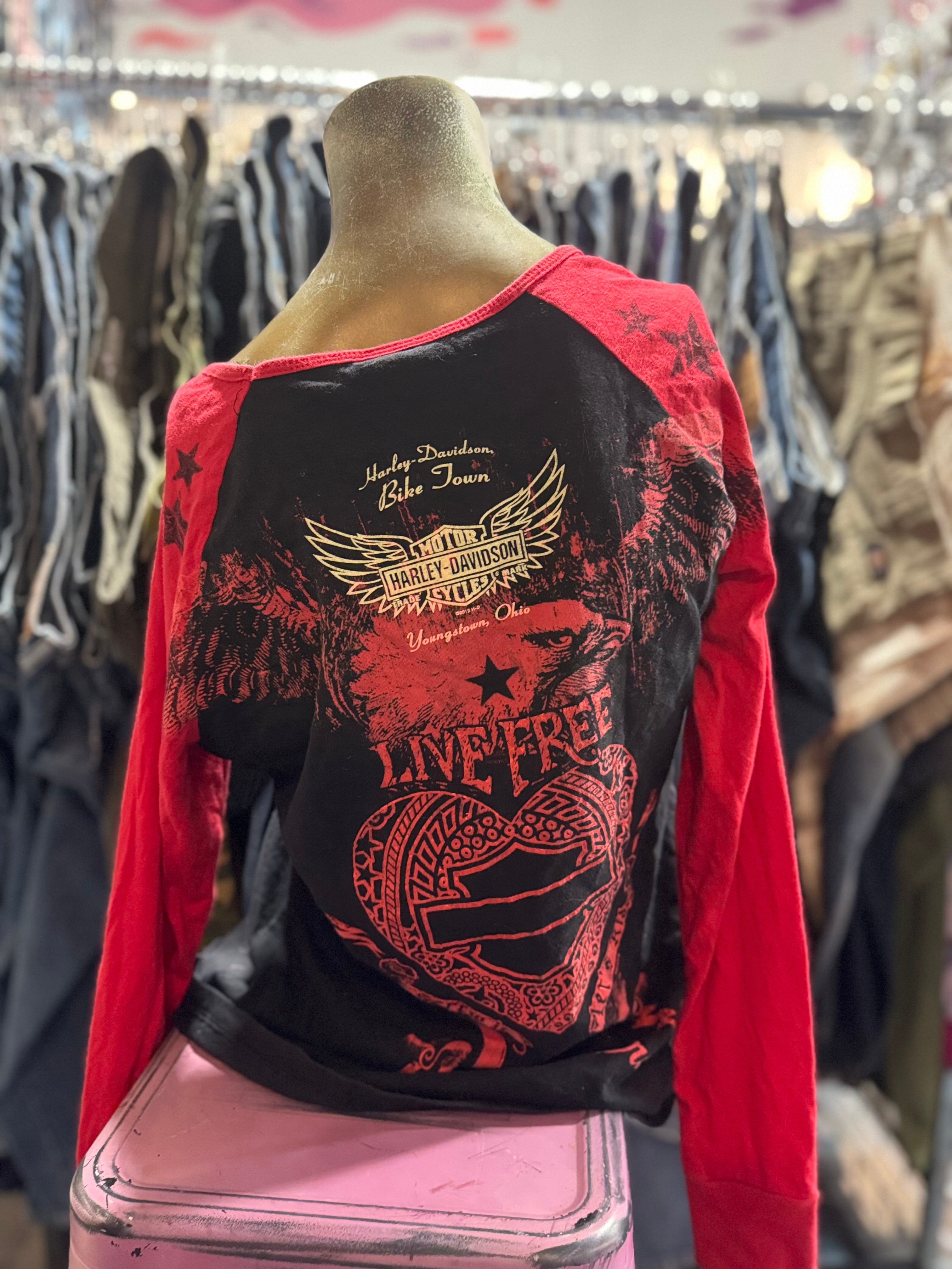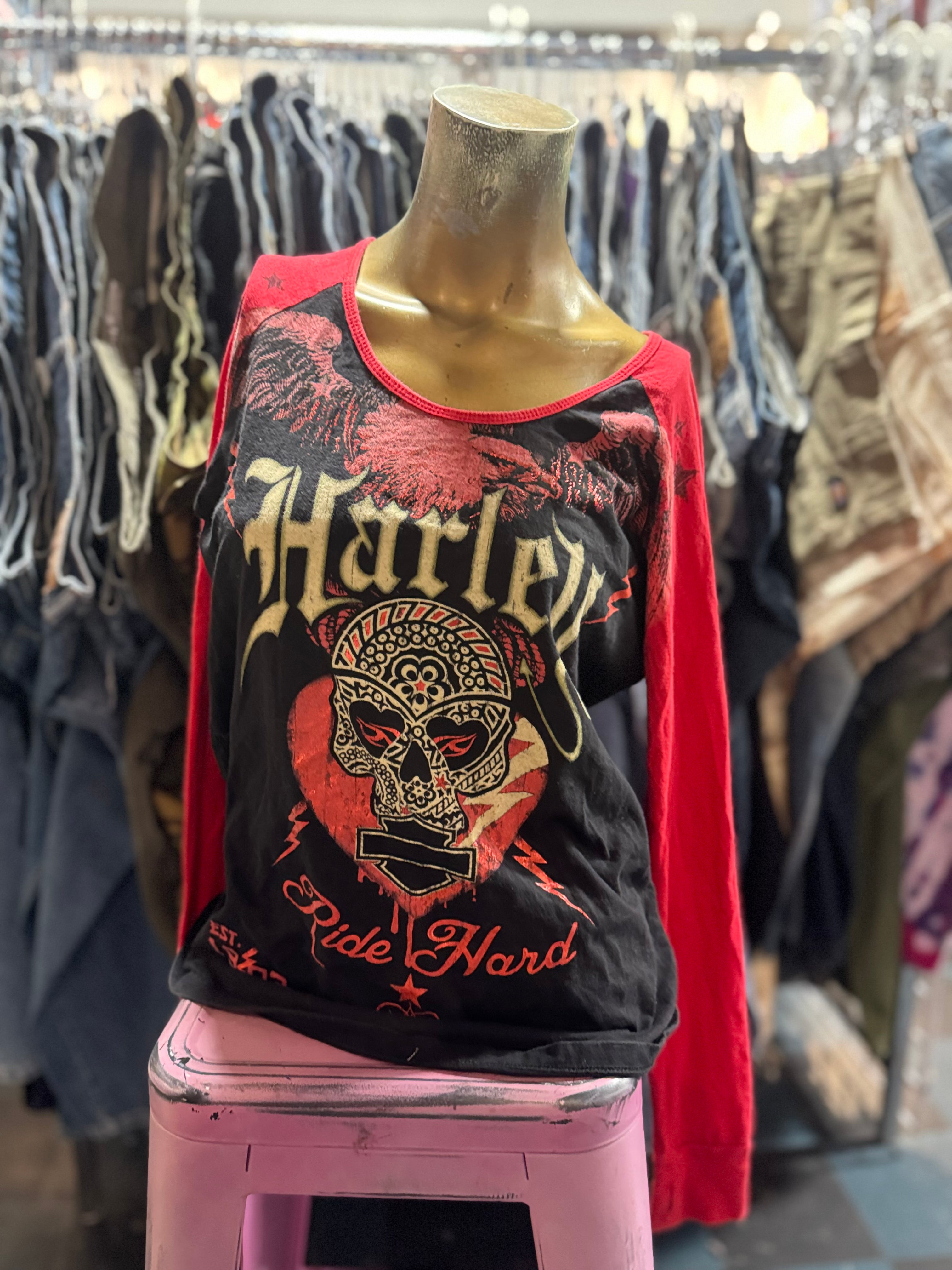 Harley Davidson Red Foil Ride Hard Long Sleeve Top Size L