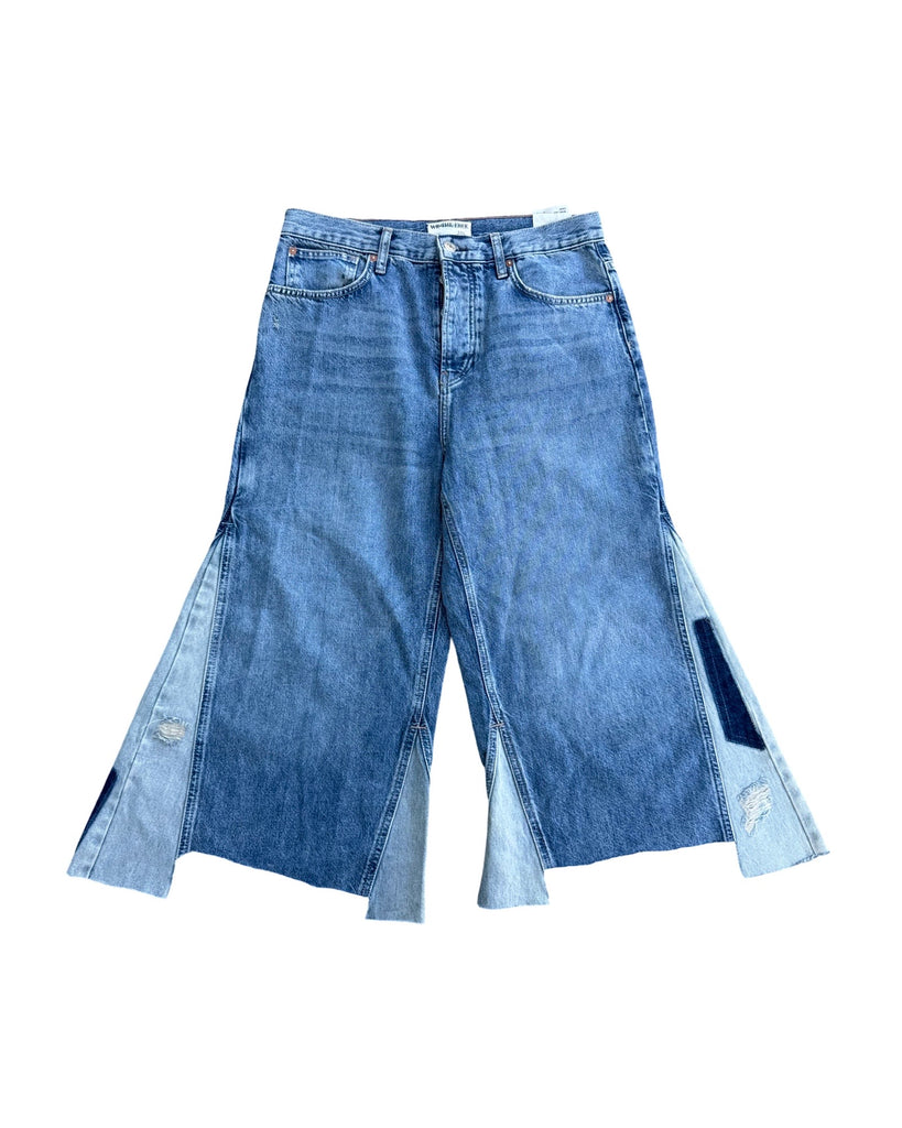 Free People Patchwork Wide-Leg Cropped Jeans Size 30