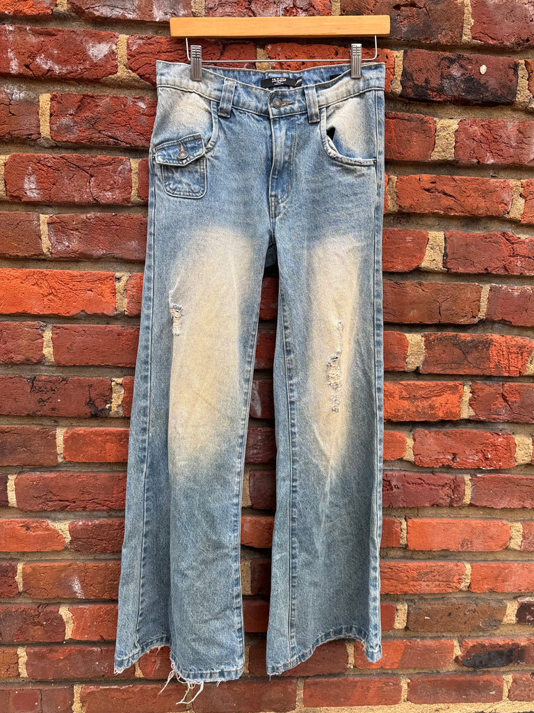 Jaded London Distressed Slim Fit Flare Jeans Size 28