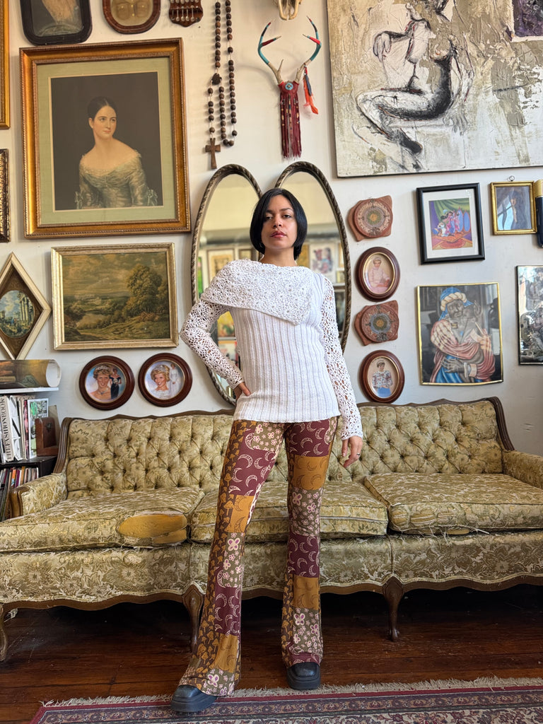 FP Kaleidoscope Sweater Flare Patchwork Legging Pants Ladies Size XS