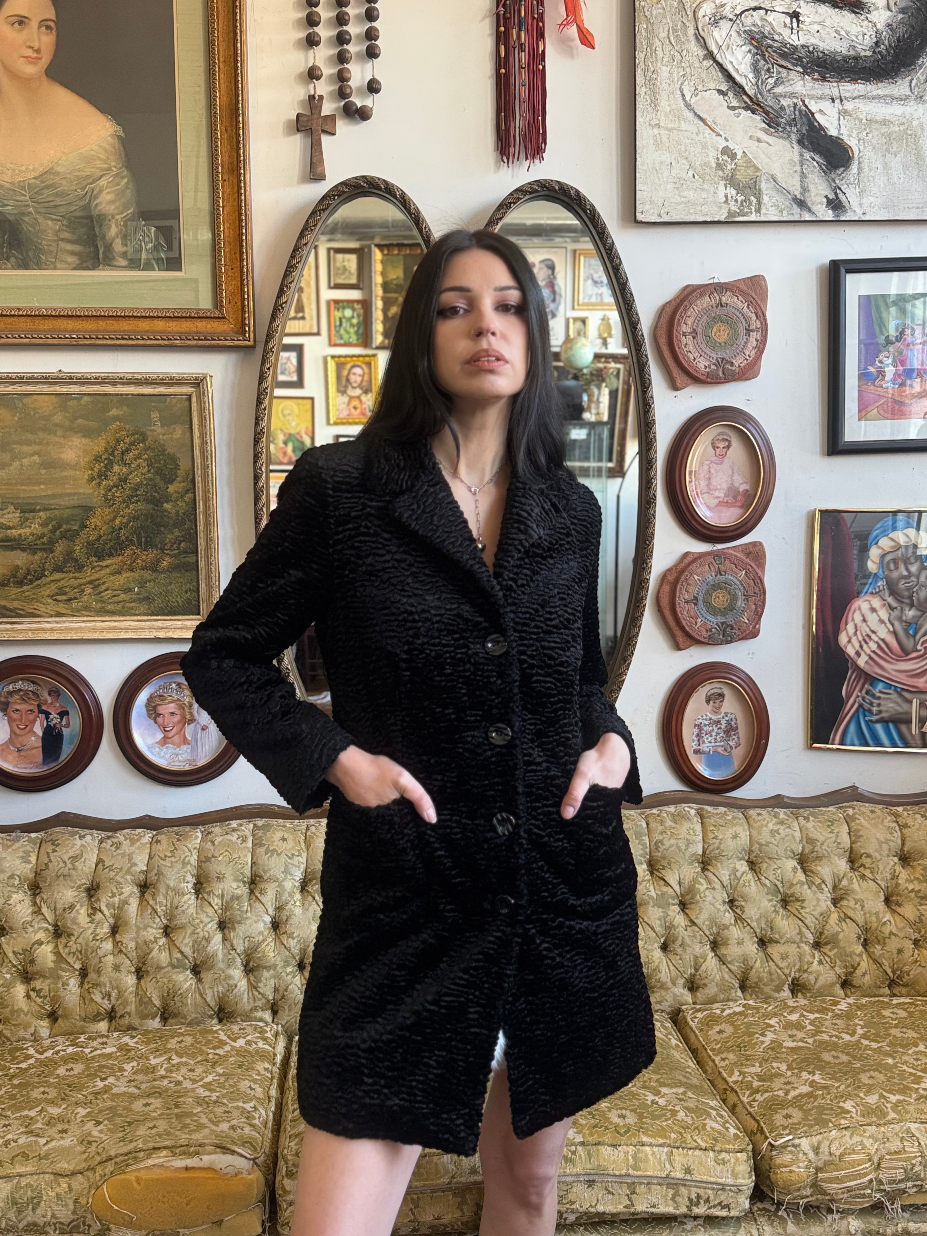Y2K LEI Black Faux Fur Jacket Size M
