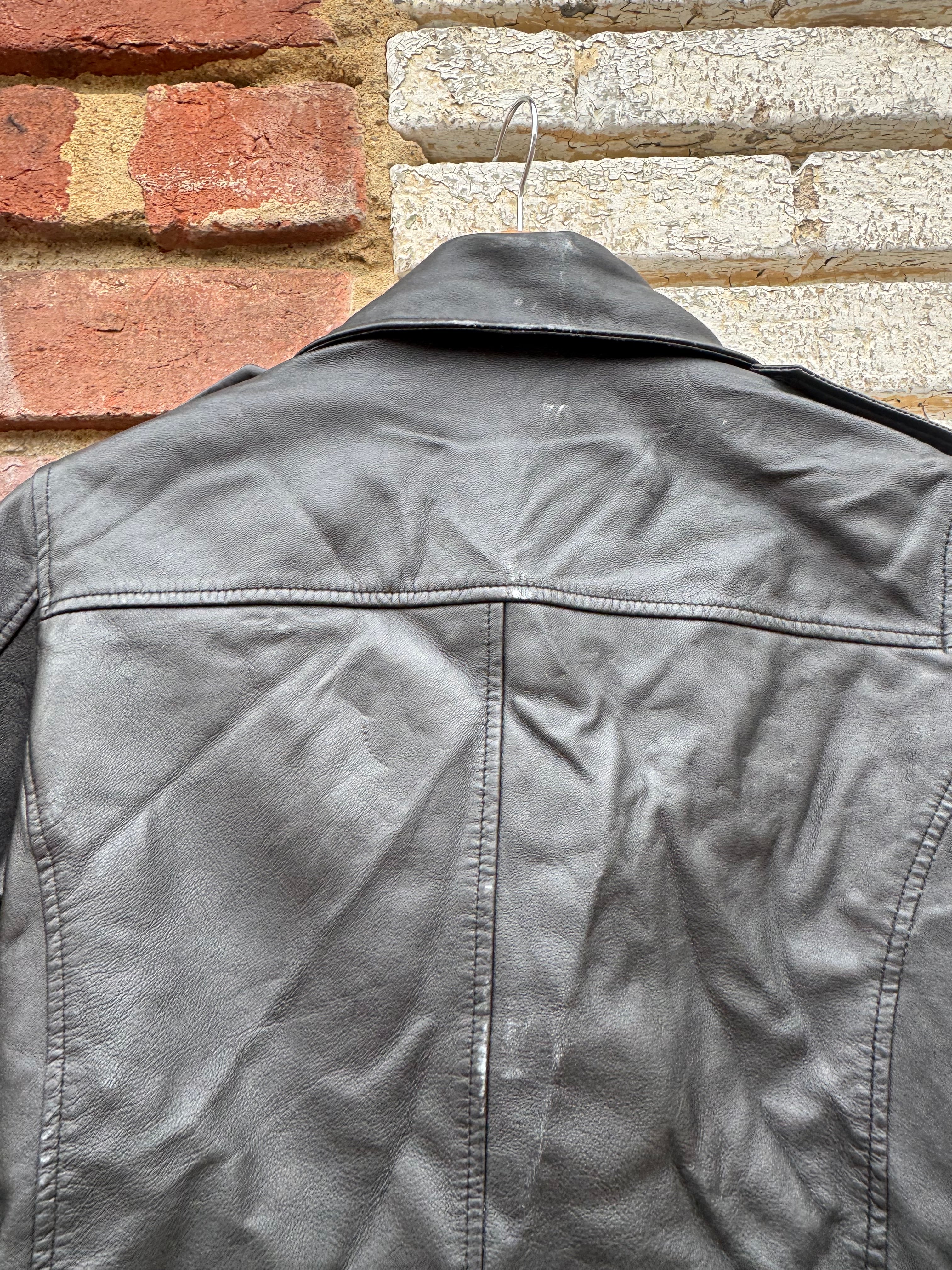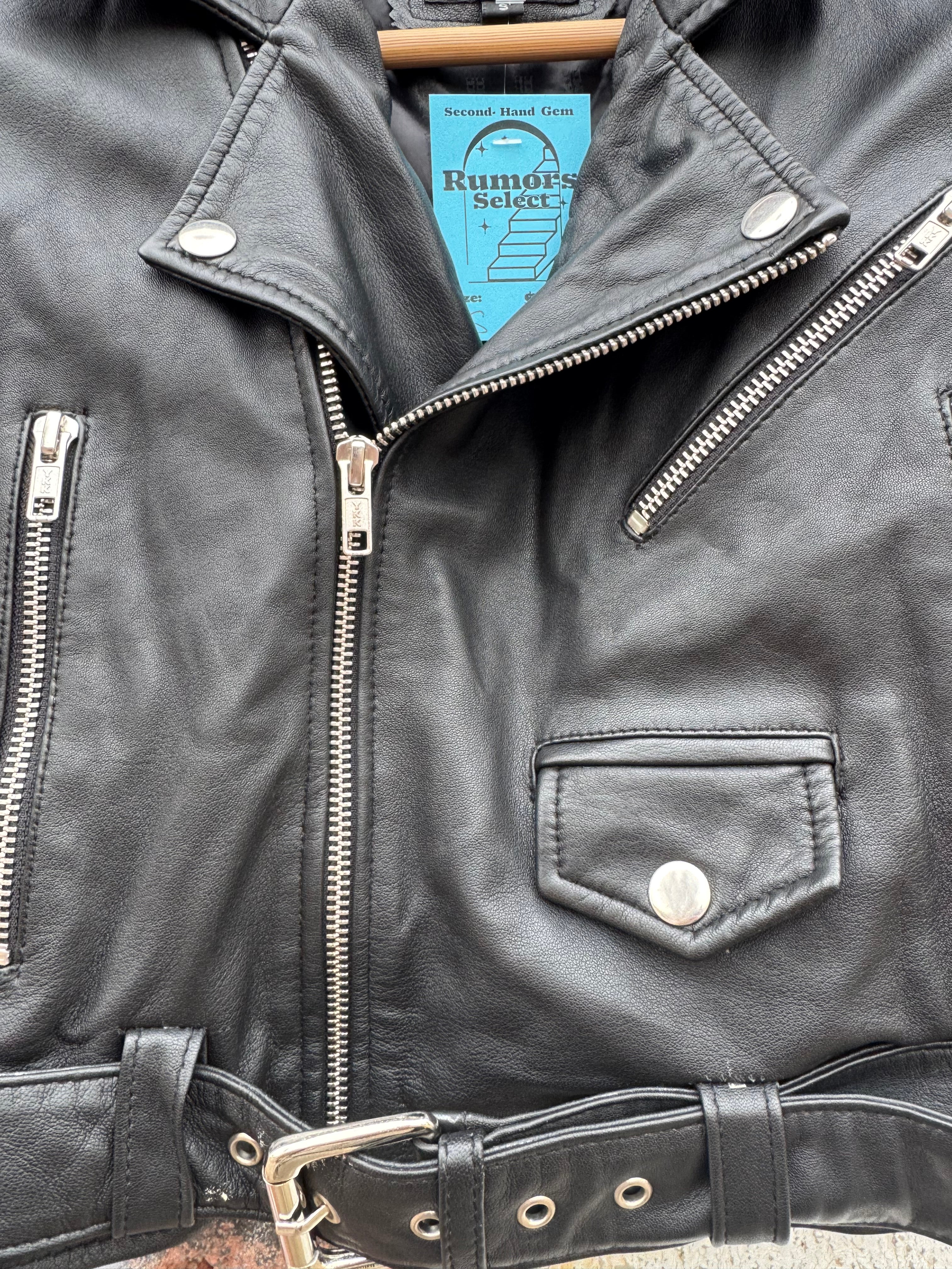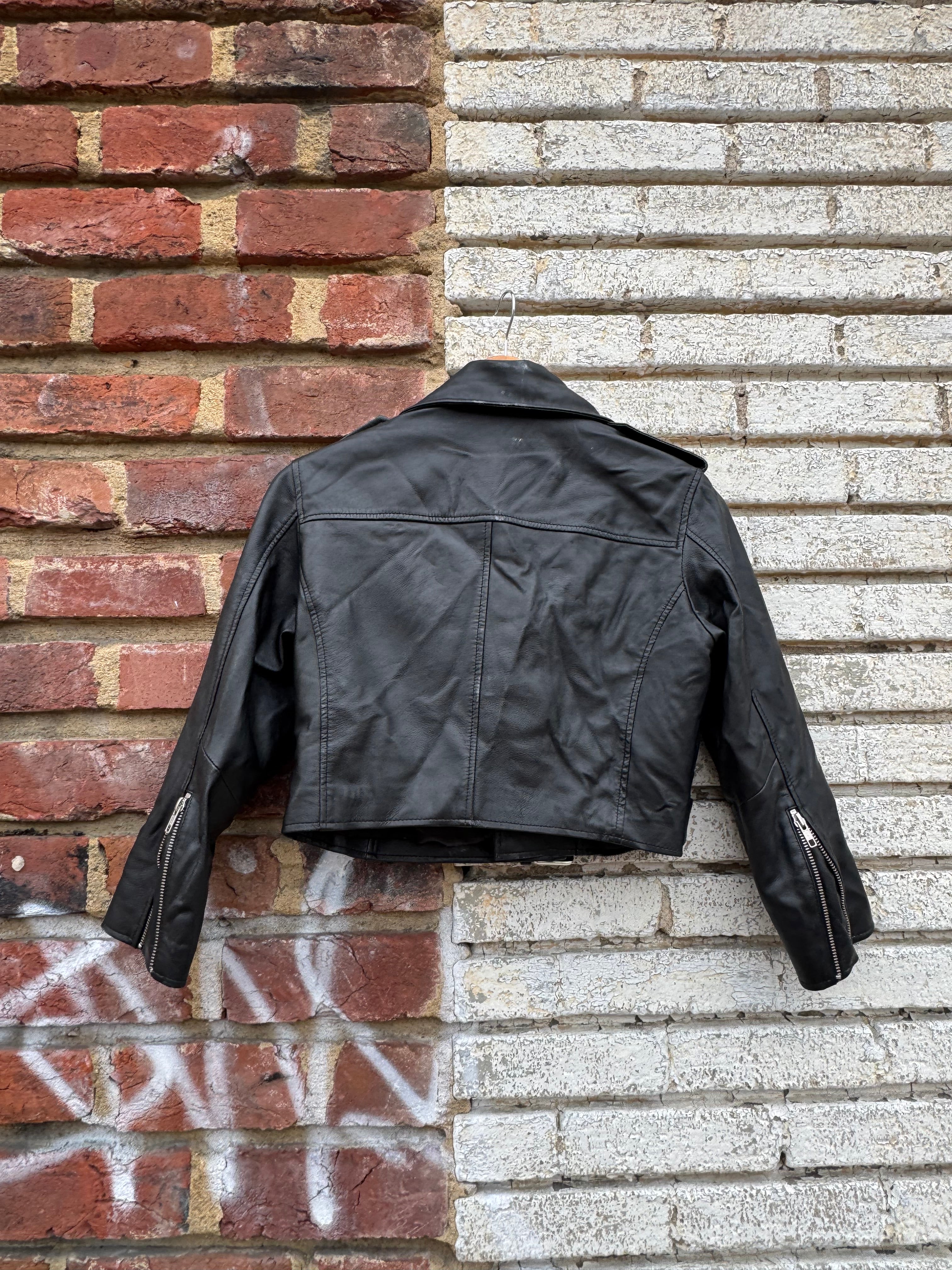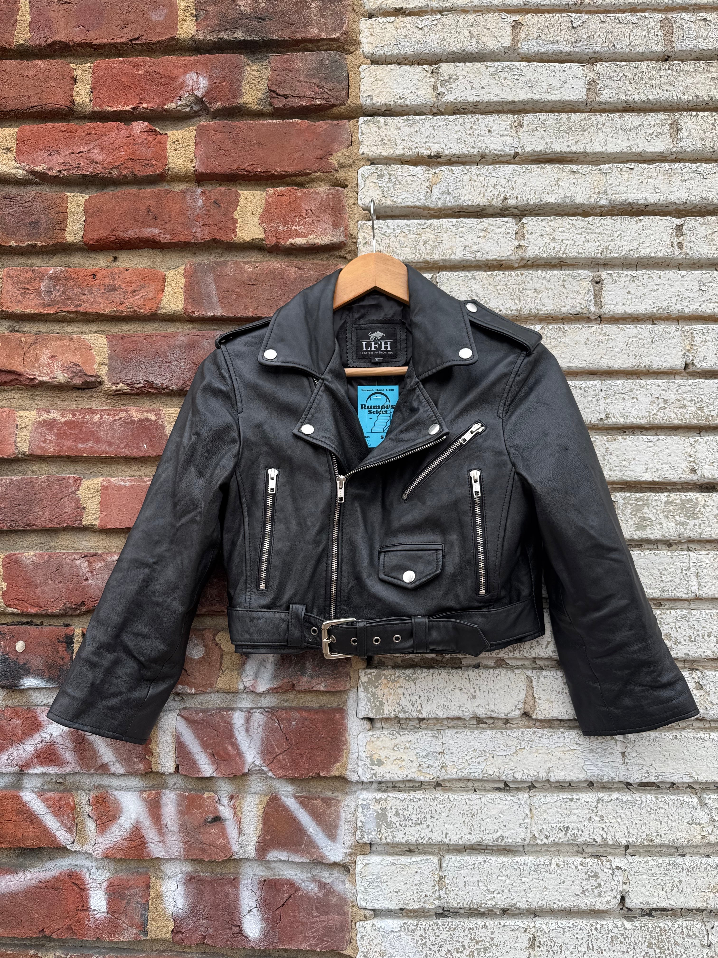 Leather Fashion Hub Black Genuine Leather Cropped Moto Jacket Size S
