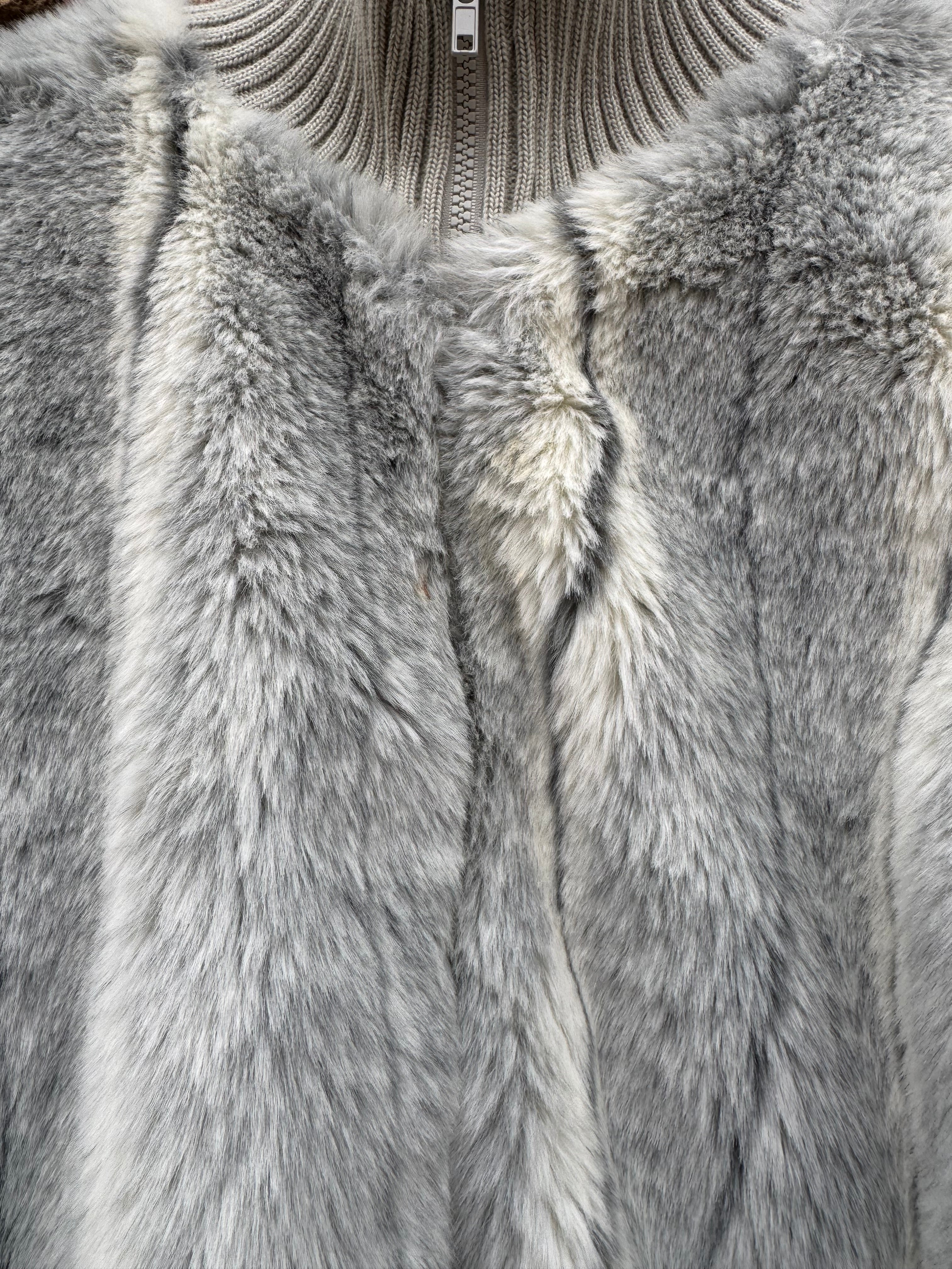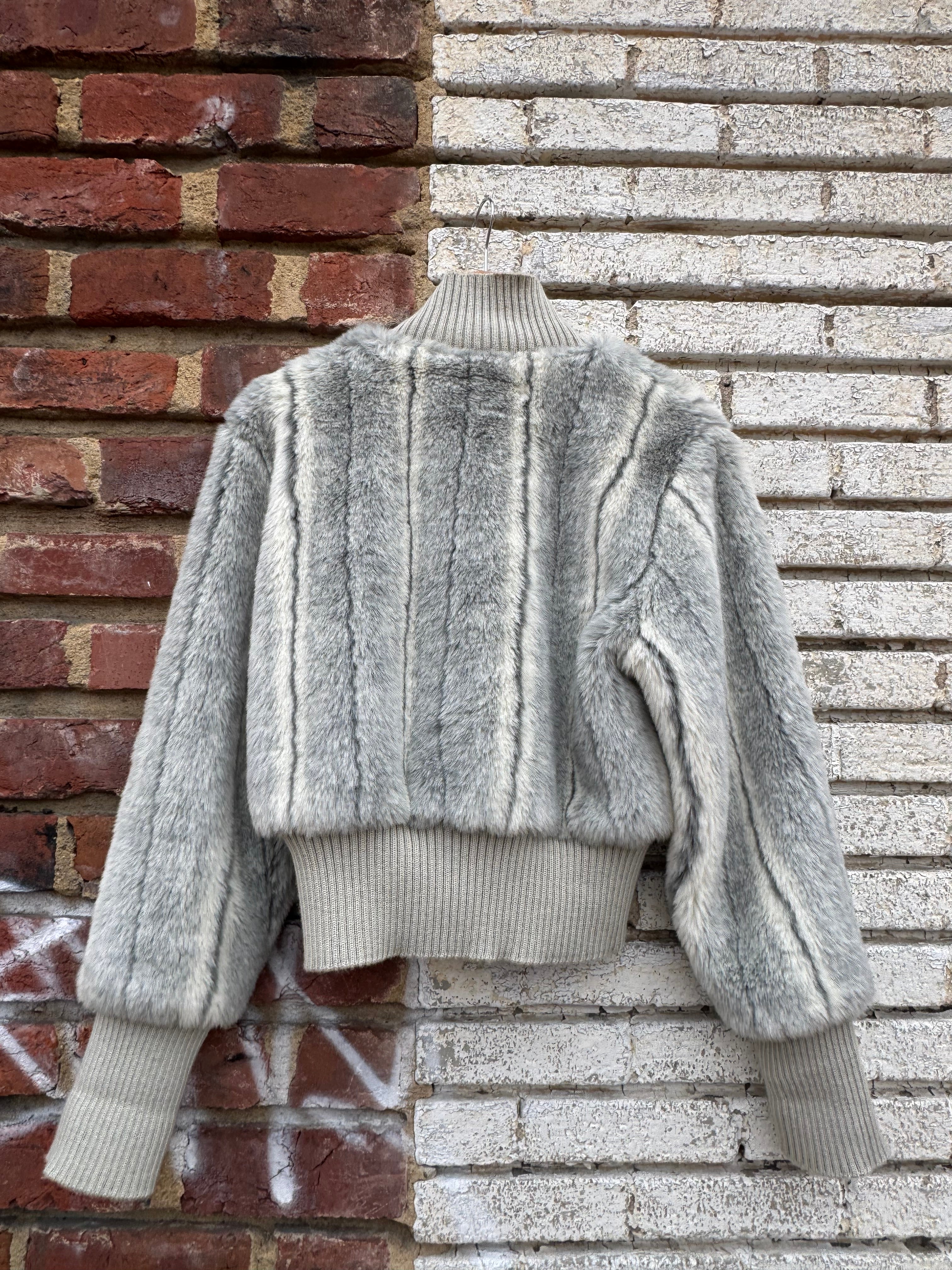 Y2k Rave Grey Faux Fur Jacket Size XL