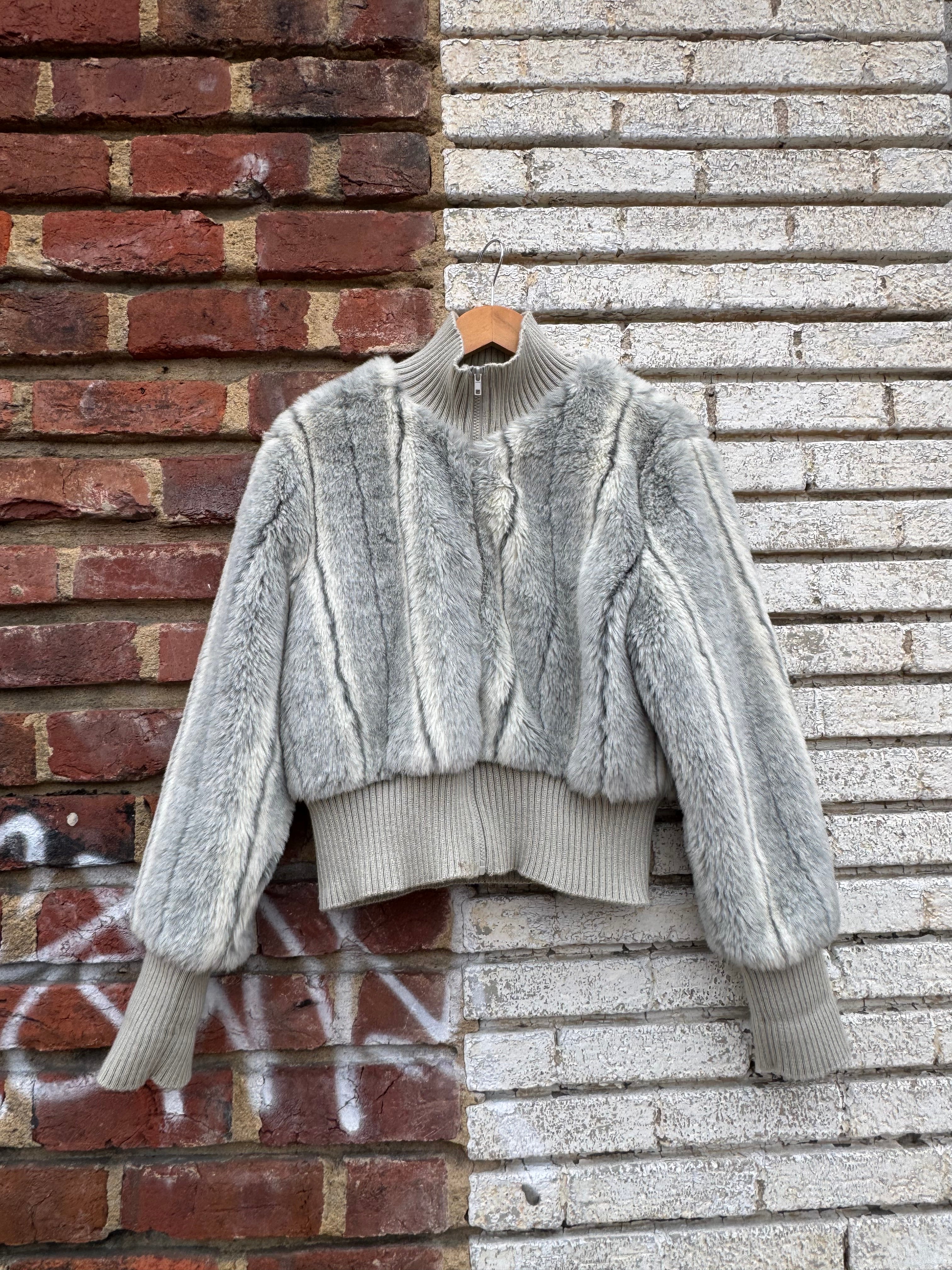 Y2k Rave Grey Faux Fur Jacket Size XL (Sold As Is)