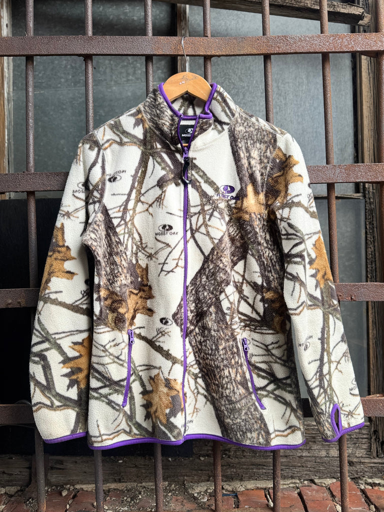 Mossyoak Camouflage Zip Up Fleece With Purple Accents Size M