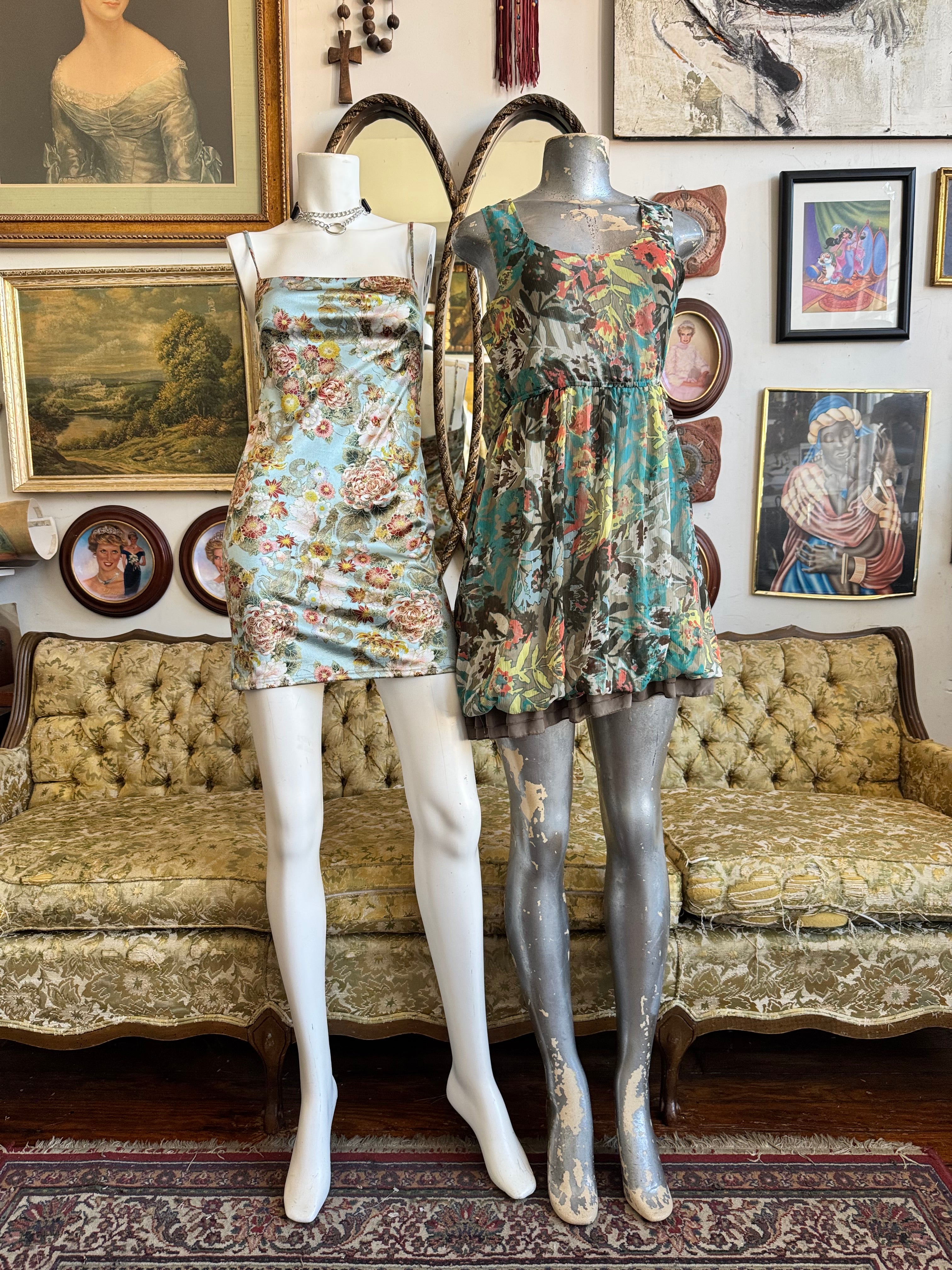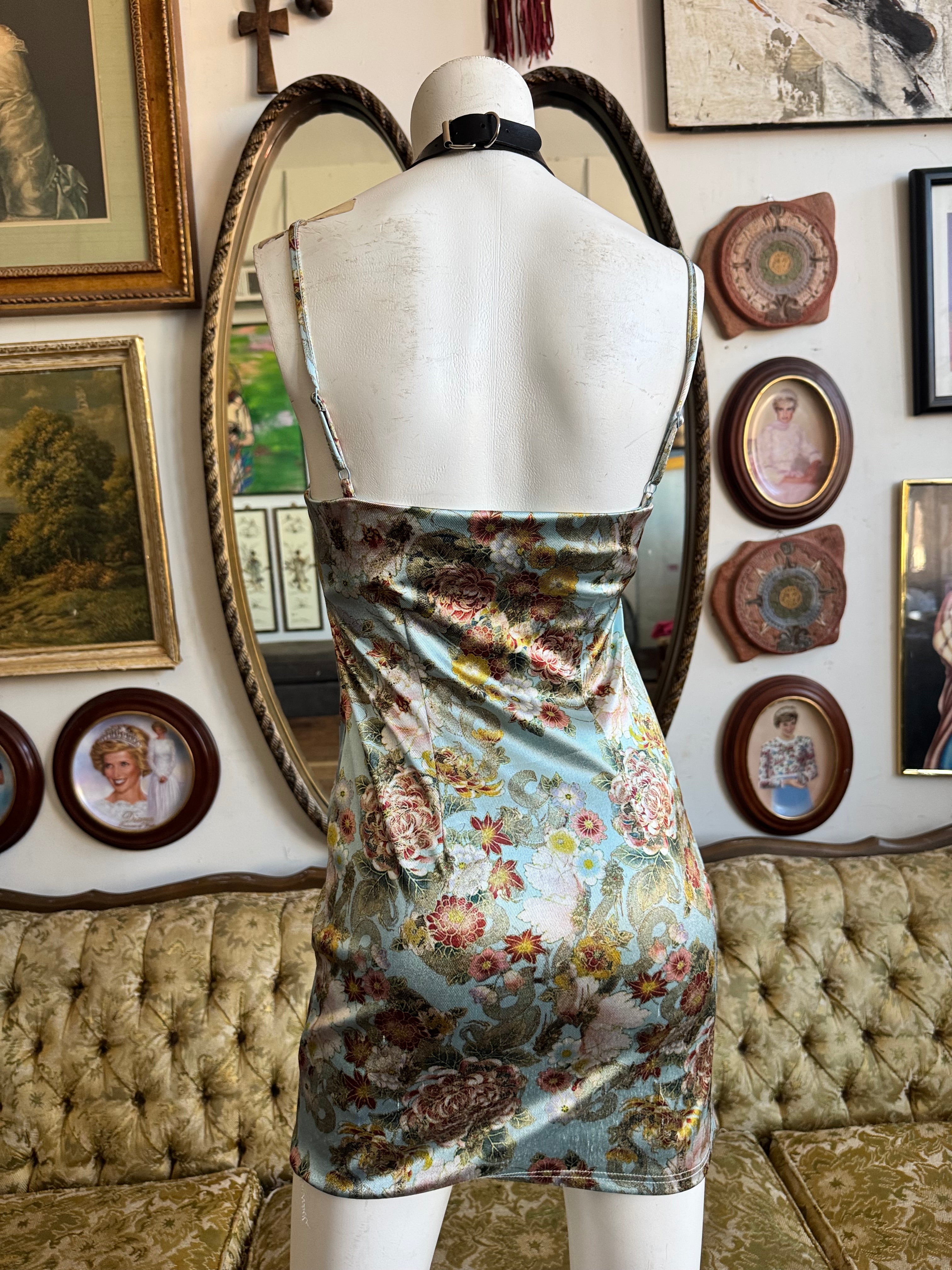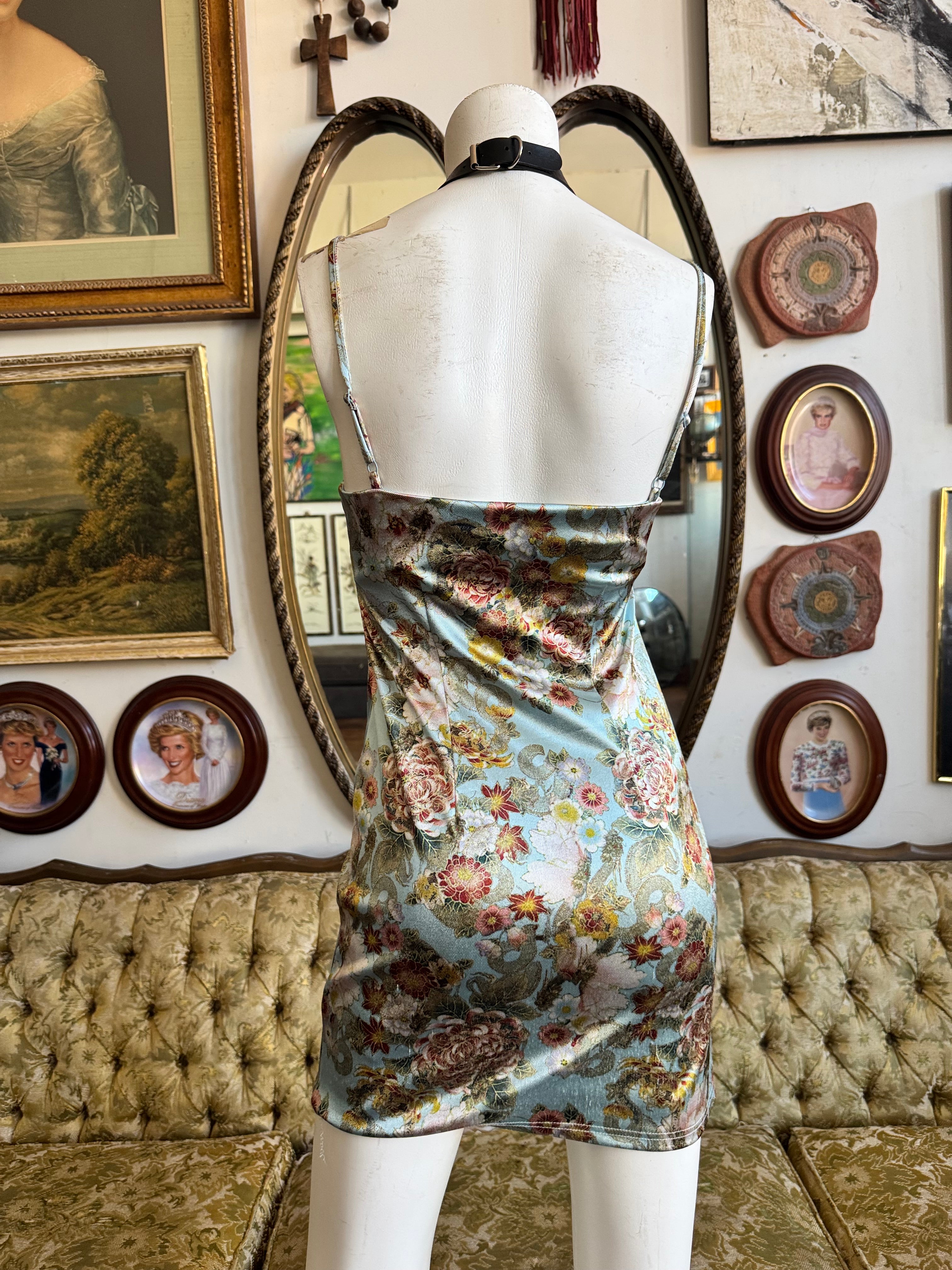 Urban Outfitters Baby Blue Peony Floral Print Mini Dress Size S AS IS