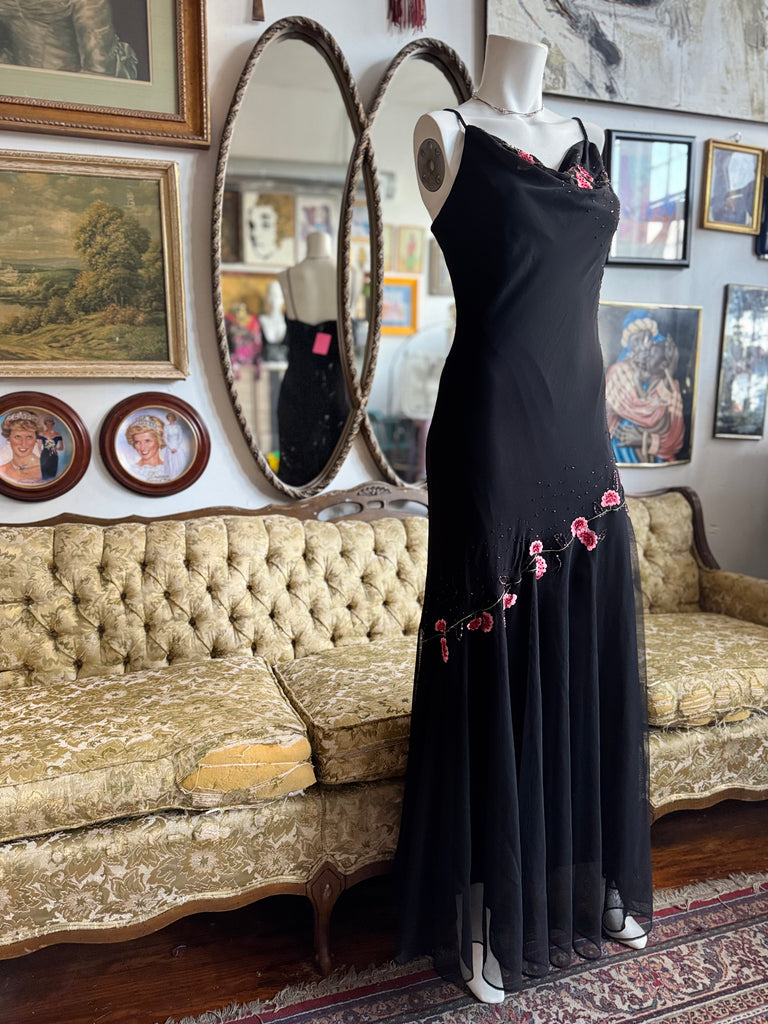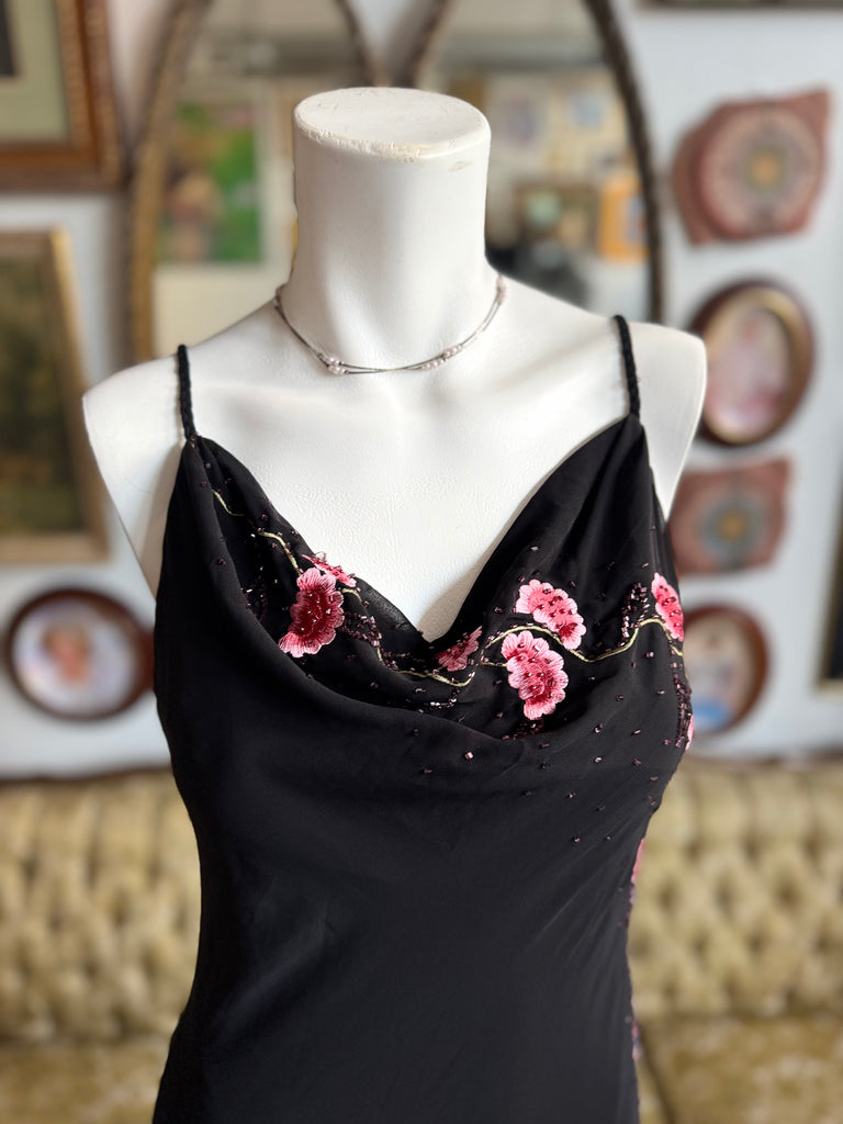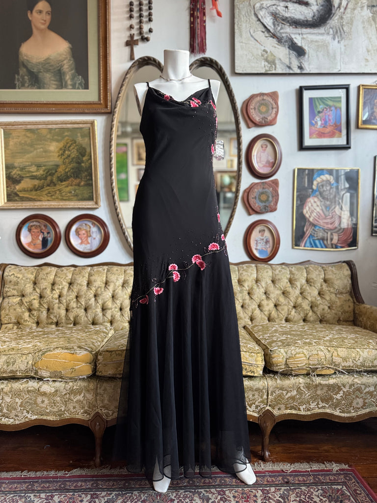 Y2k Floral Beaded Cowl Neck Maxi Dress Size 10