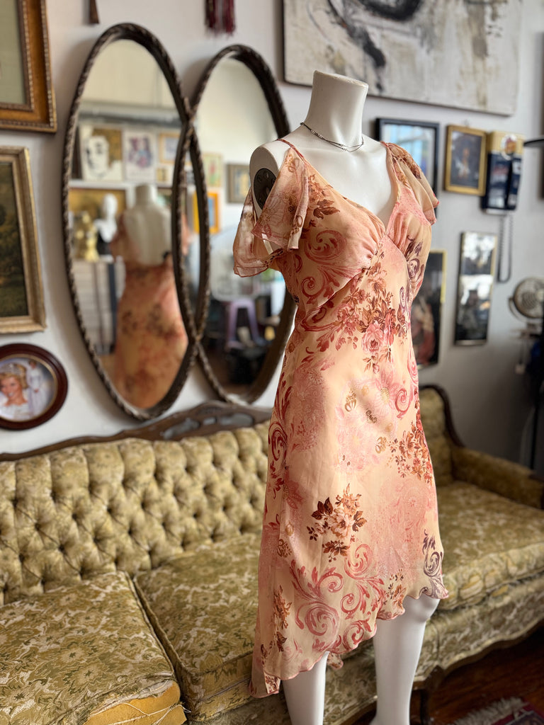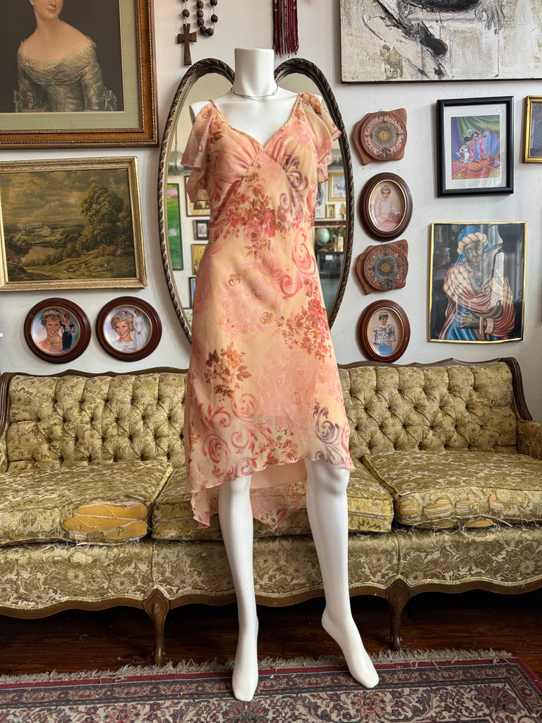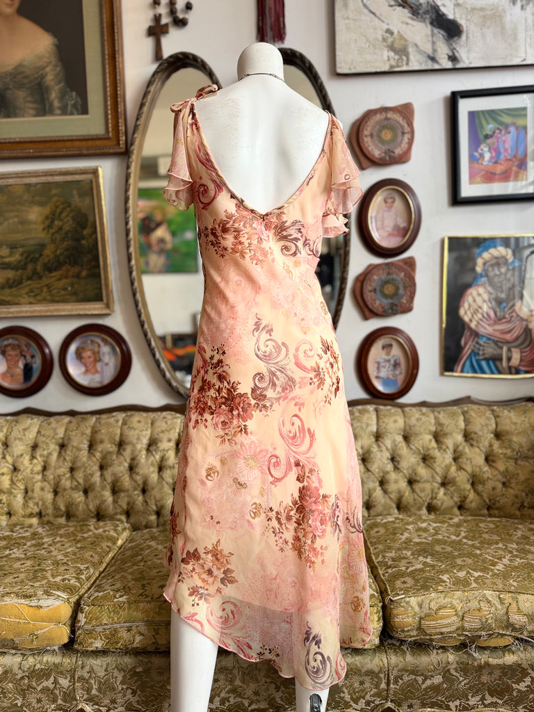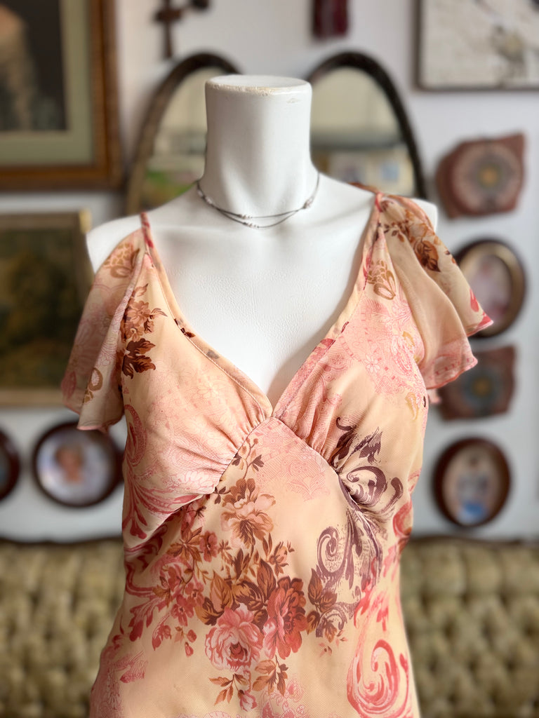 Y2k Floral Flutter Sleeve Midi Dress Size 7