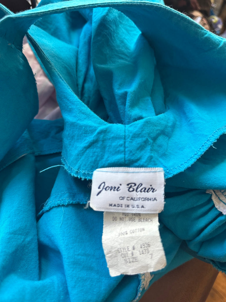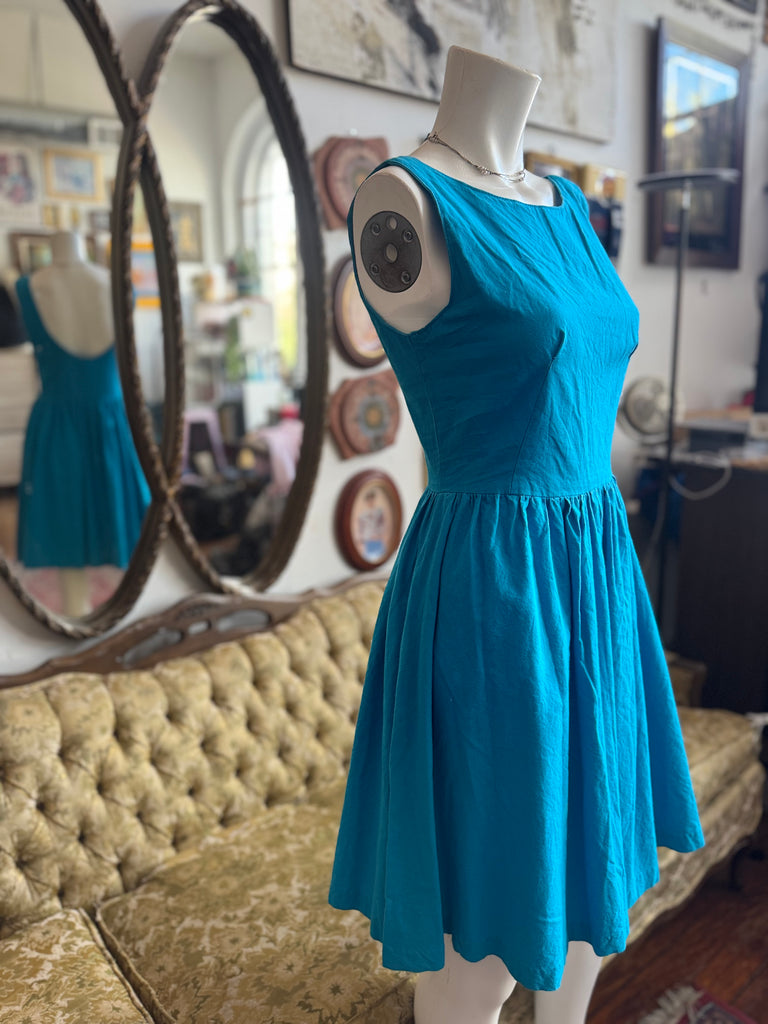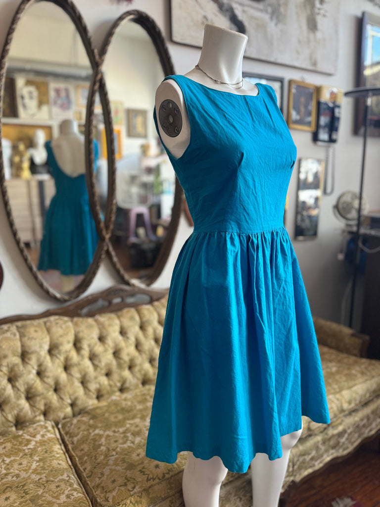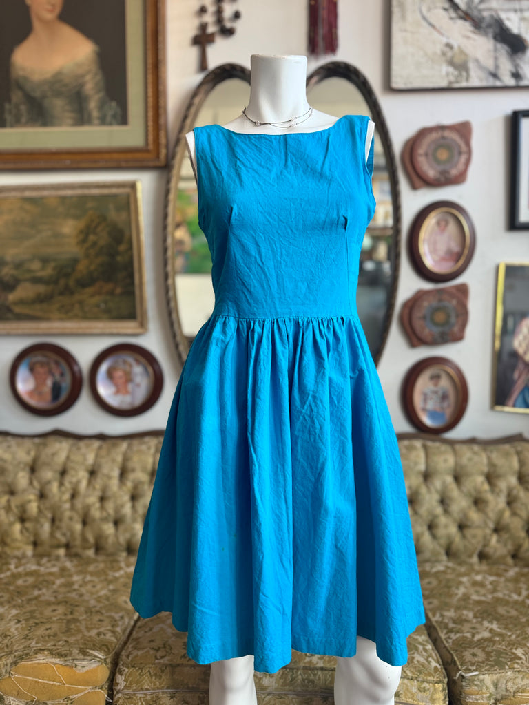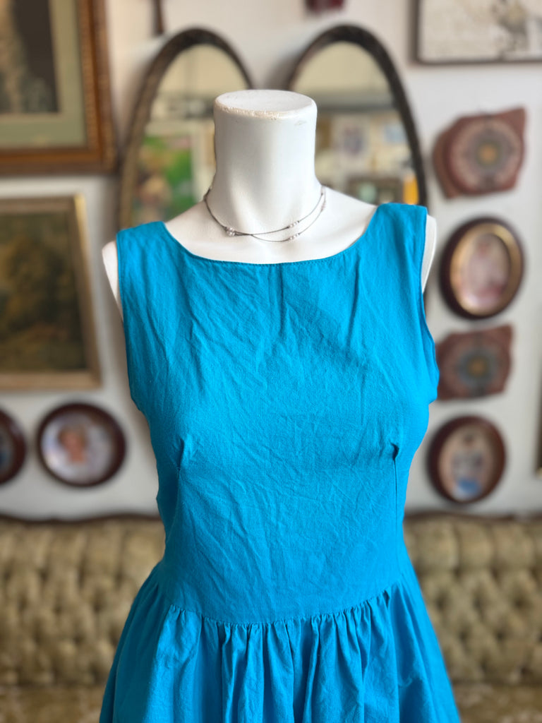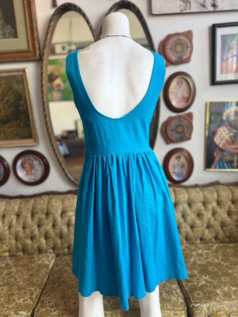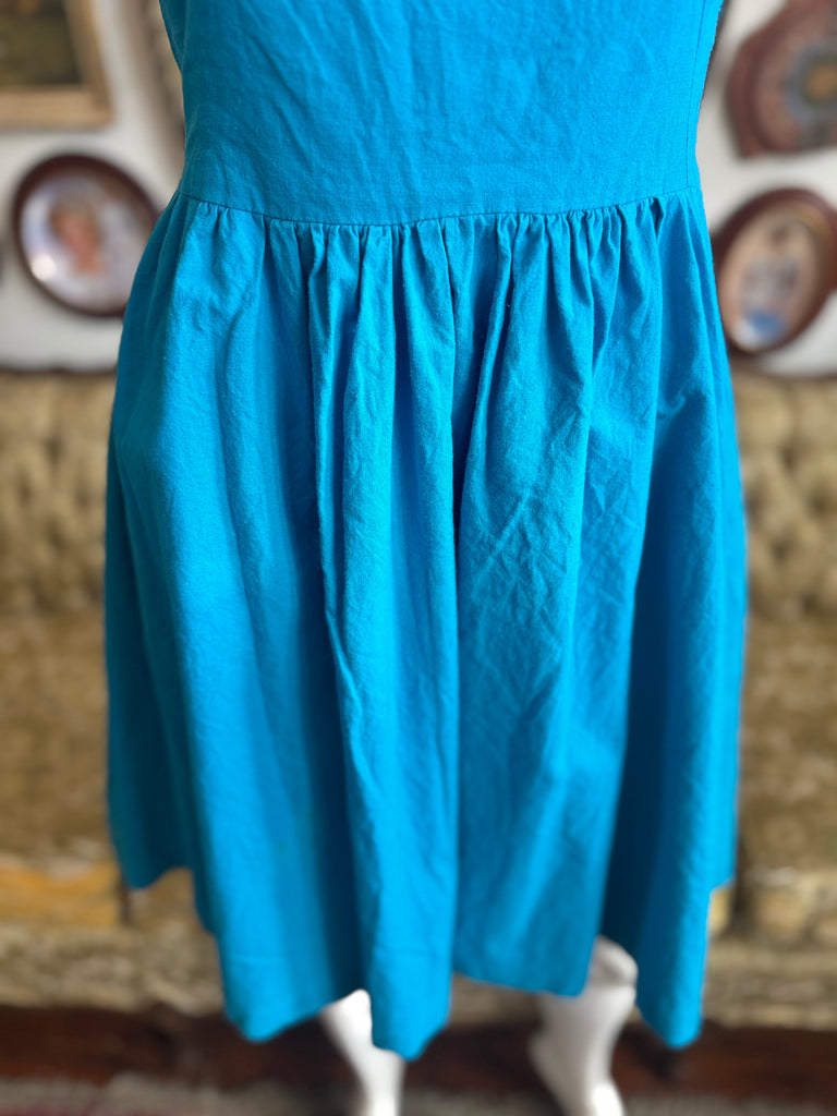 80s blue cotton fit and flare dress. Sold AS is (staining)