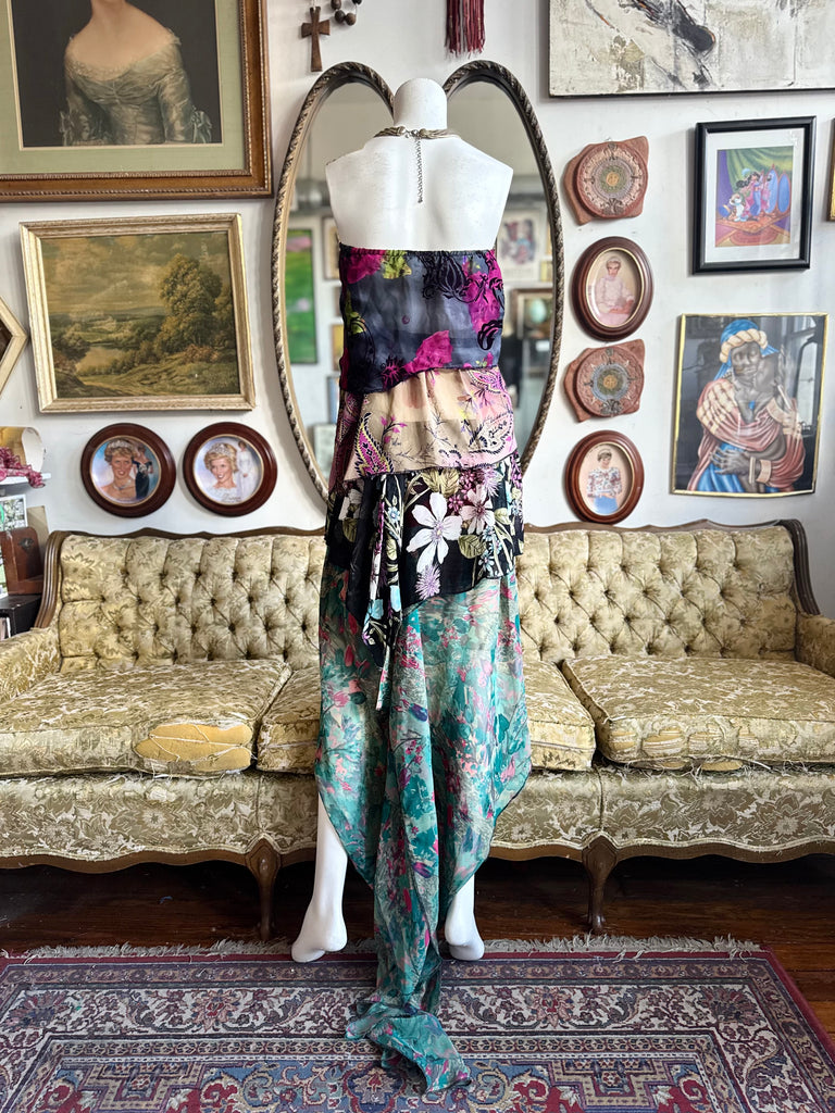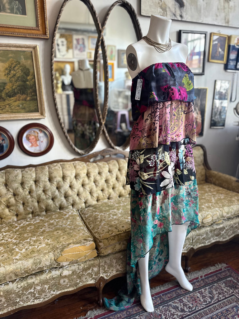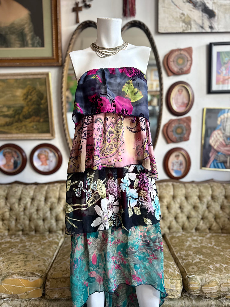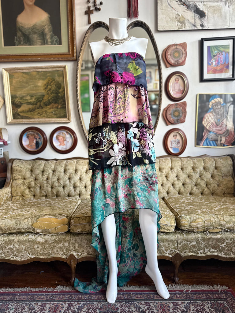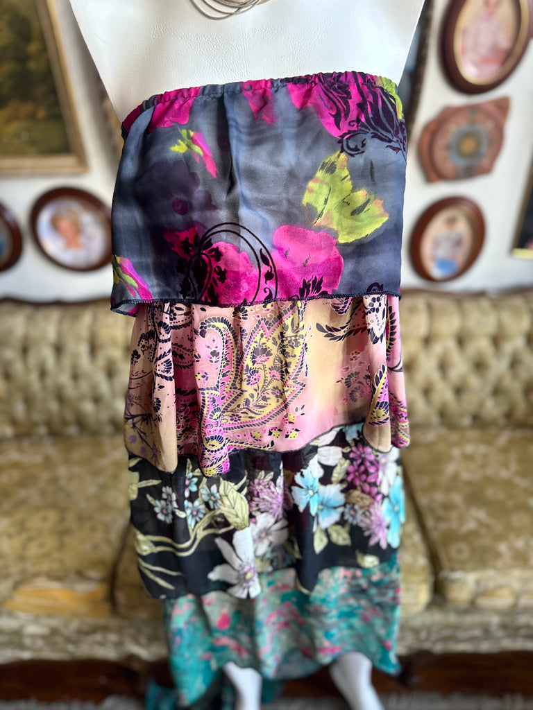 Handmade by Vanessa Aviles Upcycled Mixed Fabric Tiered Dress Size S/M