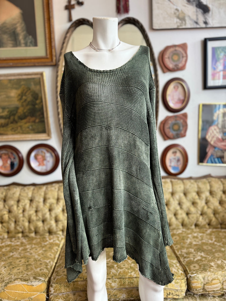 Knit Striped Olive Slouch Dress. Sold AS-is (Wear and snags)