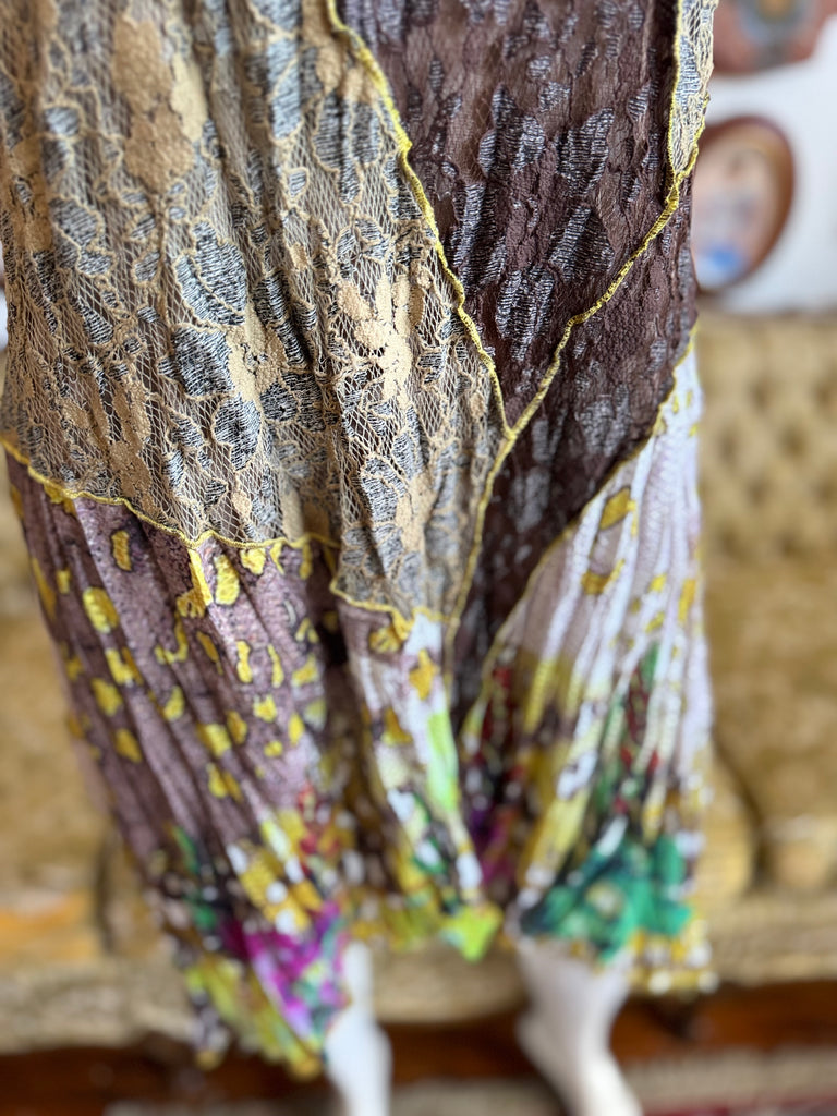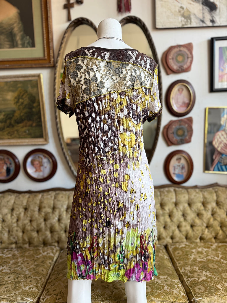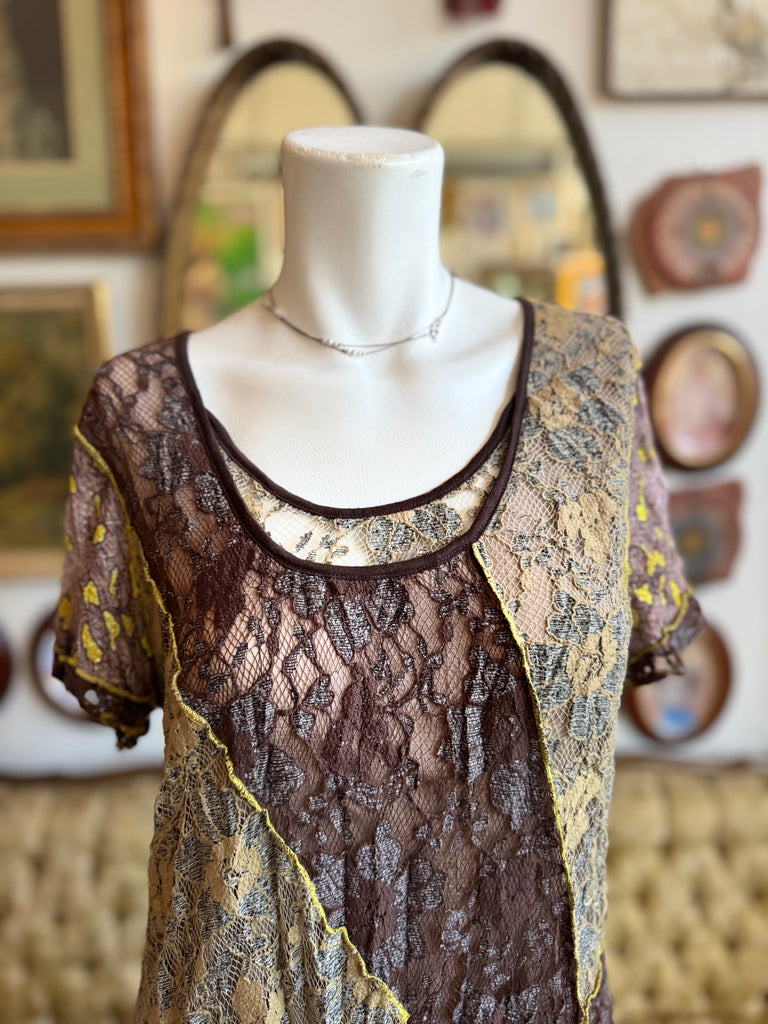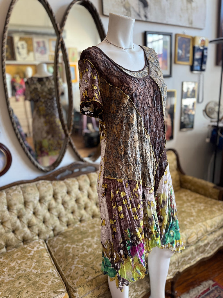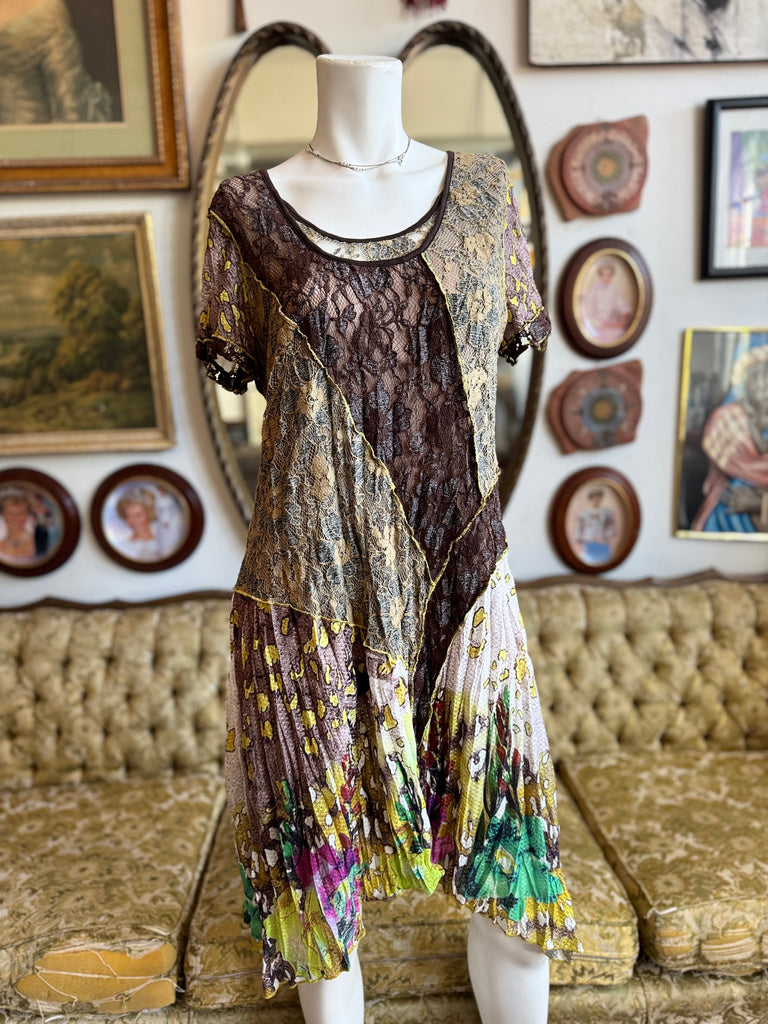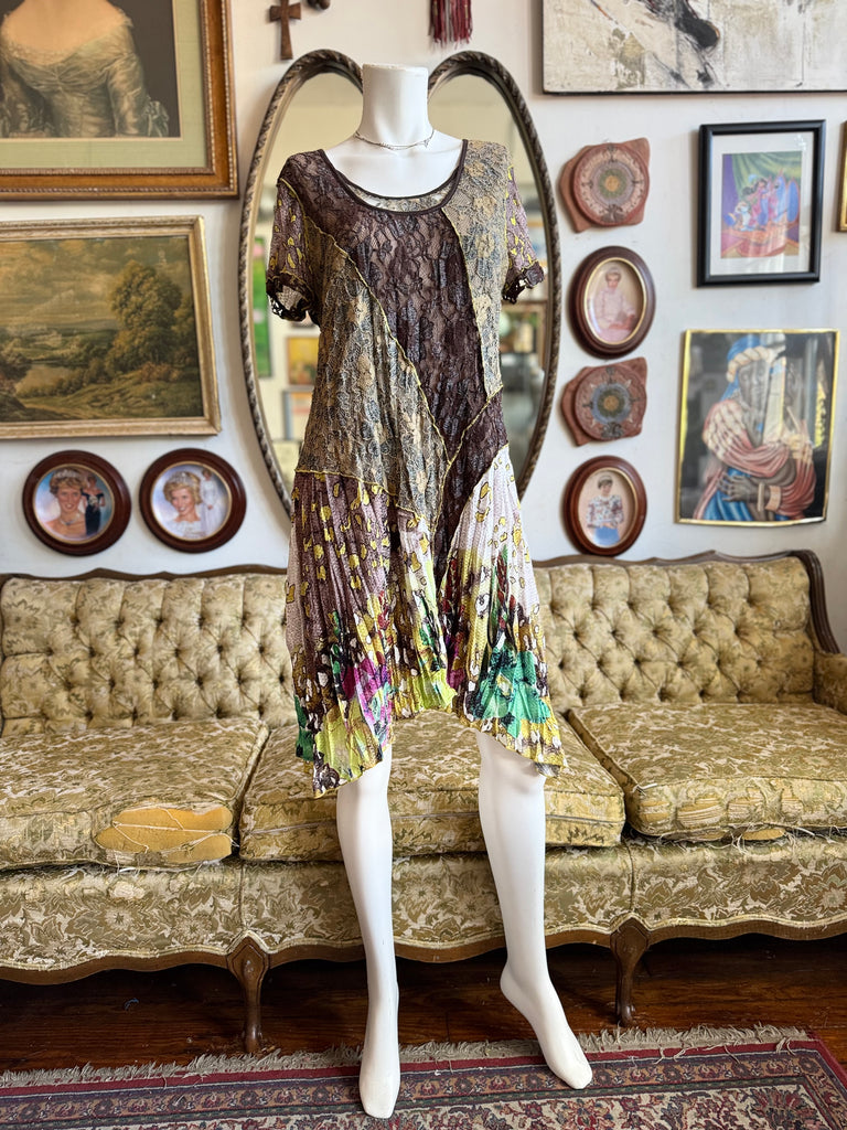 Lace Patchwork Patterned Asymmetrical Midi Dress Size L